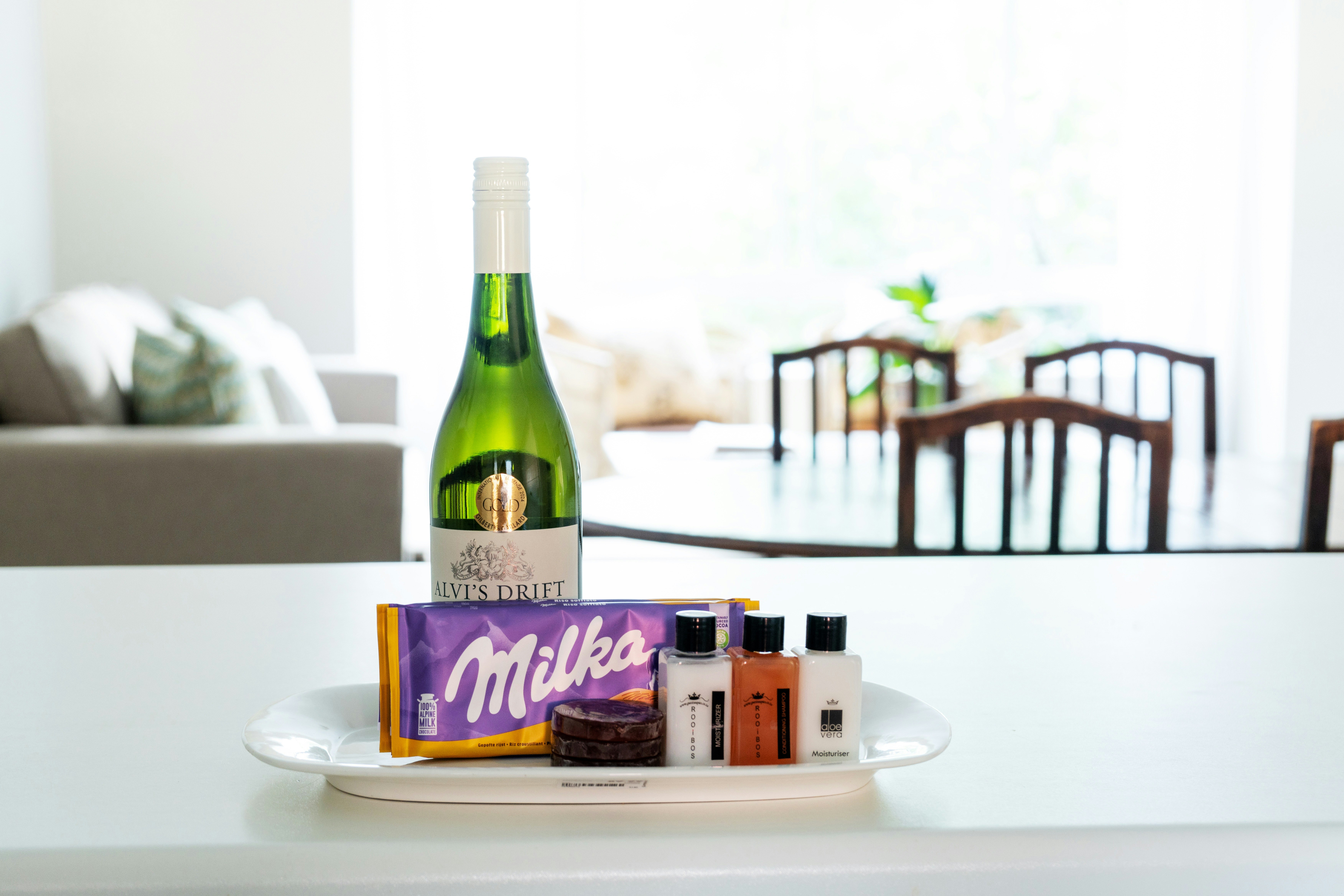 The open-plan living area features a kitchen fully equipped with a stove, oven, air fryer, fridge, cutlery and crockery as well as tea- and coffee-making facilities. A washing machine and tumble dryer are also available. Leading from this kitchen is a dining table where guests can enjoy their meals together. The lounge space has comfortable seating and a Smart TV with Netflix. Access to free uncapped Wi-Fi is available.
