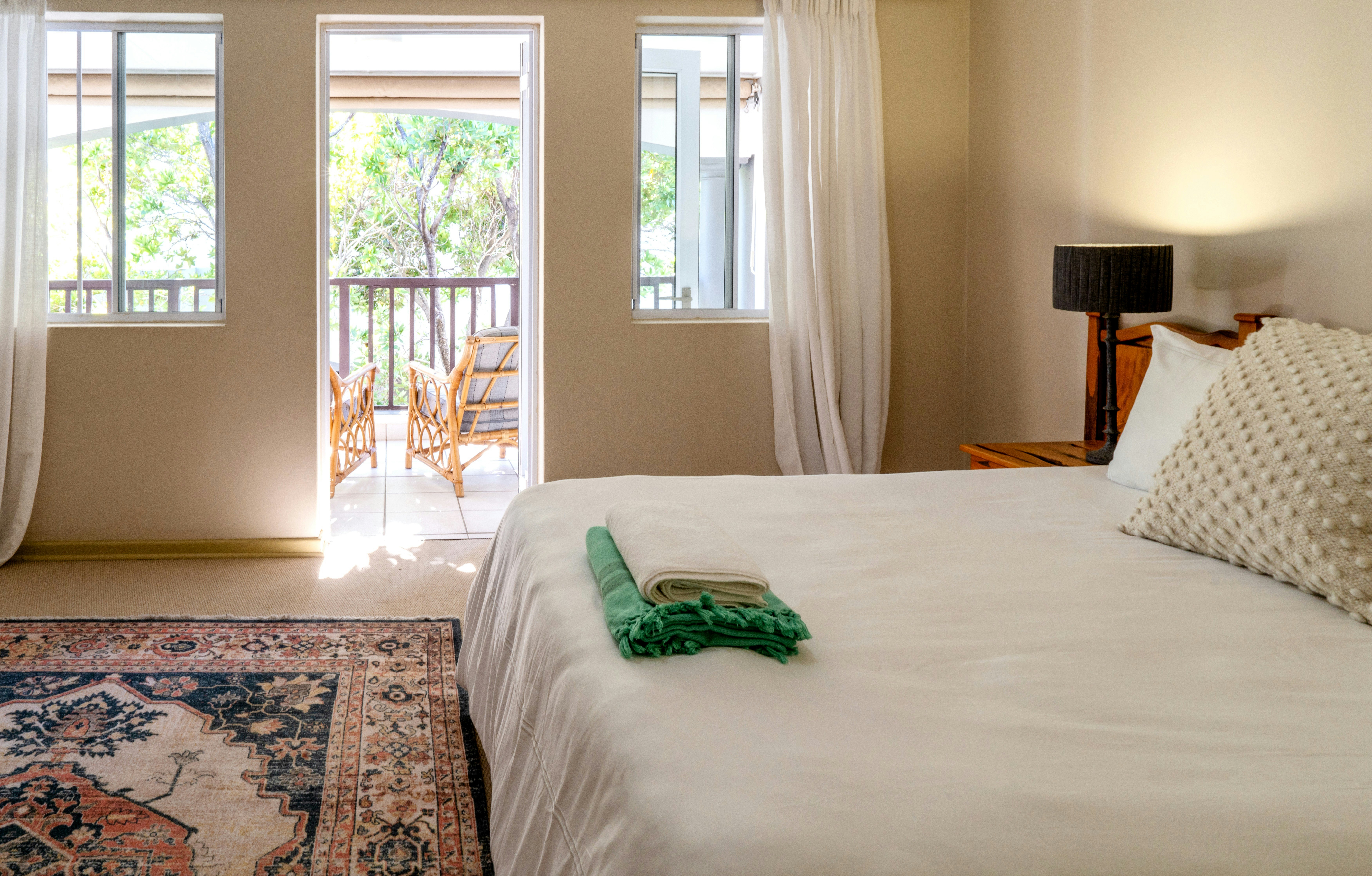 This living area opens onto a quaint balcony with seating which is a great spot for a morning coffee before starting the day. Guests have full access to the complex's communal braai and swimming pool area. The location of this property is within easy reach of many amenities and activities.