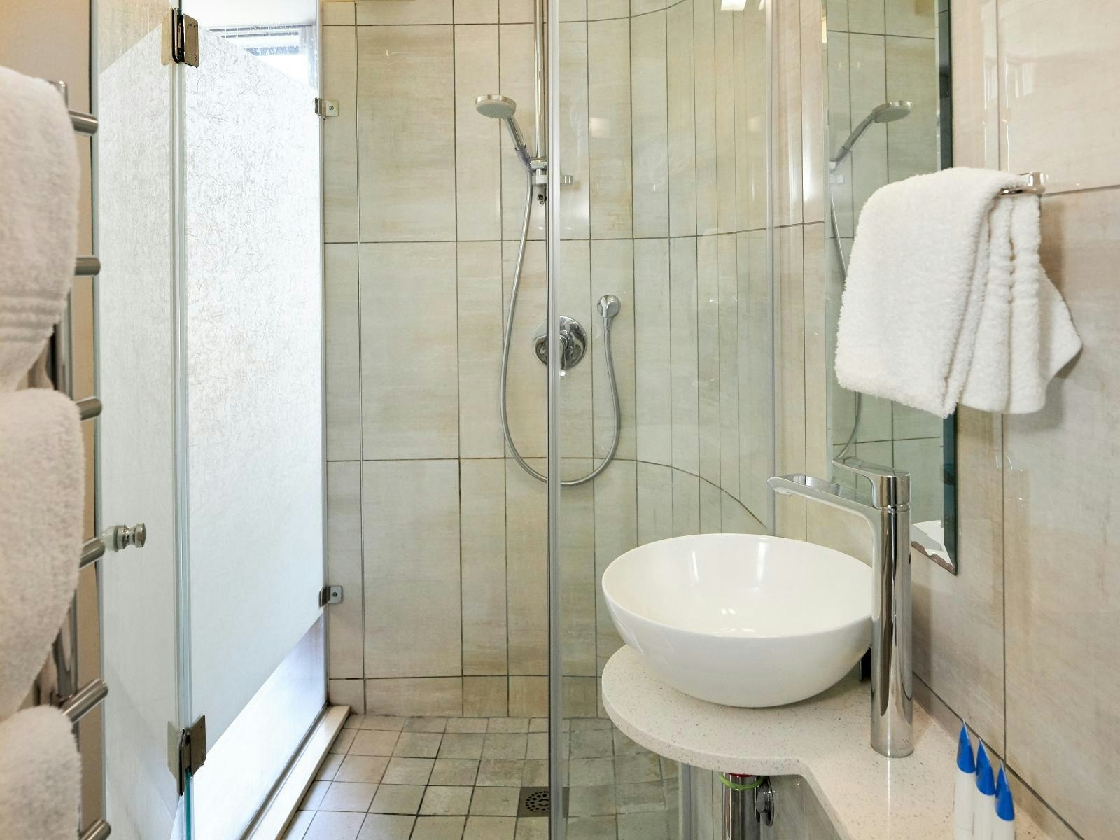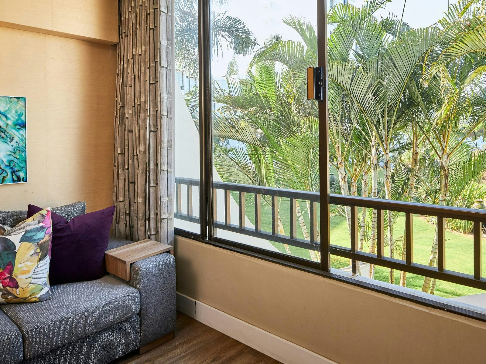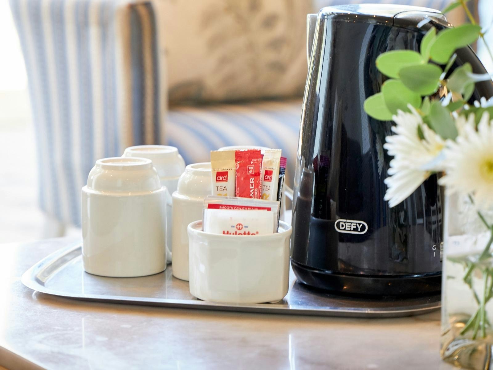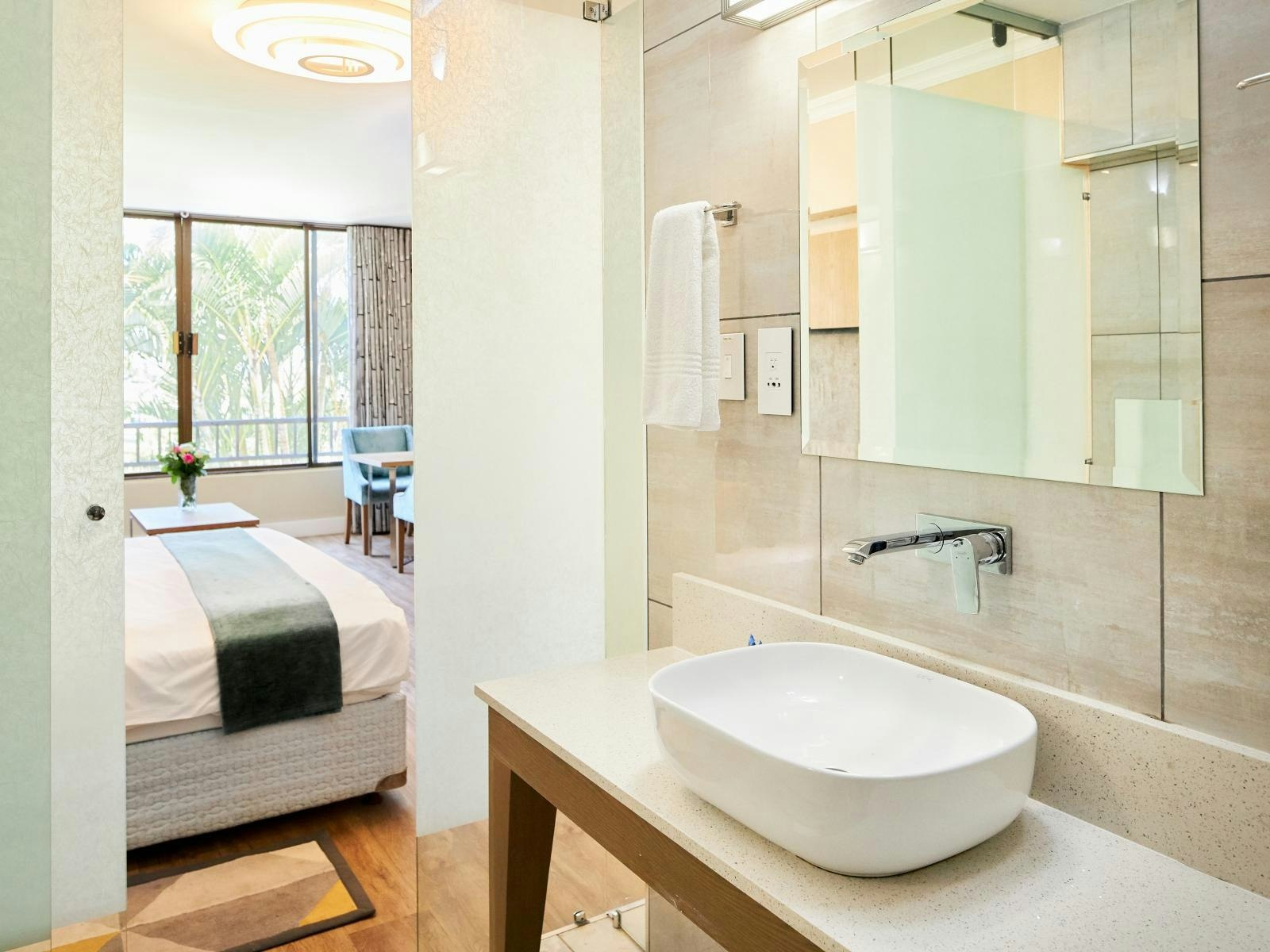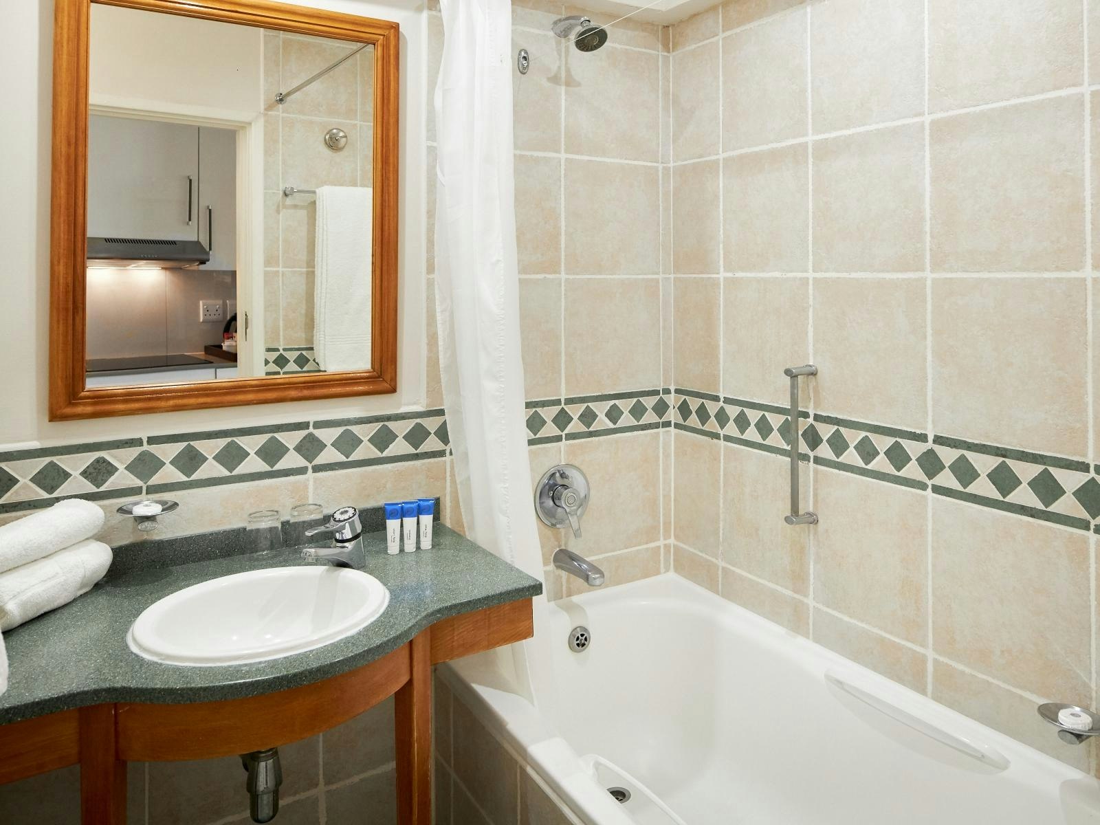 Guests are immediately struck by the futuristic horseshoe design of the resort, which overlooks an attractive swimming pool and offers panoramic views of the garden and coastal area. Self-catering accommodation is offered in open-plan studio apartments and 2-bedroom family apartments. Each unit has its own kitchen facilities equipped with a microwave, fridge, hob, under-counter oven, electric kettle, toaster, pots, glassware, crockery, cutlery and utensils. The lounge areas feature a TV with selected DStv channels. The air-conditioned units are provided with telephones, electronic safes and hairdryers, and are serviced on a daily basis.