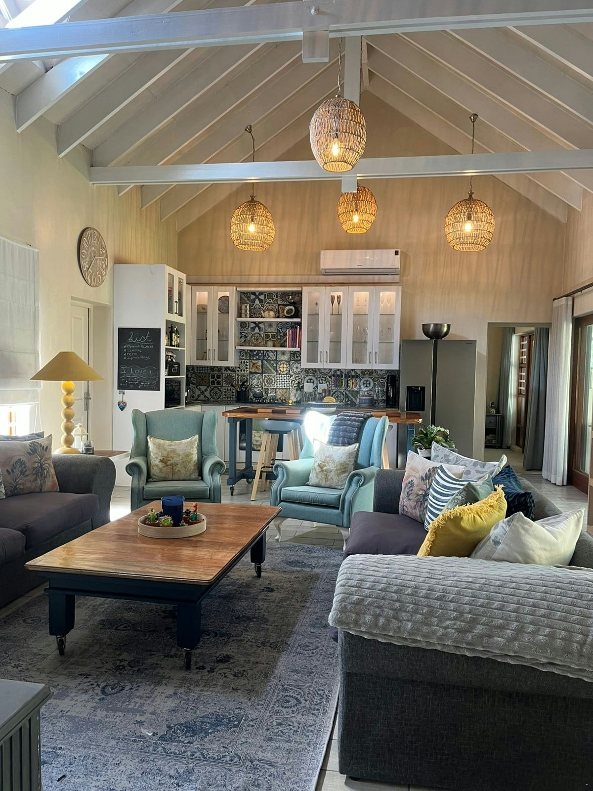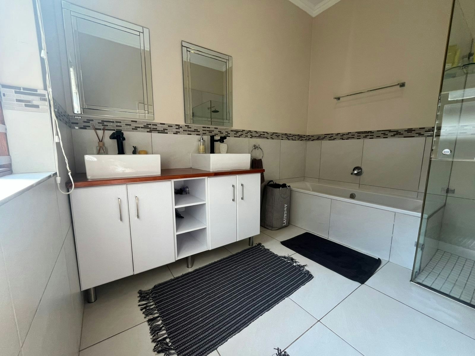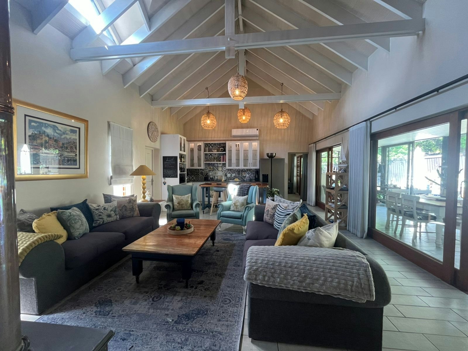 The home accommodates up to 6 guests across 3 bedrooms and 4 bathrooms. Two bedrooms are furnished with queen-size beds and feature en-suite bathrooms with a bath and shower, while the third bedroom contains a double bed with an en-suite bathroom fitted with a shower. A guest toilet is also available. Wi-Fi is provided for guests’ convenience.