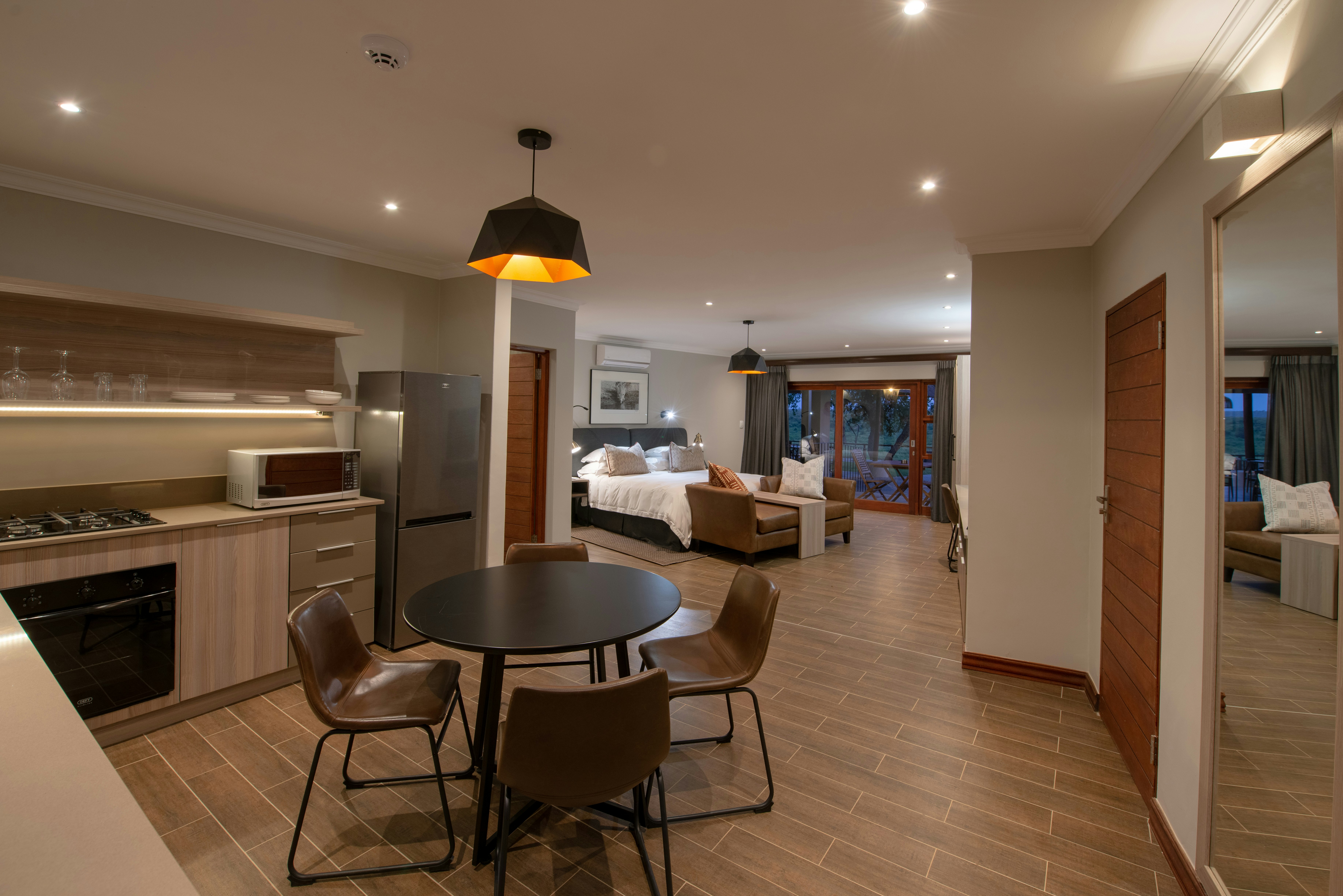 Verblyf bestaan uit selfsorgwoonstelle. Elke eenheid het 'n en suite-badkamer, lugversorging, satelliet-TV, 'n kombuisie en 'n uitsig oor die tuin of rivier.