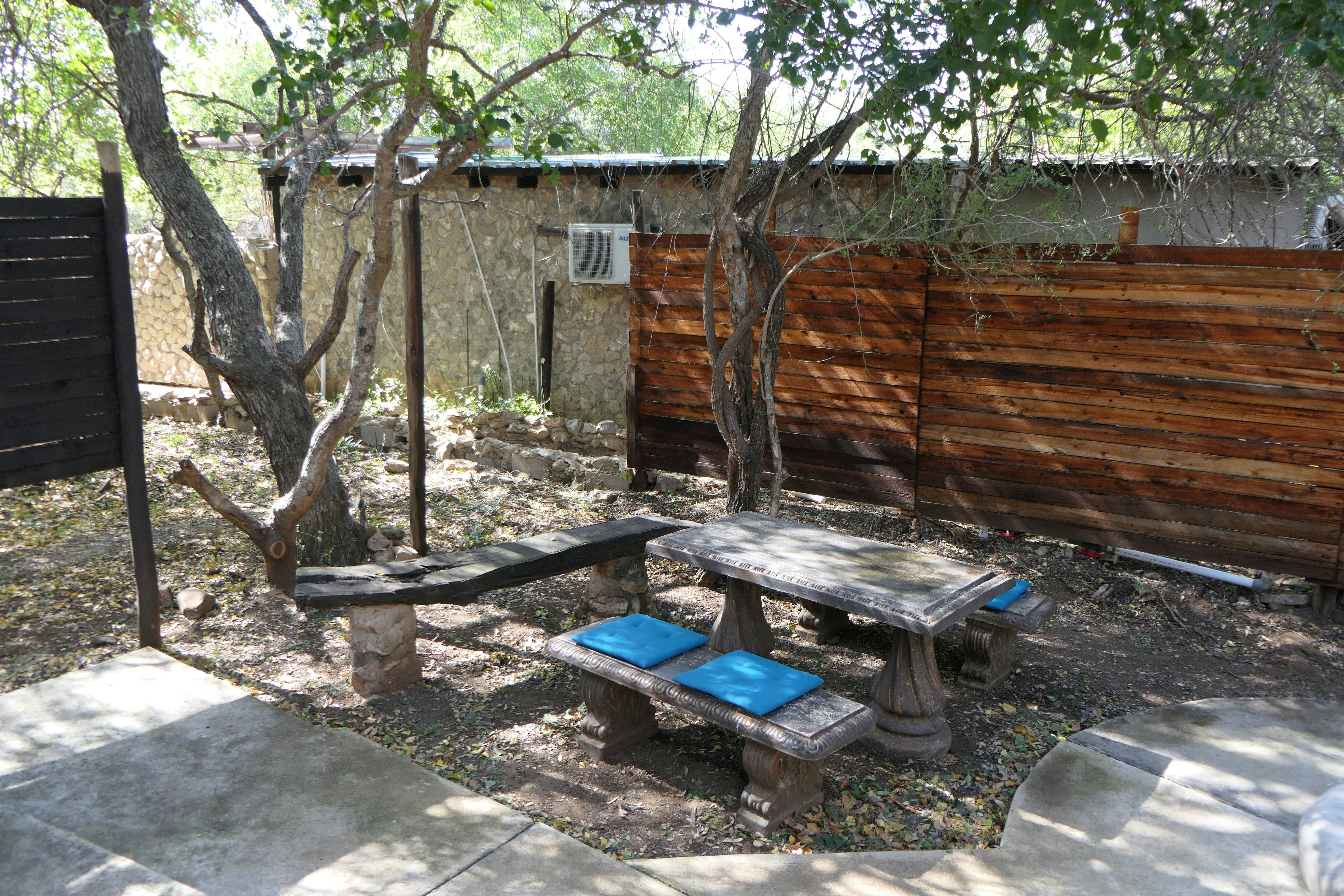 There is only a TV in Buffel Chalet down stairs, and the air-conditioners are pre-paid. Each chalet has its own braai area and splash pool. The splash pool will only be filled up if there are no water restrictions in Marloth Park.