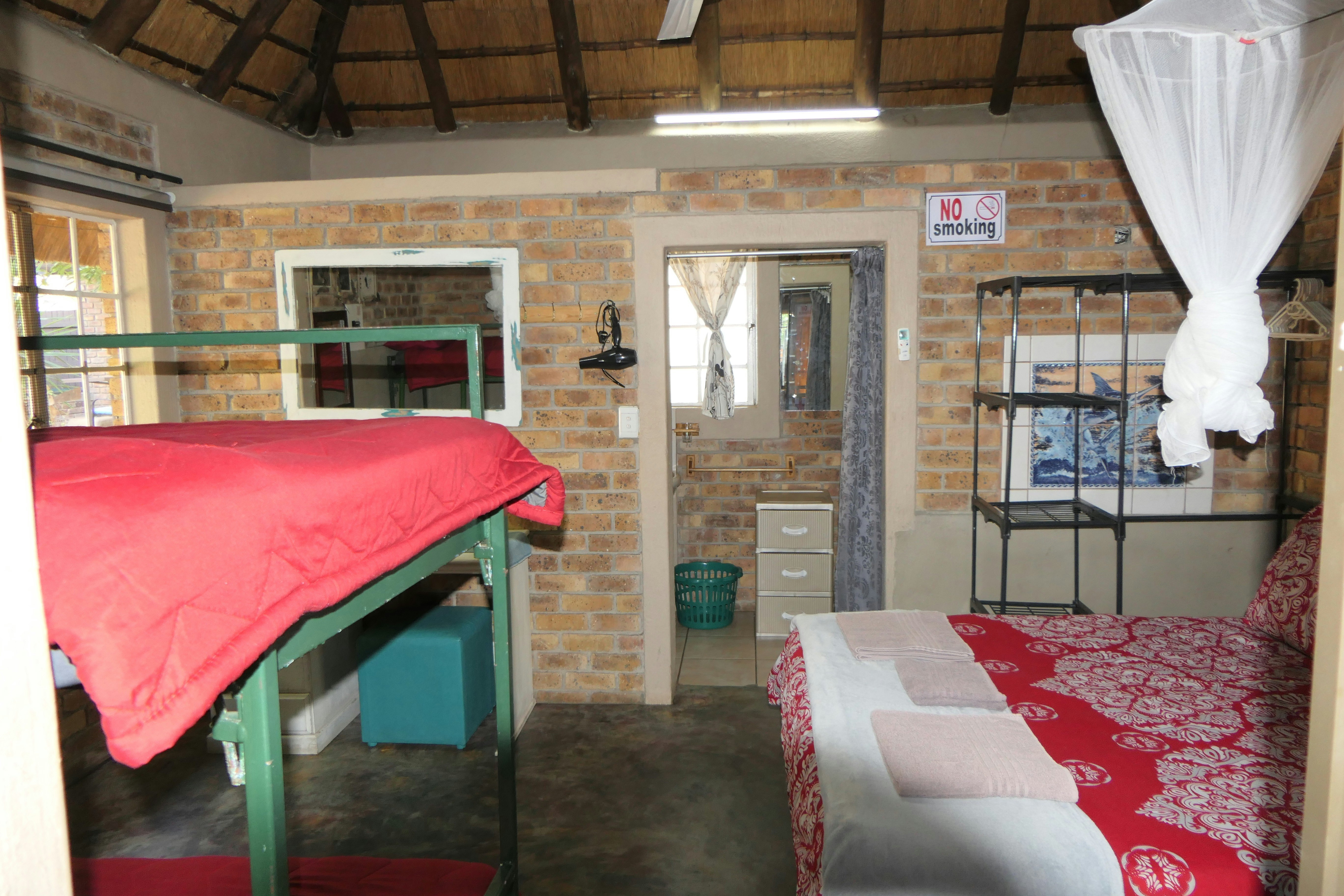 Zebra can accommodate 2 adults and 2 children and contains a double bed and a bunker bed (in one room) and Aircon. The bathroom contains a shower, basin and a toilet. The kitchen is fully equipped for self-catering and includes cutlery, crockery, a 2-plate gas stove, a fridge, microwave, toaster, cutlery, crockery and beverage making facilities. * NB - The Chalet is PRE-PAID electricity. Guests are liable for the cost on the pre-paid. Parking is about 25 meters from the Chalet.