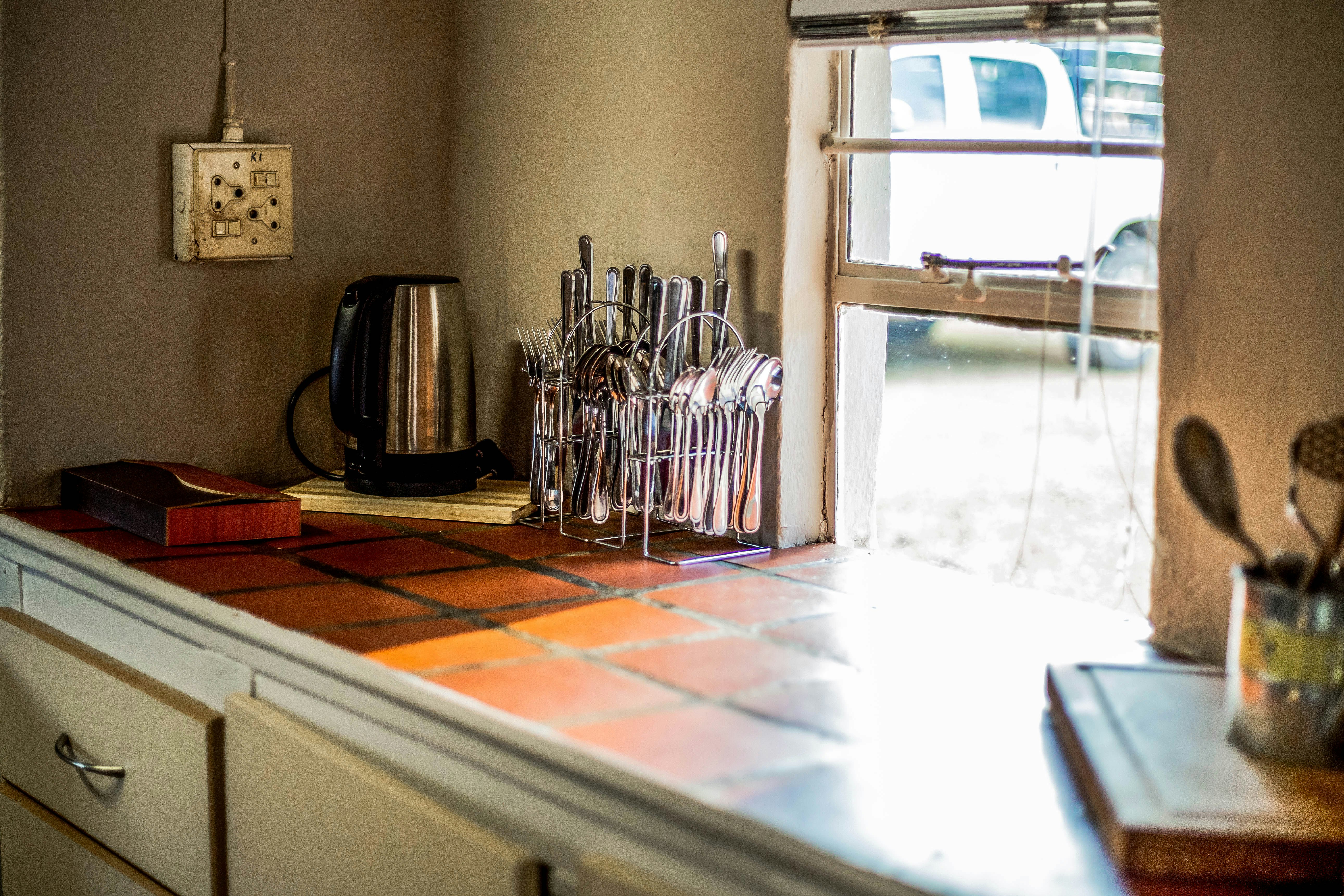 The kitchen is fully equipped with a fridge, microwave, oven, and stove. Other amenities include a lounge area, a dining area, a fireplace, a TV with DStv channels, Wi-Fi, and an outside braai area.