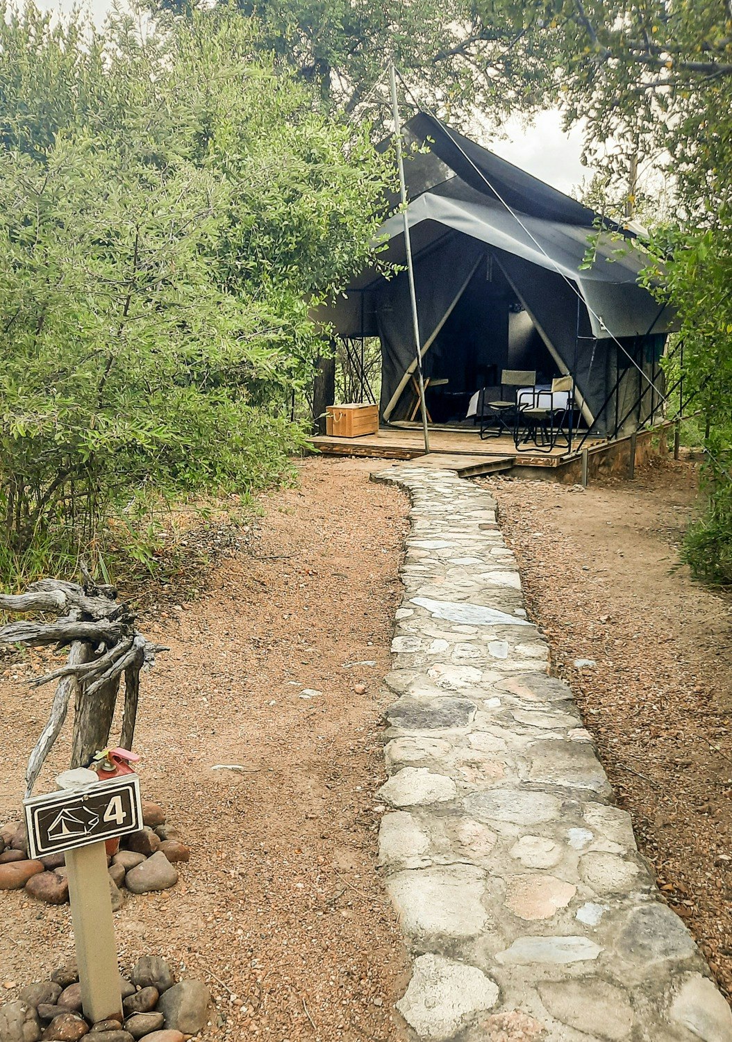 Accommodation includes four explorer-style canvas tents, each with twin beds that can convert into a double, en-suite bathrooms with hot-water bucket showers, flushing toilets, and running cold water. Fans in every tent ensure comfort, while the main lodge offers a plunge pool, social lounge, and well-stocked bar with stunning views over the reserve.