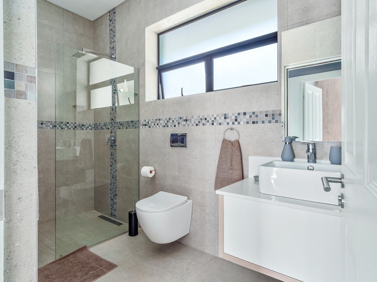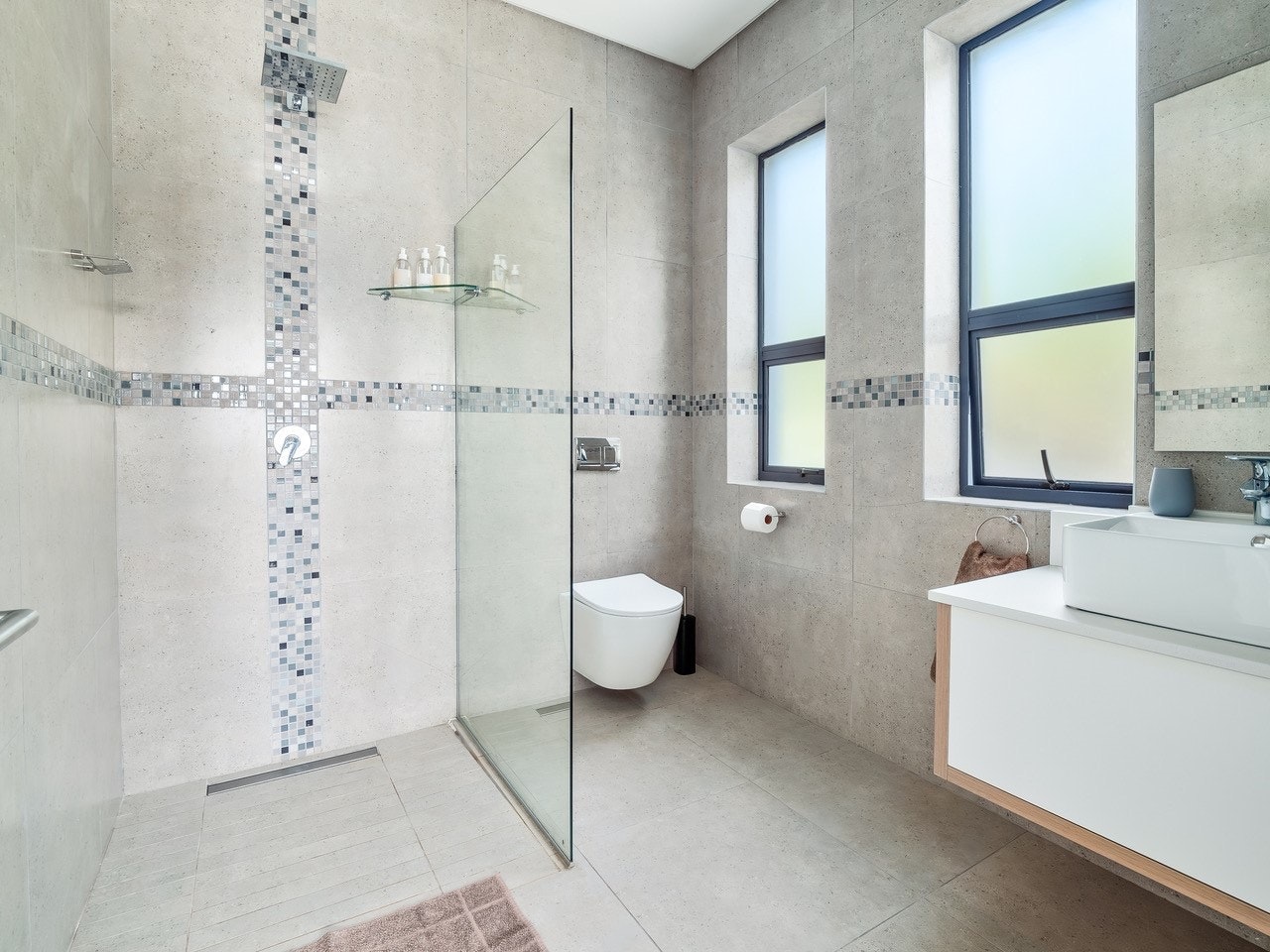 Die huis beskik oor 3 slaapkamers en 3 badkamers. Die hoofslaapkamer het 'n koninggrootte-bed en 'n en suite-badkamer met 'n bad en 'n stort. Die tweede slaapkamer het 'n dubbelbed en 'n en suite-badkamer met 'n stort. Die derde slaapkamer het ook 'n dubbelbed en die derde badkamer het 'n stort. Handdoeke en beddegoed word voorsien.