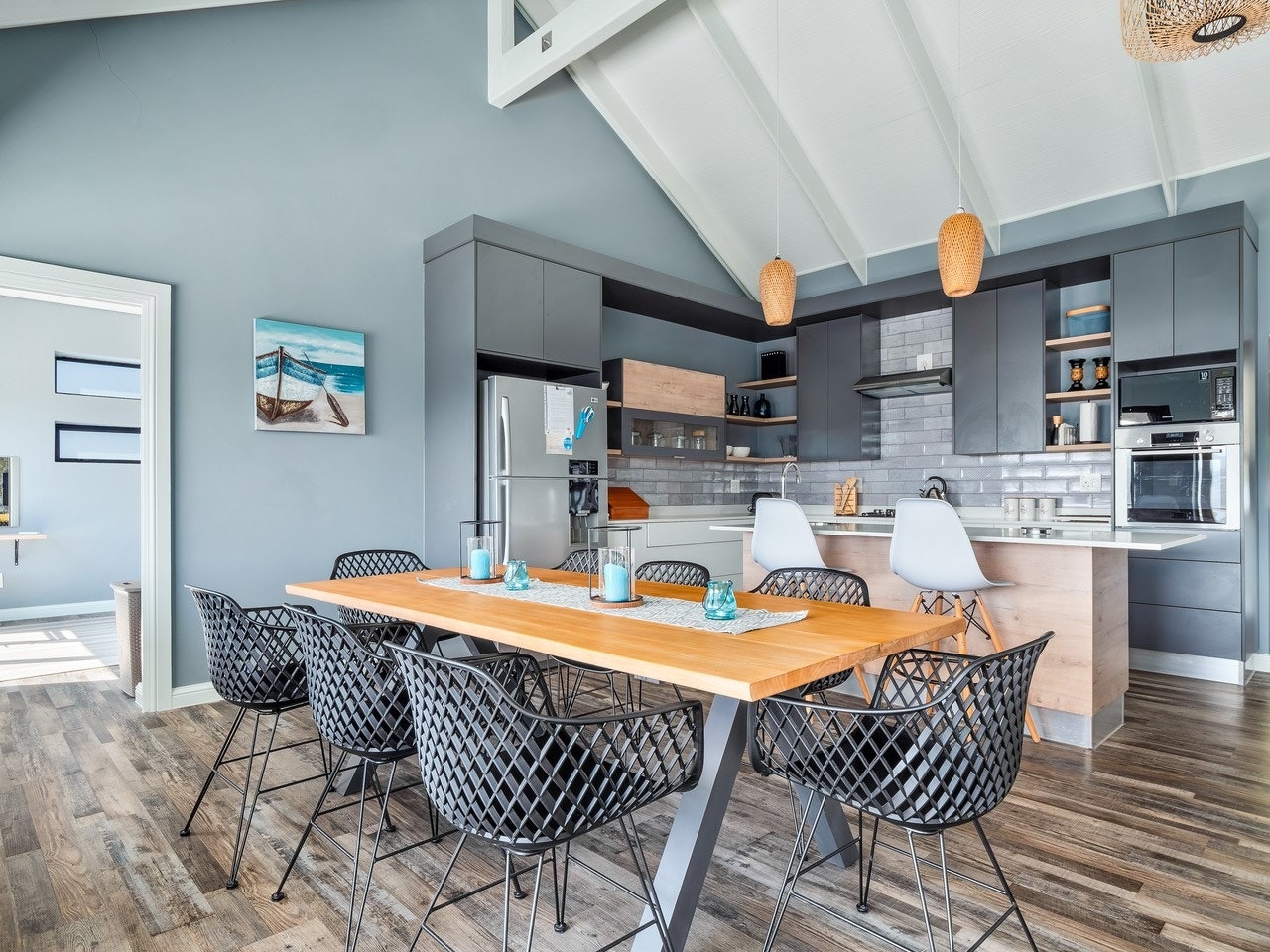 Die kombuis is met 'n stoof, oond, yskas-vrieskas, mikrogolf, skottelgoedwasser, wasmasjien, Nespresso-masjien, eetgerei en breekware toegerus. Die leefarea het 'n etenstafel, gemaklike sitplek en 'n TV.