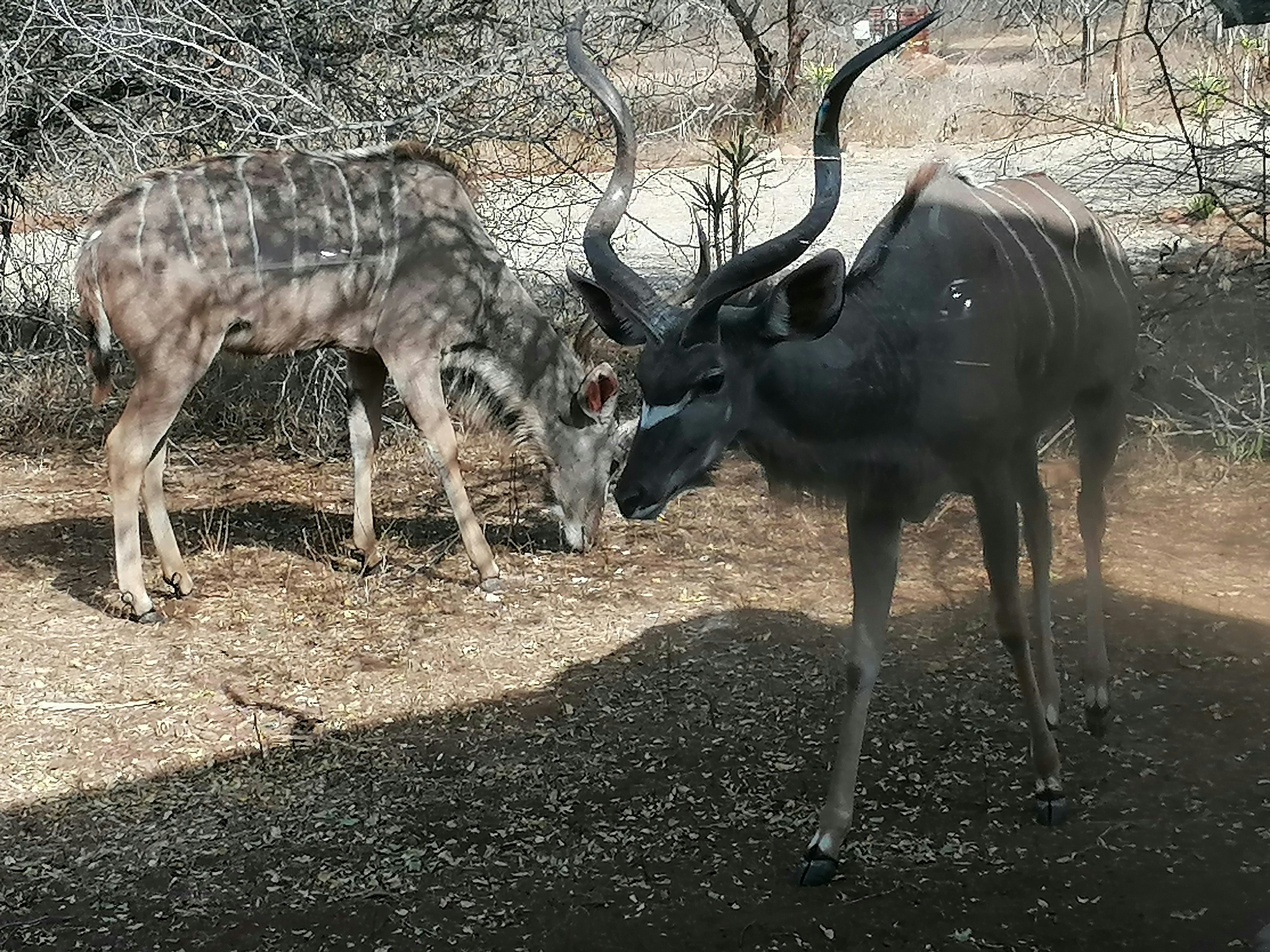 Guests can enjoy visits from wildlife like zebras, kudus, giraffes, wildebeest, and many more. The birdlife in Marloth Park is amazing, there are around 350 different species.