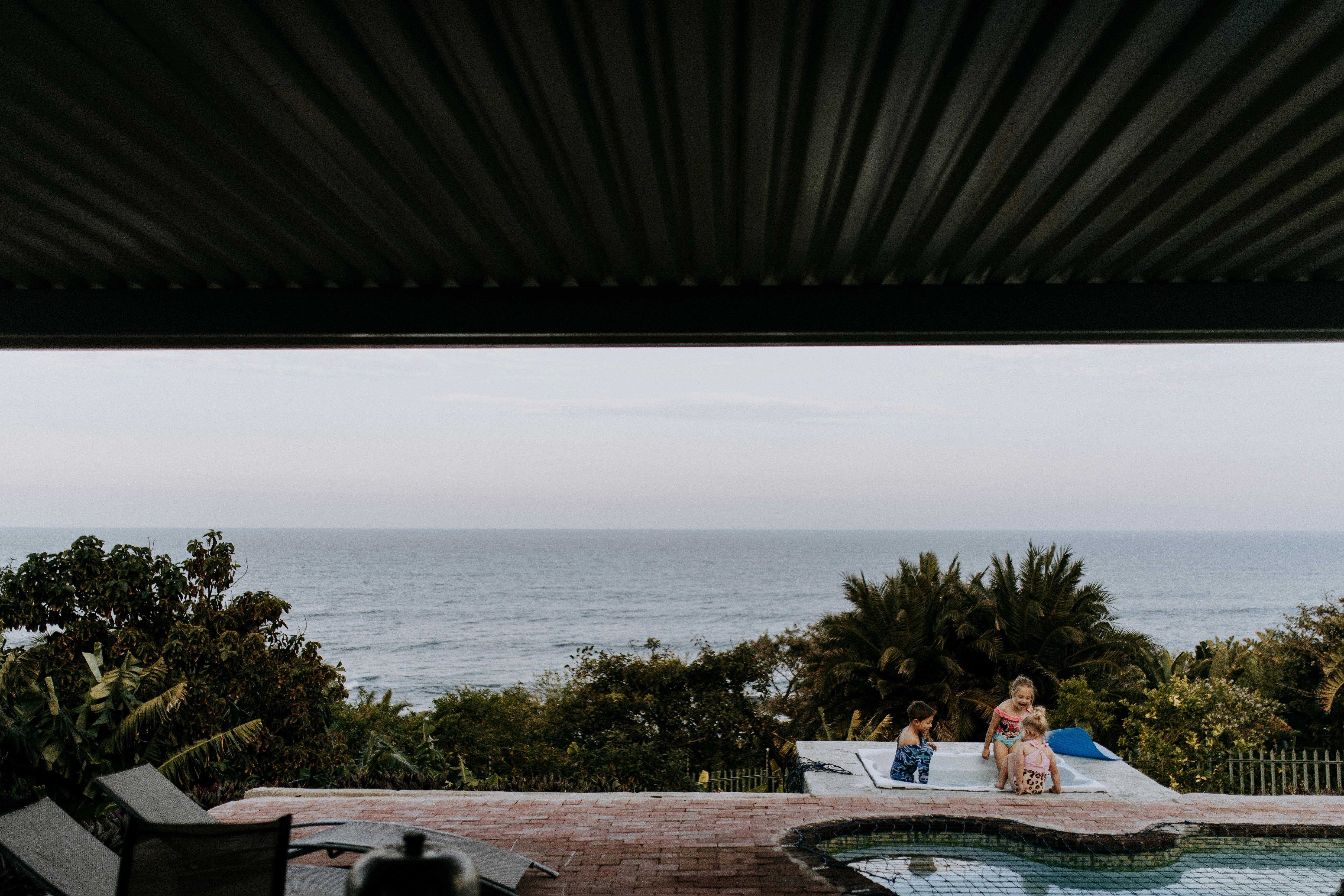 This self-carting house is nestled in a greenbelt area in the quiet seaside village of Munster. The house has a 180-degree uninterrupted view of the ocean from the outside pool area.
