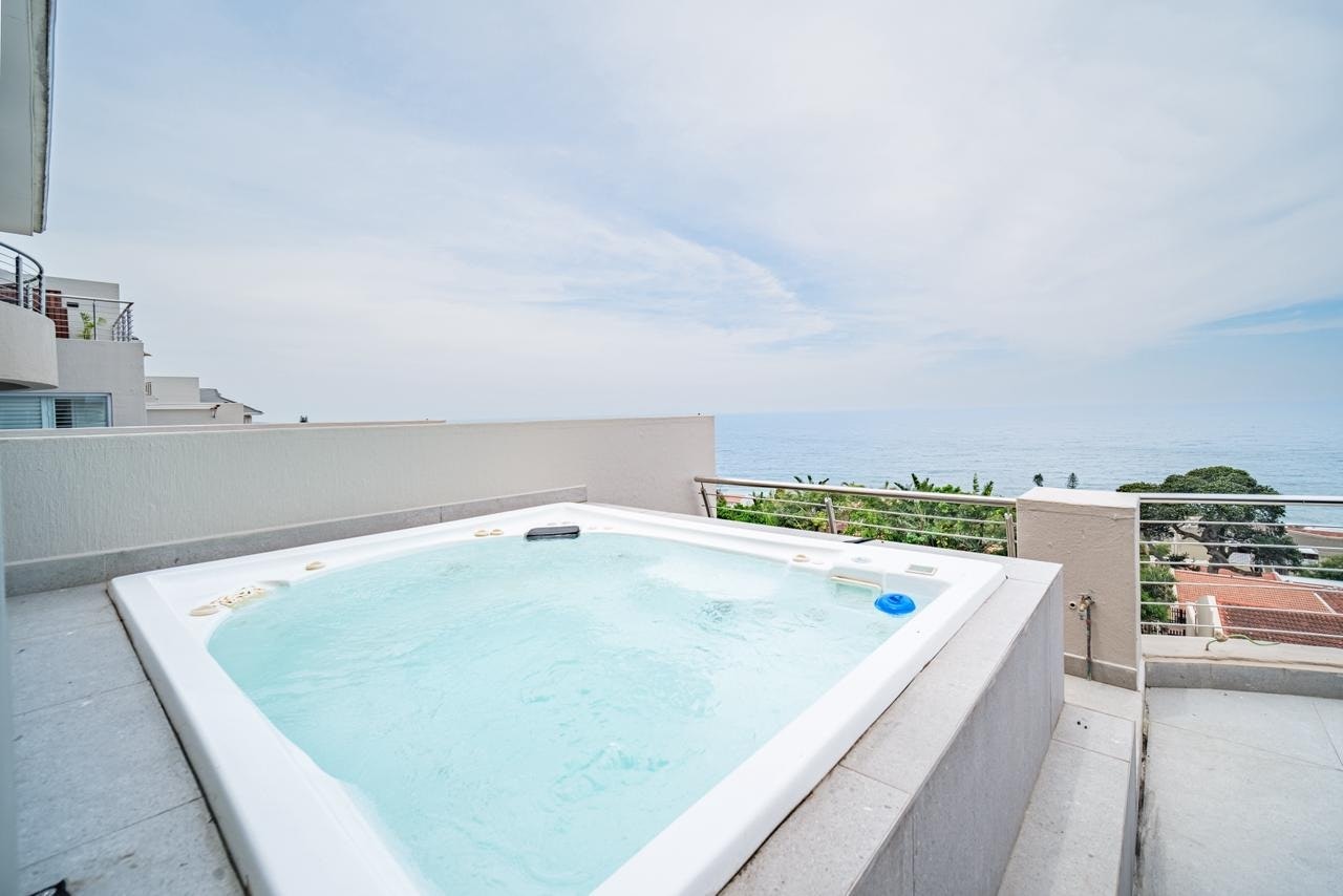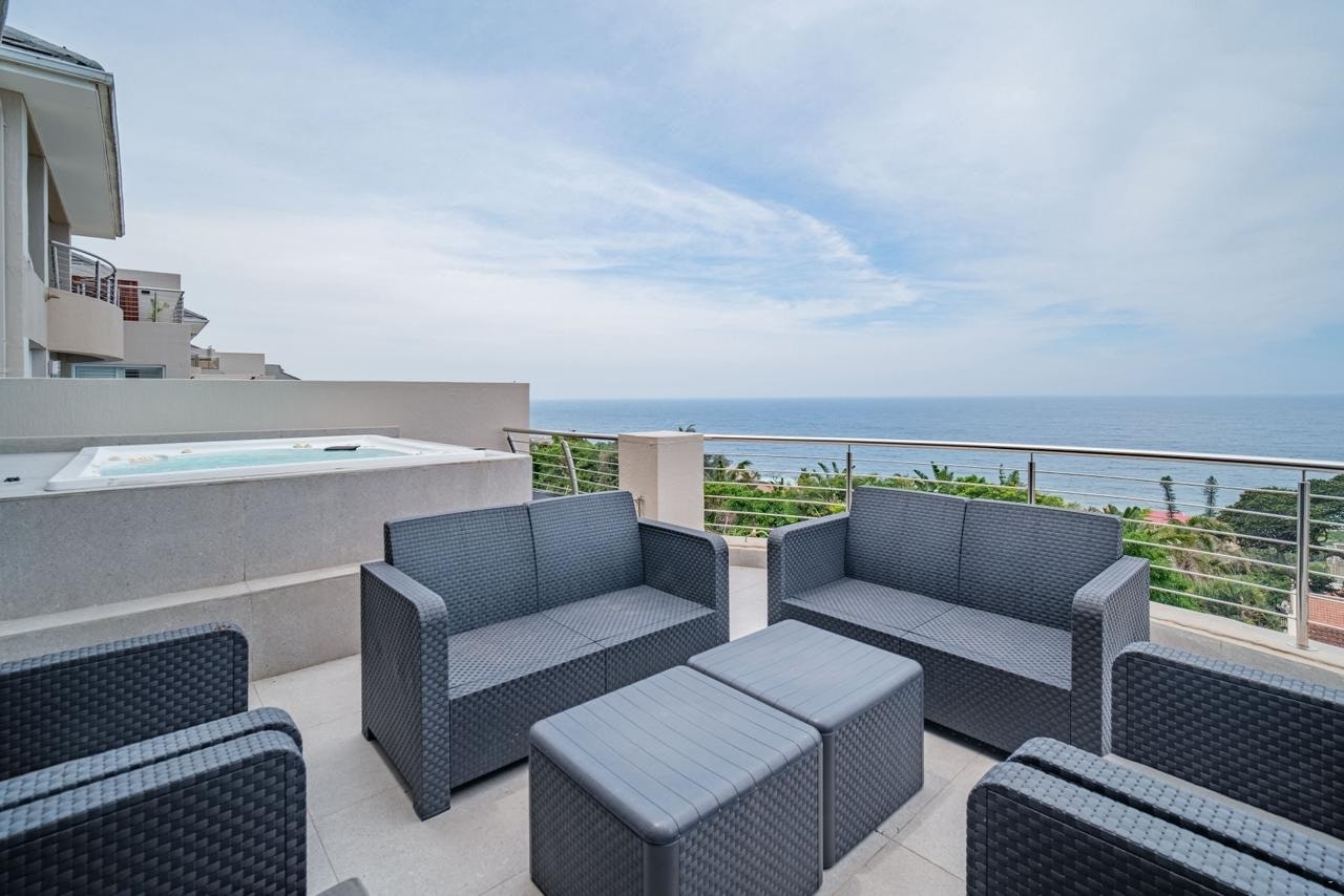 The balcony offers comfortable outdoor seating and a private jacuzzi with stunning 180-degree ocean views, the ideal spot to unwind. Guests also have access to braai facilities, free Wi-Fi, and secure parking.