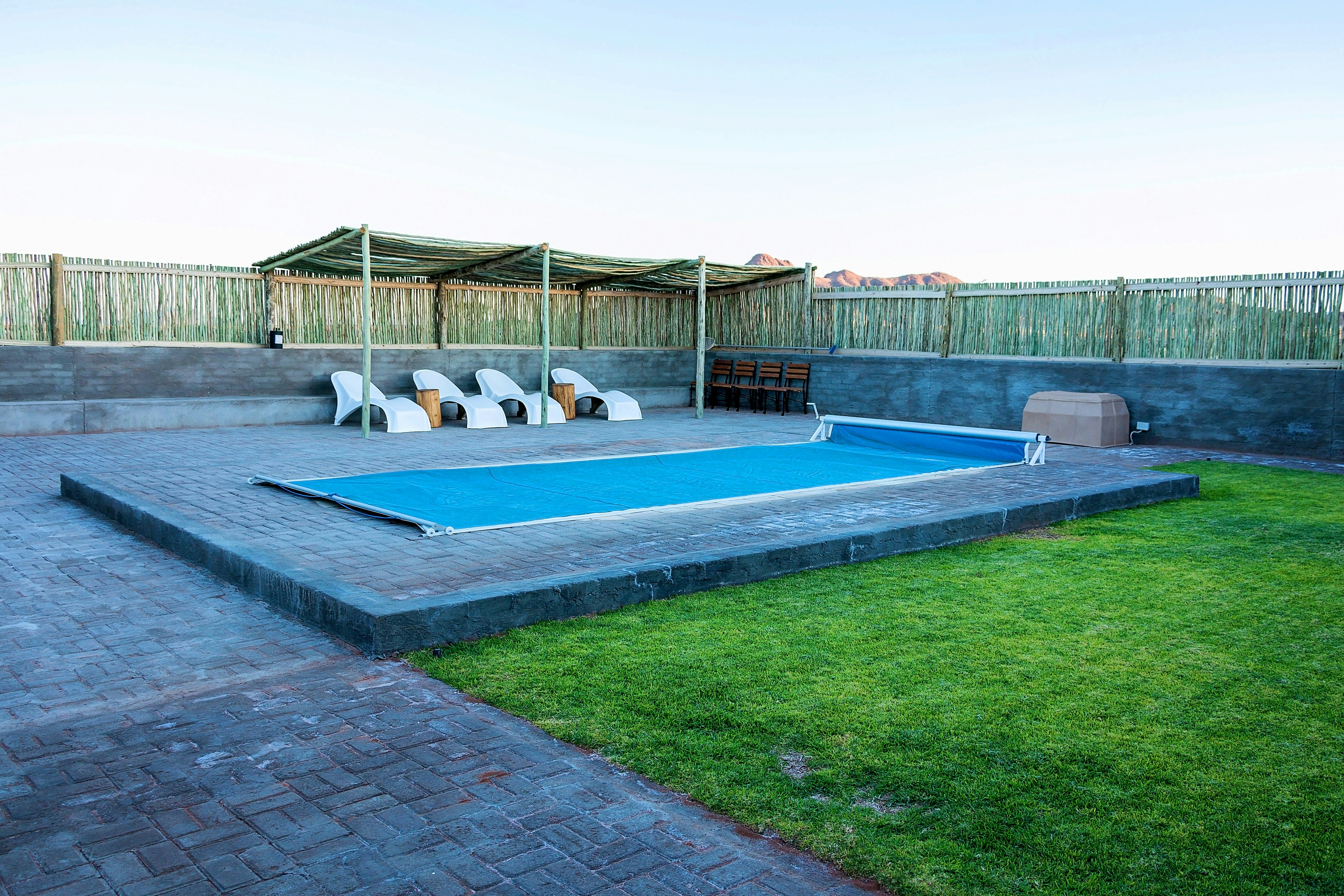 Each private campsite is located a short distance from the main lodge and features a spacious, level area with interlocked platforms and a shaded roof for added comfort. The campsites are equipped with en-suite ablution facilities, including hot and cold running water, a flush toilet, a washing-up area, an electric point, and a dedicated braai area. Each site is large enough to accommodate up to three vehicles and six guests, and guests have access to a private communal swimming pool exclusive to the camping area.