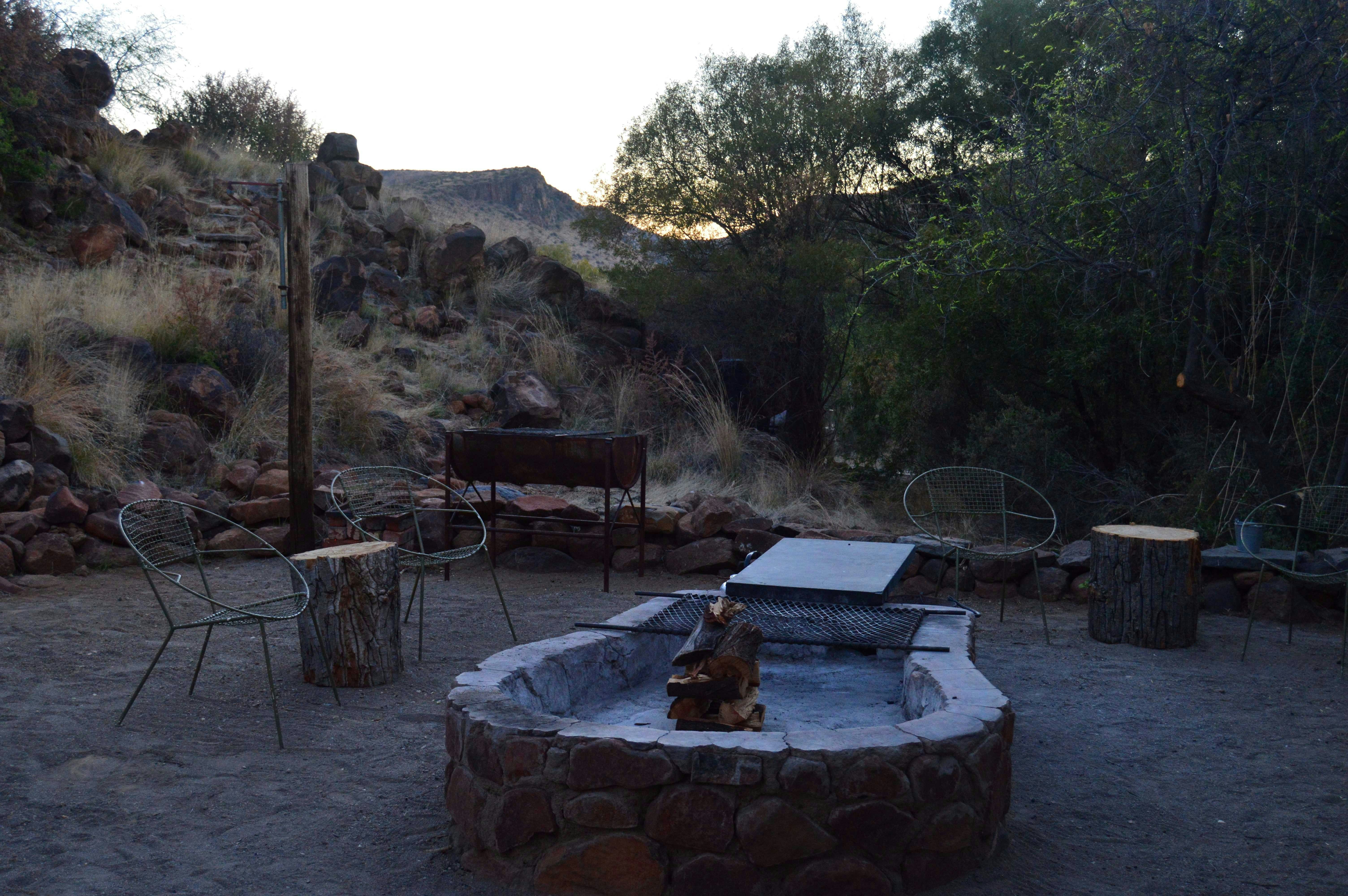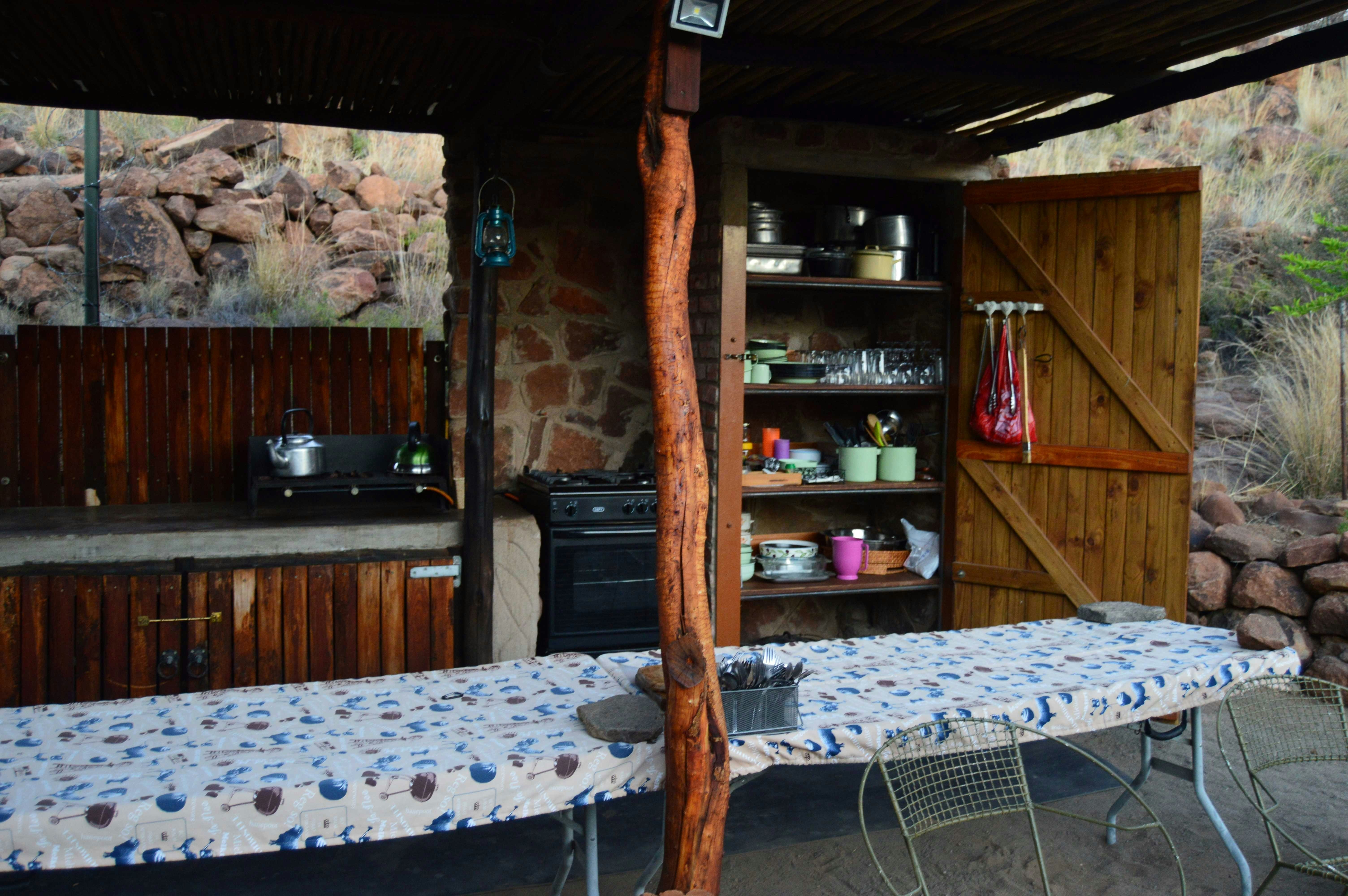 The communal entertainment area has braai facilities and a well-equipped kitchen. There are lights available at the braai area as well as limited solar panel power points. Guests are also welcome to use the freezer and fridge facilities if required.