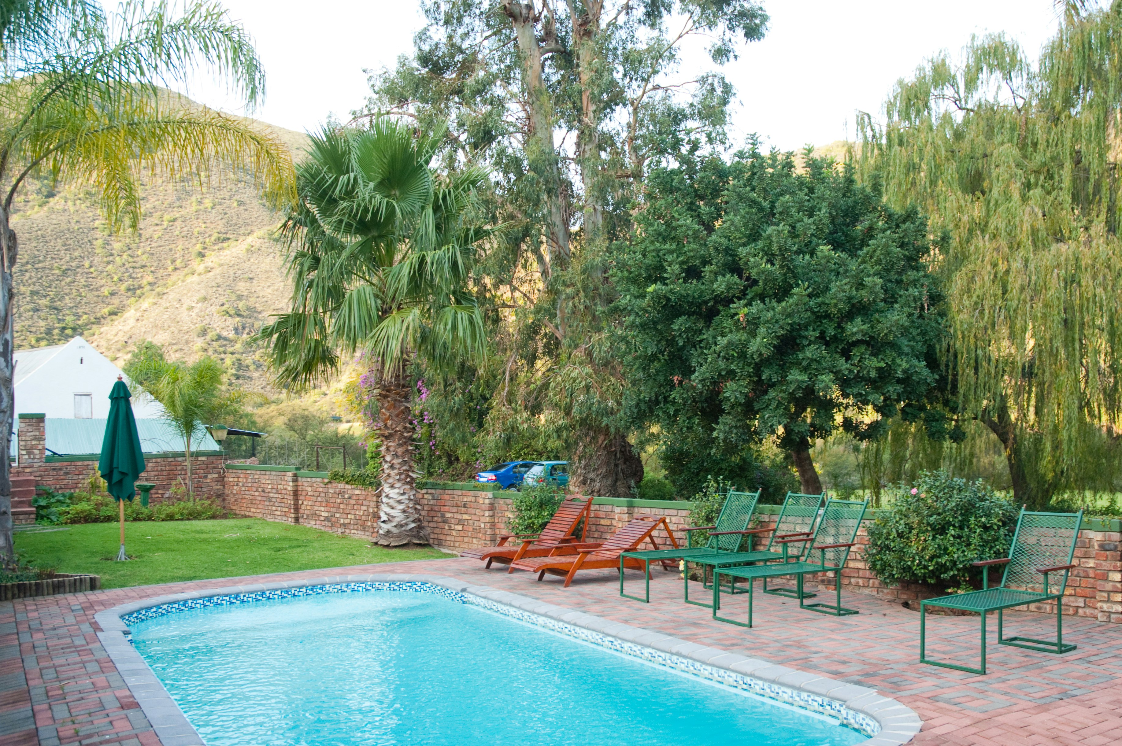 Geriewe op die perseel sluit 'n swembad, braai-area en veilige parkeerplek in. Troeteldiere word toegelaat indien dit vooraf gereël word. Daar is ook trou- en konferensiegeriewe. Die troulokaal is geskik vir 250 gaste met 'n groot dansvloer. 'n Raadsaal is ook beskikbaar. Dit is ook die perfekte plek vir funksies. Die lokaal het 'n pragtige uitsig oor die plaas en op die voetheuwels van die Swartberge. 'n Internetdiens, skerms, telefoon- en faksdiens, klankstelsels, 'n skyfie- en fotokopieerdiens en volledige sekretariële en administratiewe ondersteuning vir konferensies is ook beskikbaar. Gaste kan ook die la carte-restaurant geniet wat plaaslike spesialiteite bedien, insluitend 'n verskeidenheid wildsvleis.