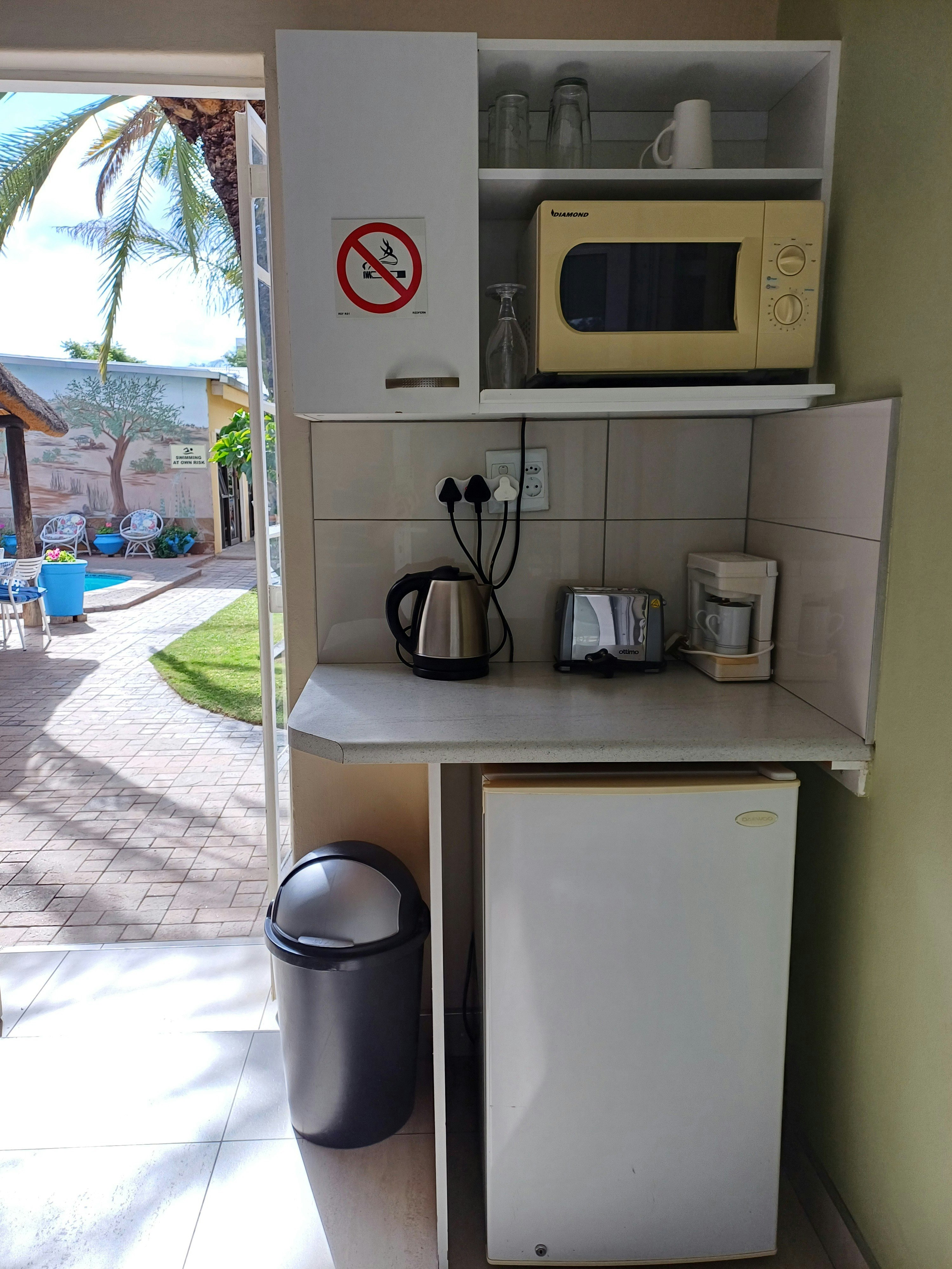 The guesthouse offers air-conditioned rooms, each with a private entrance. In-room facilities include a seating area, satellite TV, a safe, a fan and a desk. Each unit is equipped with a microwave, small refrigerator and tea- and coffee-making facilities. All rooms have access to a private bathroom.