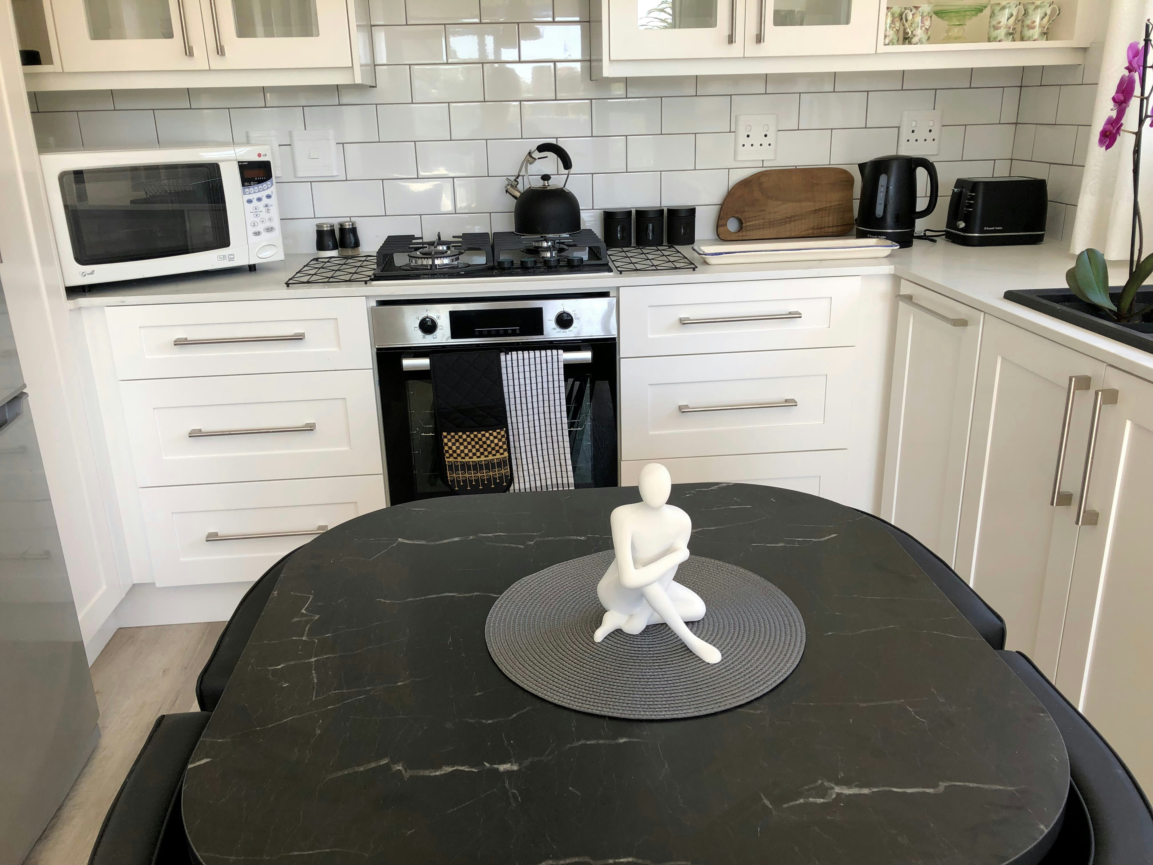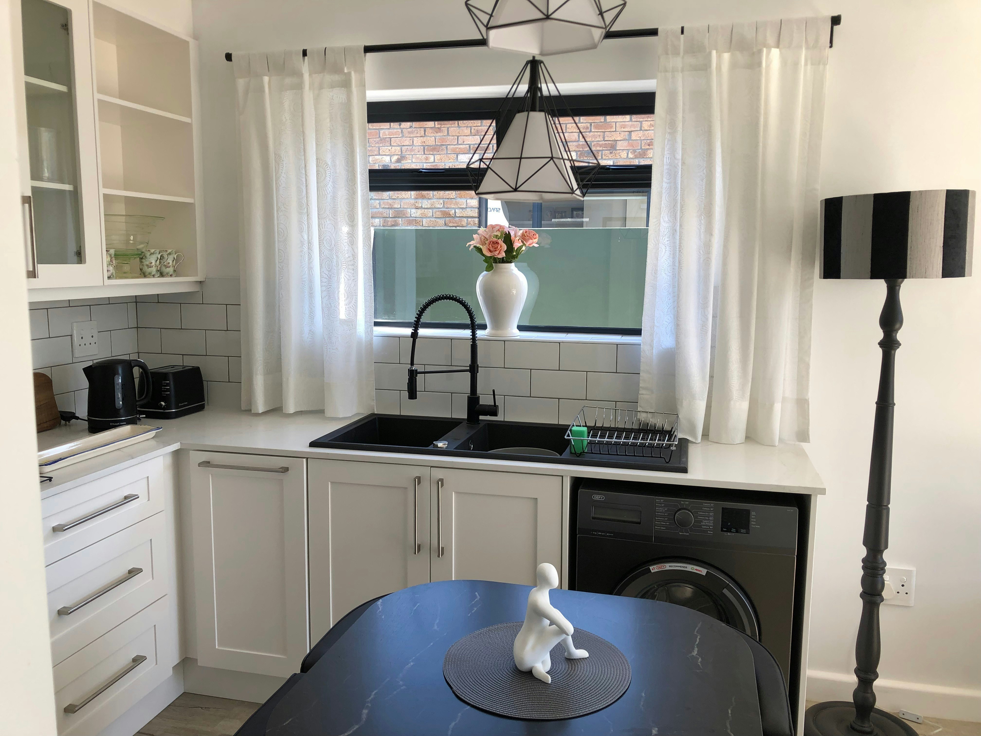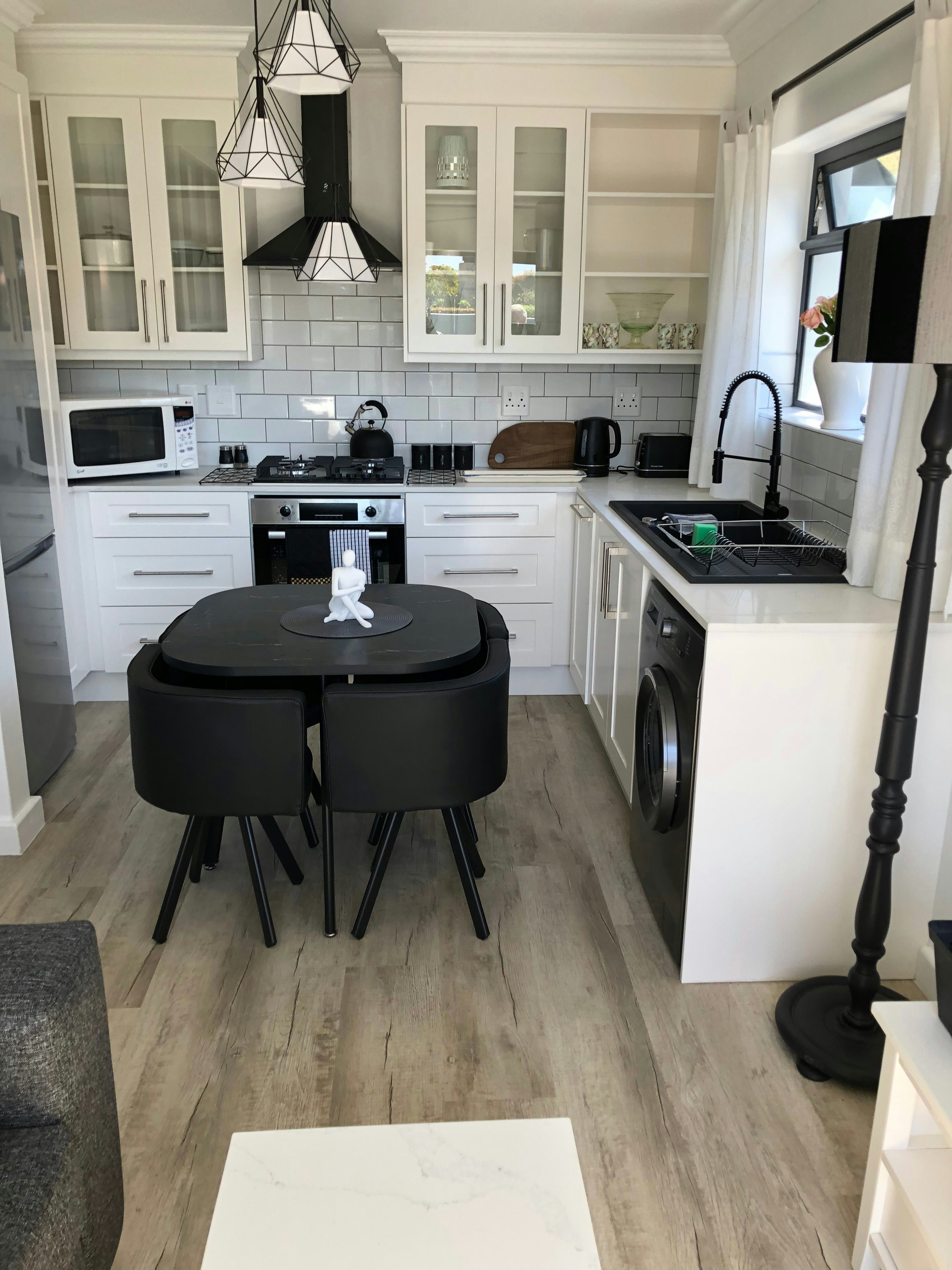 Die oopplan-leefarea beskik oor 'n kombuis wat met 'n stoof, oond, mikrogolfoond, yskas-vrieskas, eetgerei, breekware en 'n wasmasjien toegerus is. Daar is 'n Etenstafel met sitplek vir 4. Die sitarea het gemaklike sitplek, 'n TV met DStv-kanale en gratis WiFi.