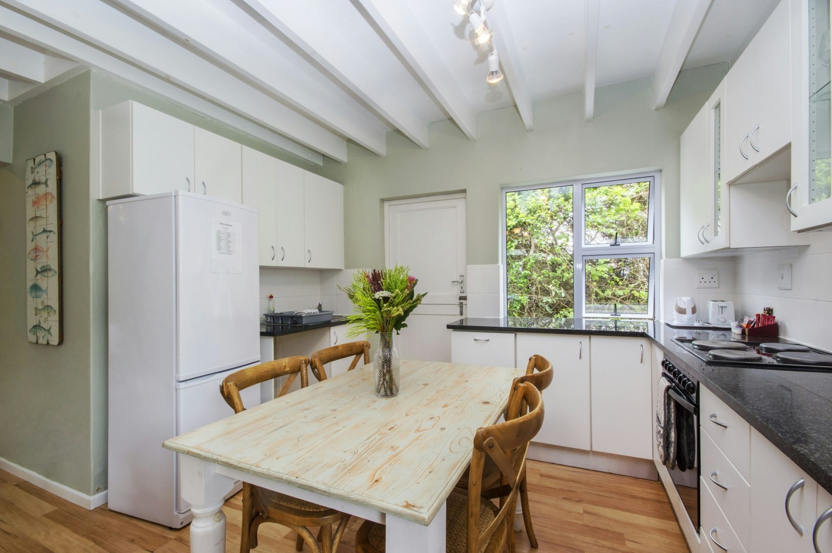This cottage can accommodate 6 guests and comprises 3 bedrooms. The first bedroom is downstairs and the second and third bedrooms are upstairs. The first bedroom is furnished with a double bed and has an en-suite bathroom fitted with a shower, toilet and basin. The second bedroom is furnished with a double bed and has an en-suite bathroom fitted with a bath, toilet and shower, and the third bedroom is furnished with 2 single beds and has an en-suite bathroom fitted with a bath, toilet and shower. The cottage kitchenette is equipped with tea- and coffee-making facilities, a fridge, oven, stove and microwave. Other amenities include a TV with DStv as well as a dining area, lounge area and private entrance.