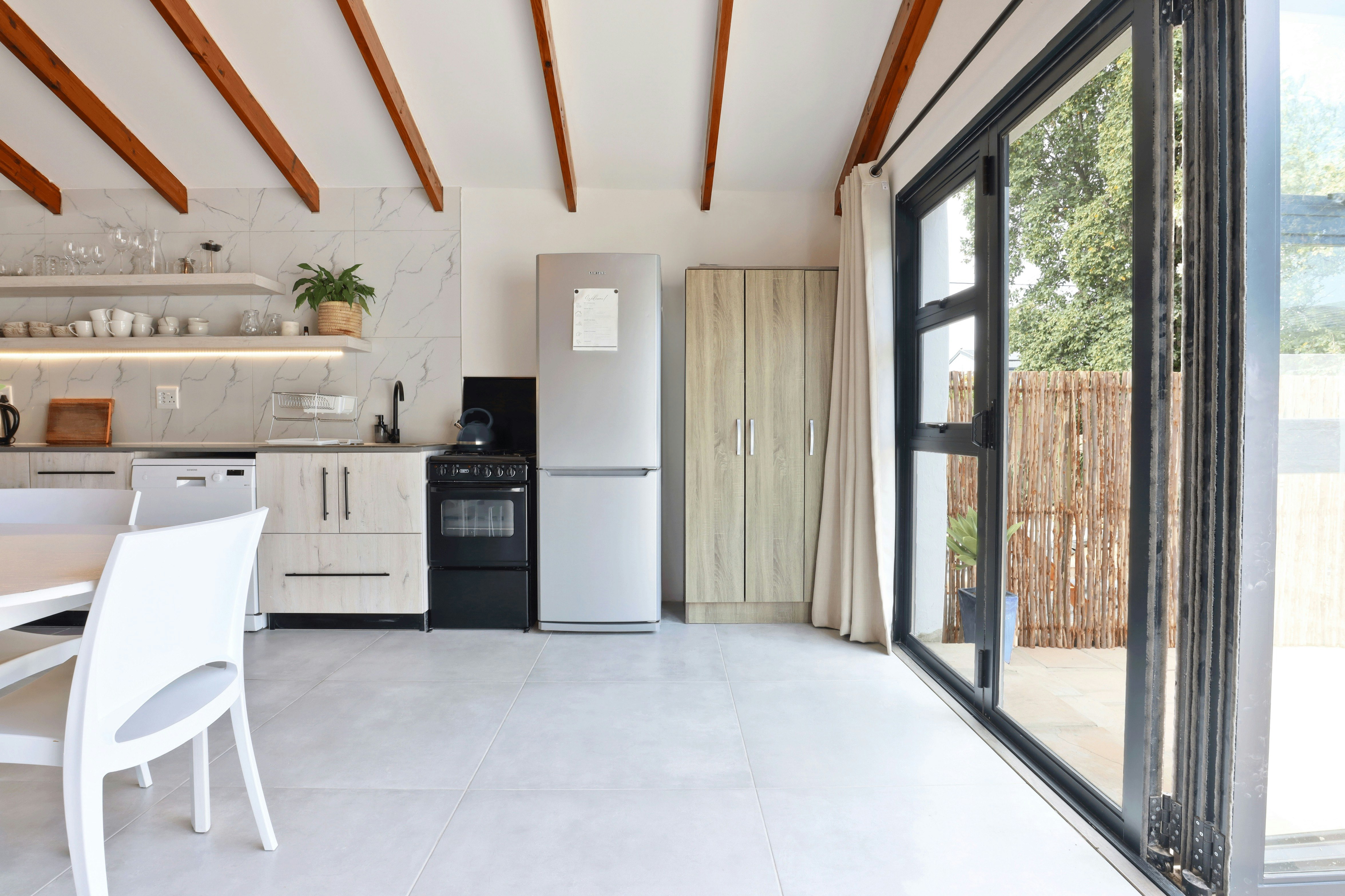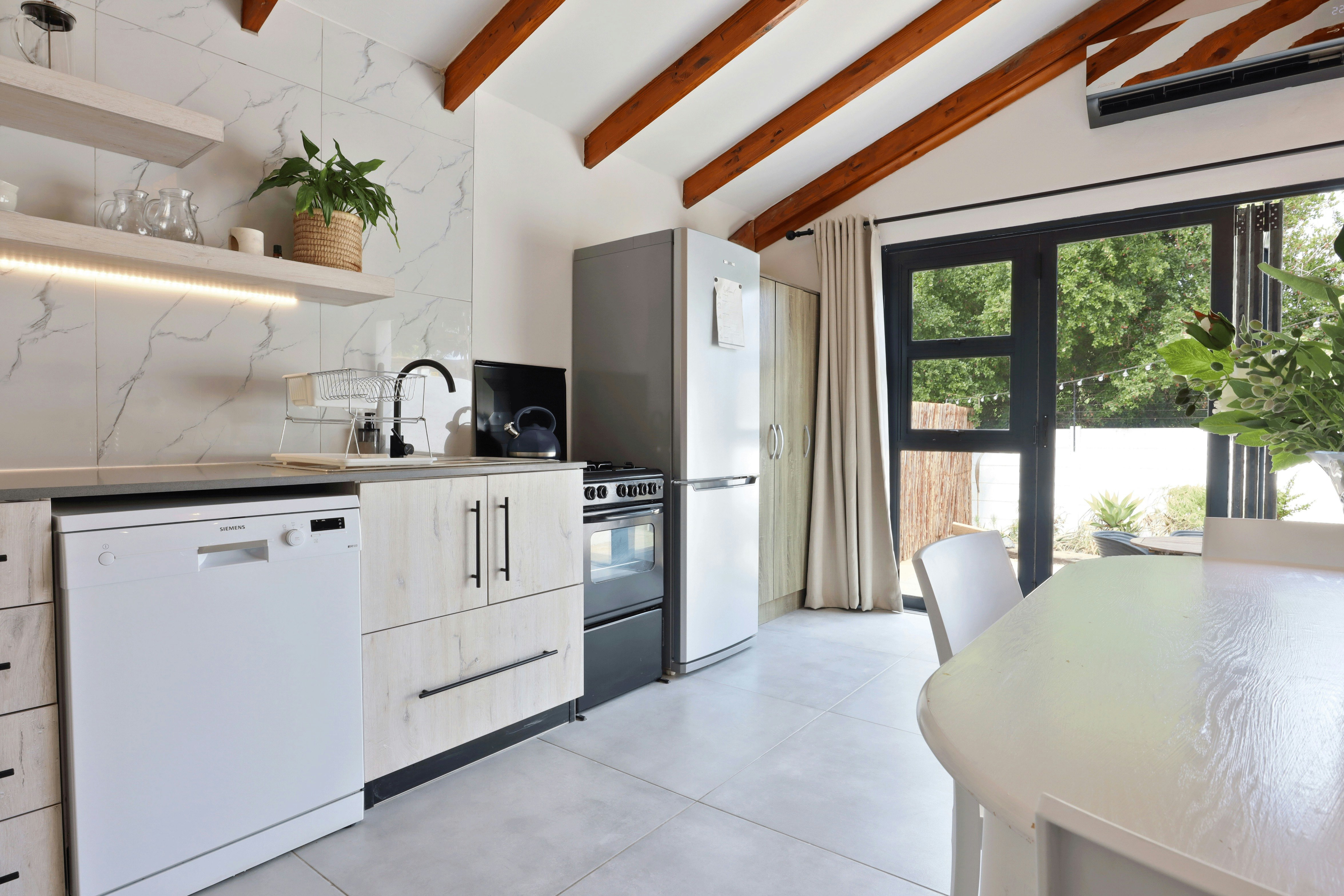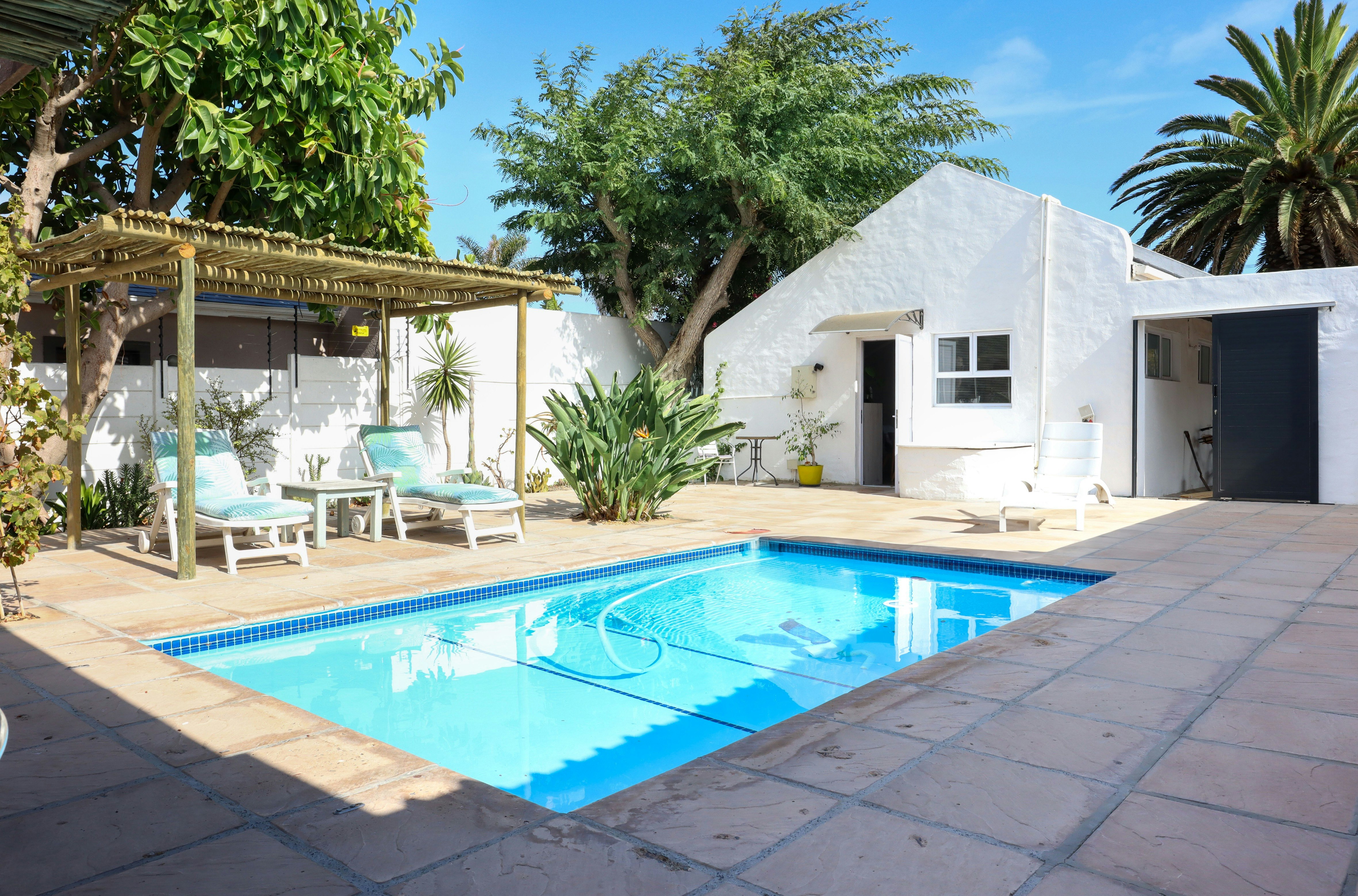 Guests can enjoy a private courtyard right off the living area that features a dining table, and on the other side, the home boasts a shared swimming pool with sunloungers, and a shared undercover braai area. An inverter and secure parking are available on the premises. Local amenities such as shops and restaurants are within close proximity, with Blouberg Beachfront being approximately 2 km away.