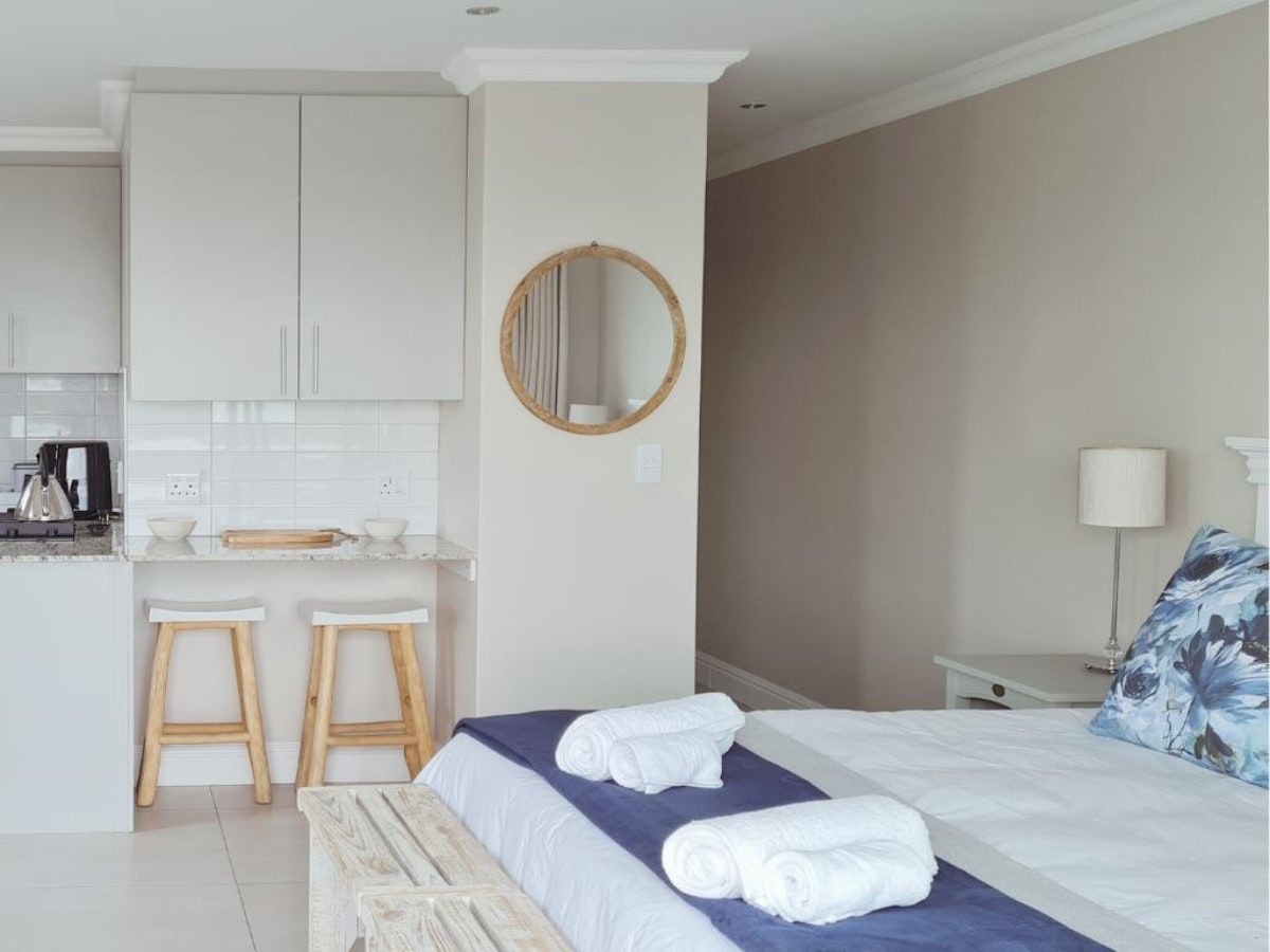 Ideally suited for 2 guests, this open-plan studio is furnished with a king-size bed and includes an en-suite bathroom fitted with a walk-in shower, washbasin and toilet. Crisp white linen, bath towels and beach towels are provided.