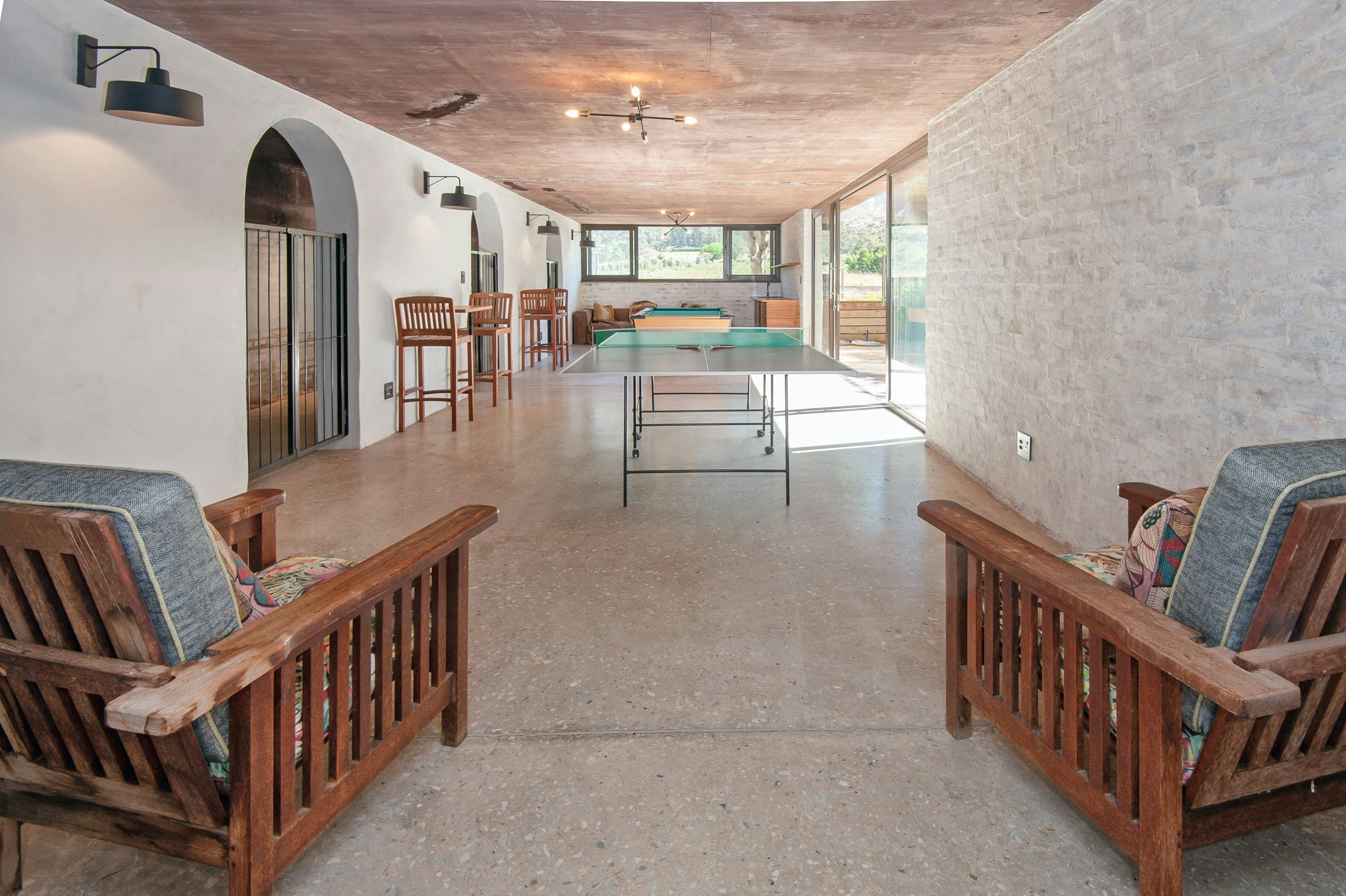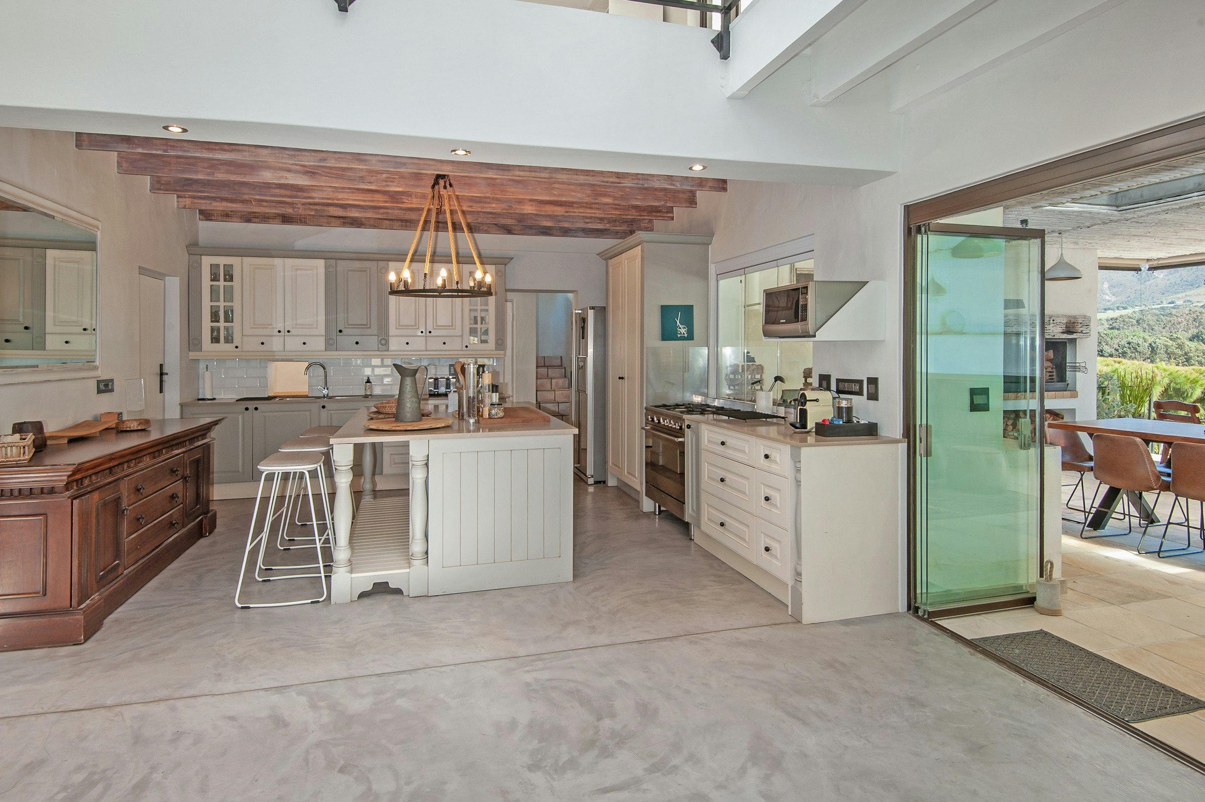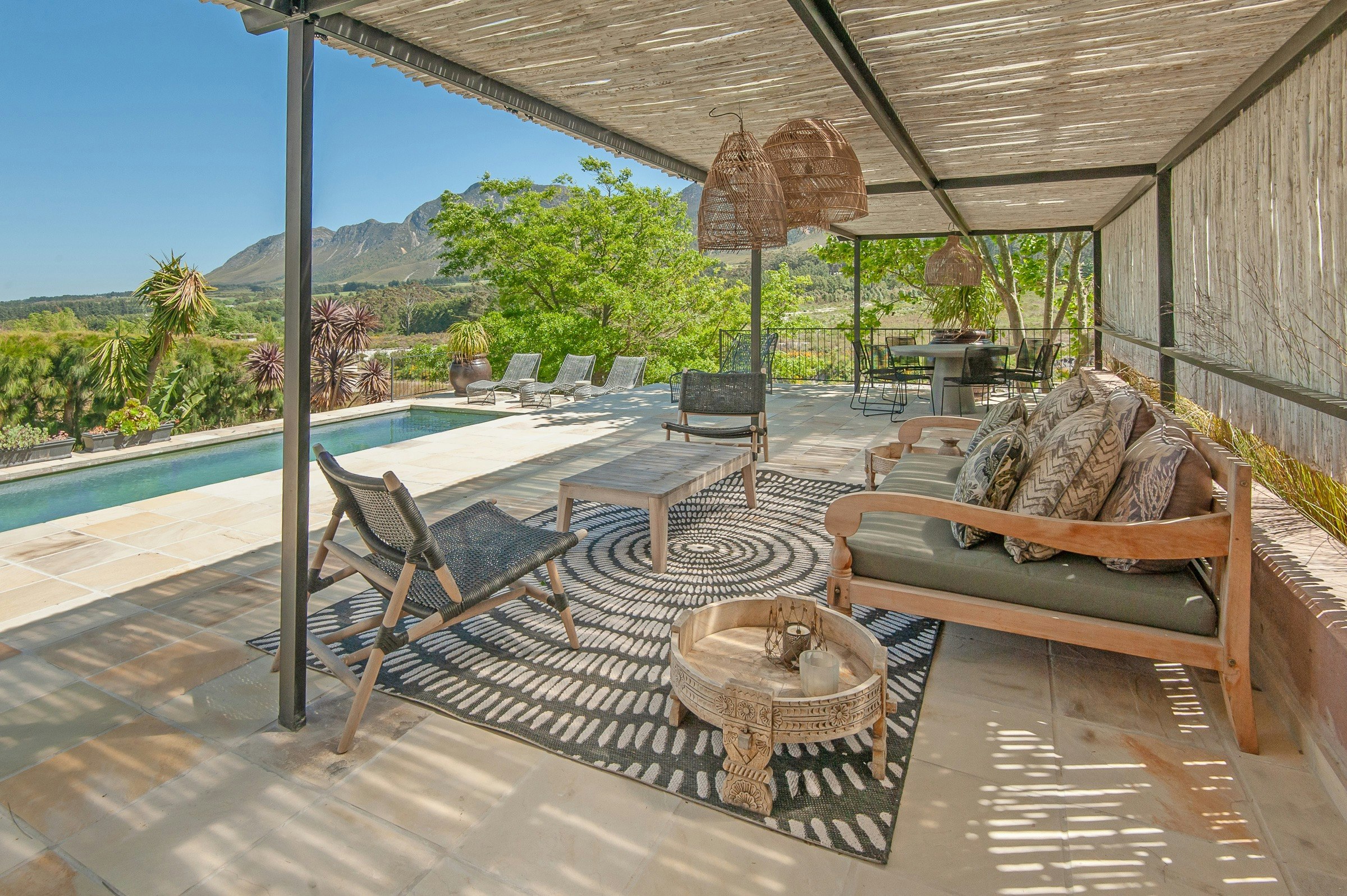 Additionally, there is an indoor bar complete with a fridge and ample seating. Outside, a furnished patio features a braai area, pizza oven, and fully equipped bar overlooking the swimming pool. Guests can also relax on the deck while enjoying views of the surrounding landscape.