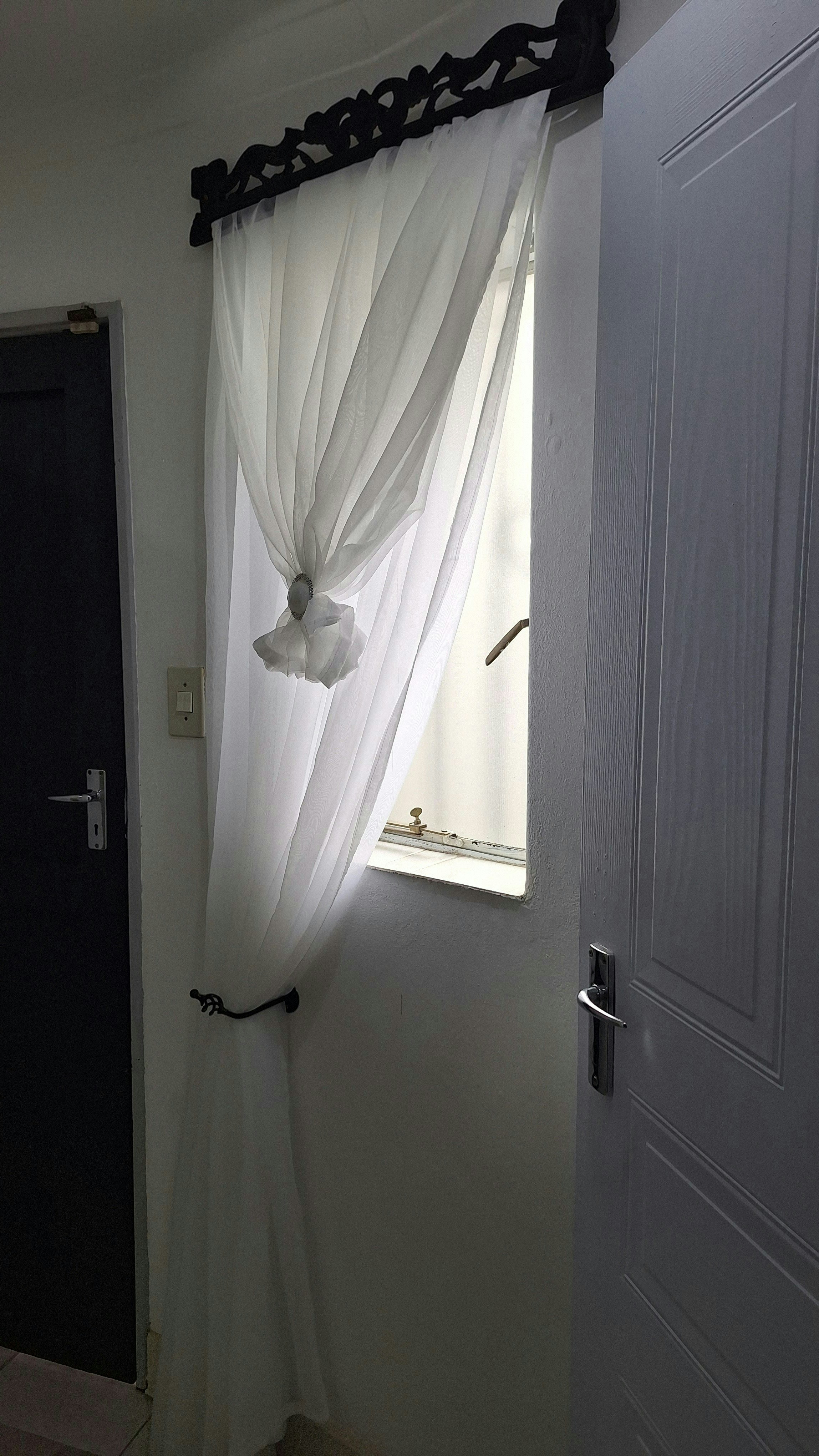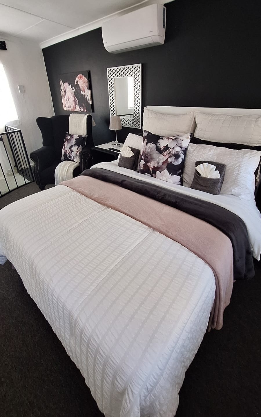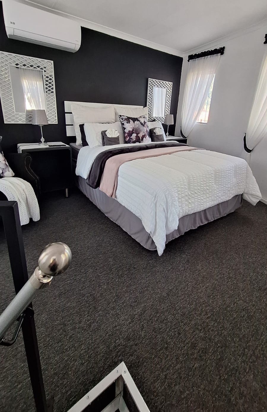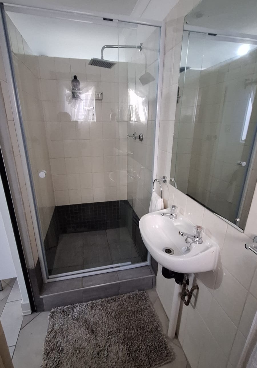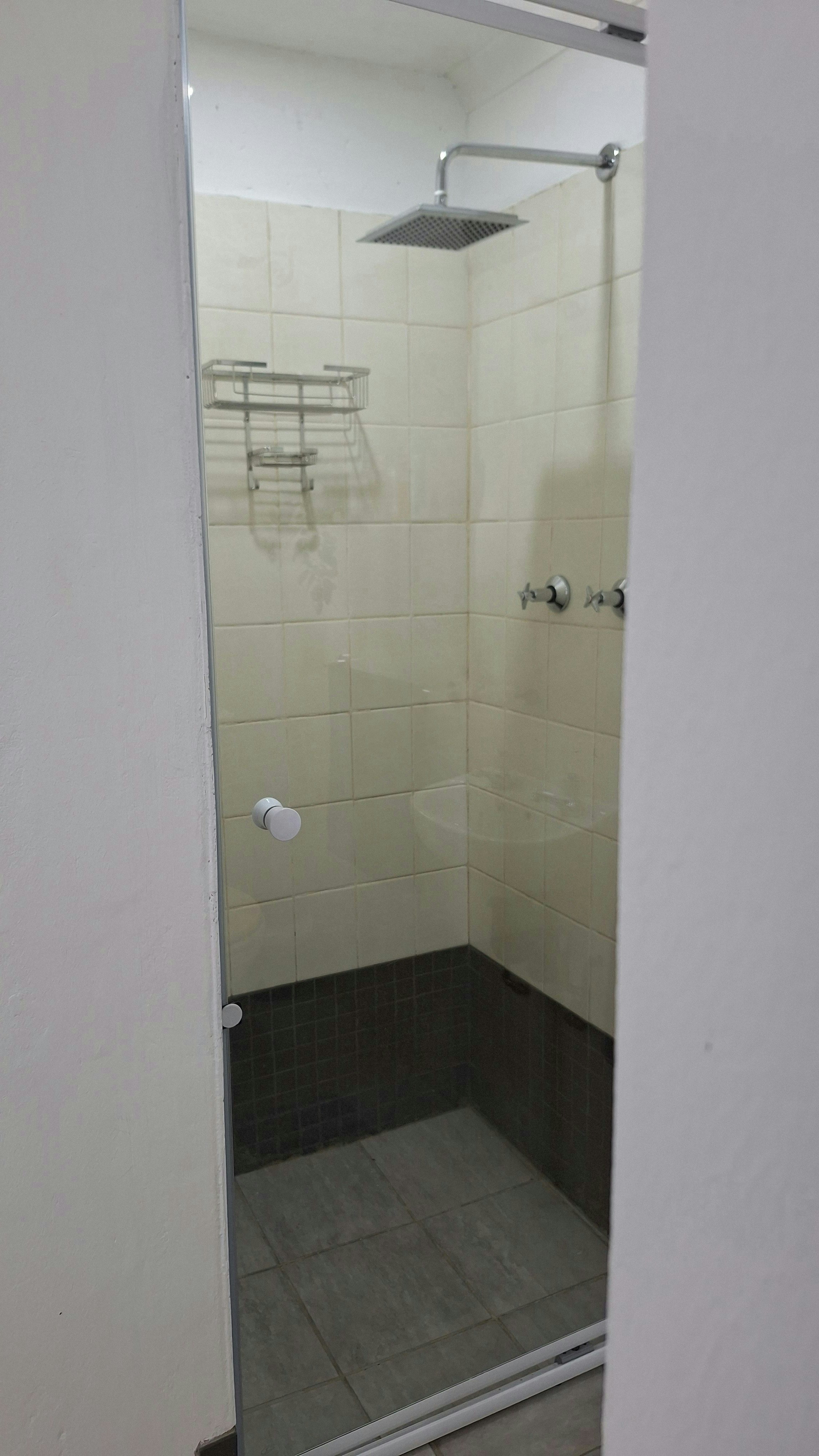 The communal kitchen is fully equipped for self-catering and contains a microwave, air fryer, fridge, toaster, kettle, and tea- and coffee-making facilities. The living area includes a TV with access to streaming services and free Wi-Fi. Guests have access to a braai area, secure parking, and airport transfer services by prior arrangement. A solar system and generator are available to assist during power interruptions, and security features include CCTV cameras, security beams, and armed response.