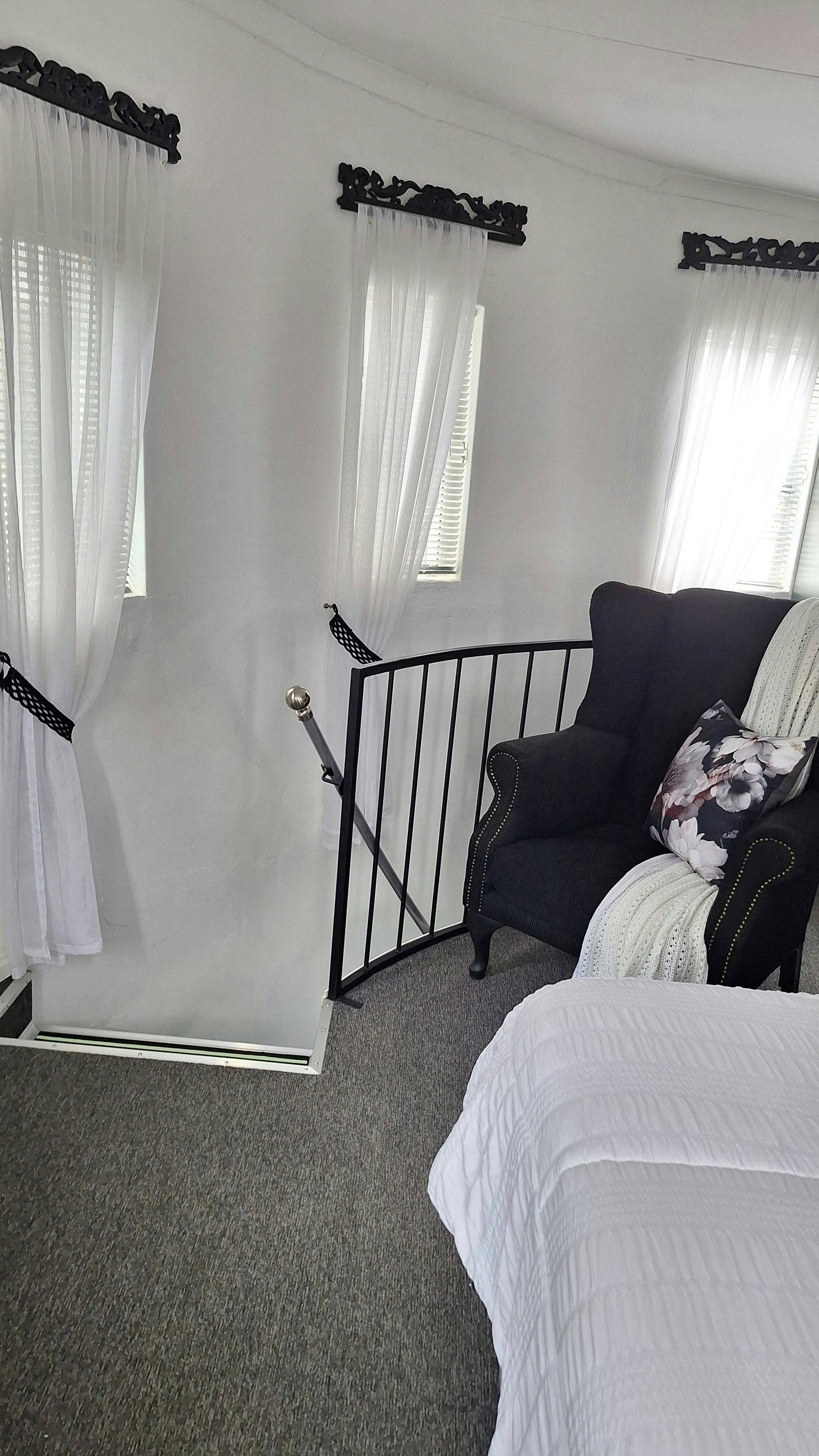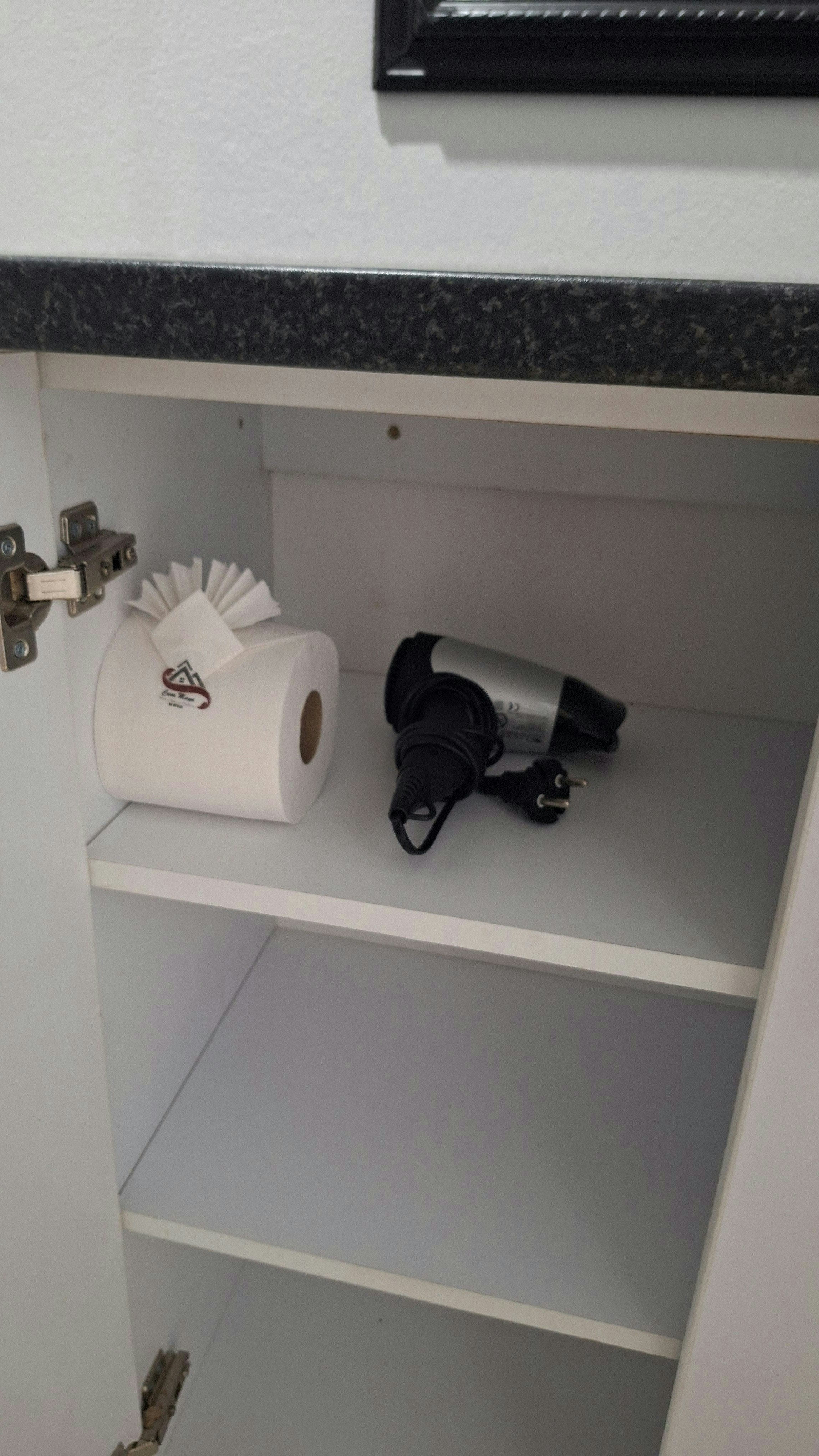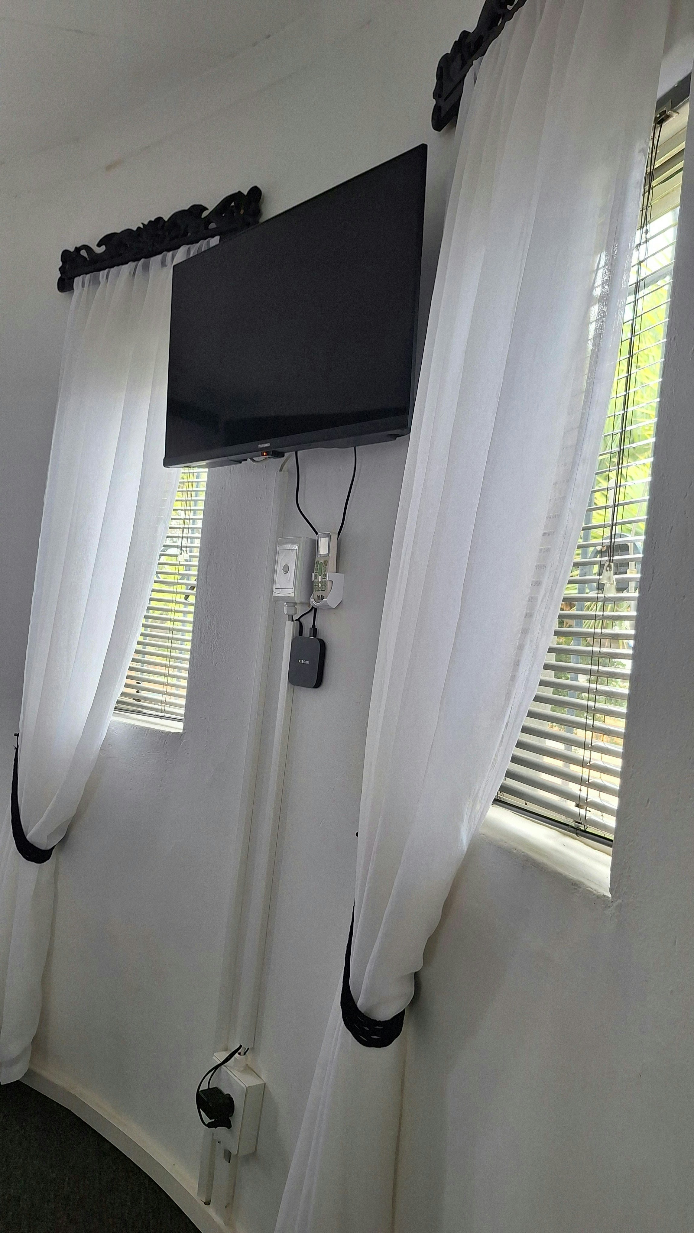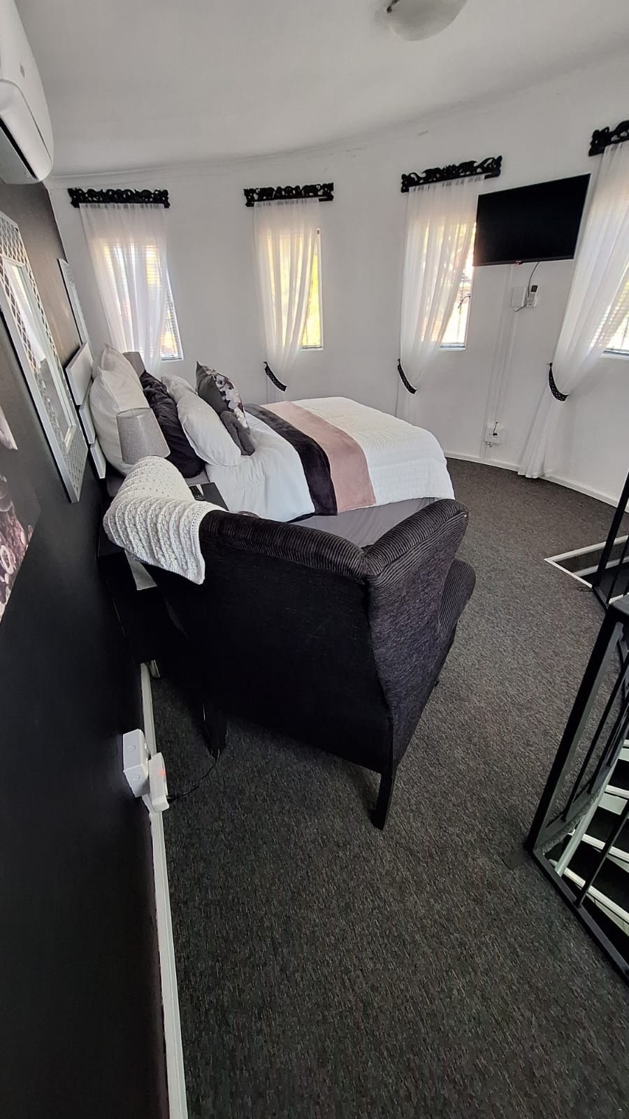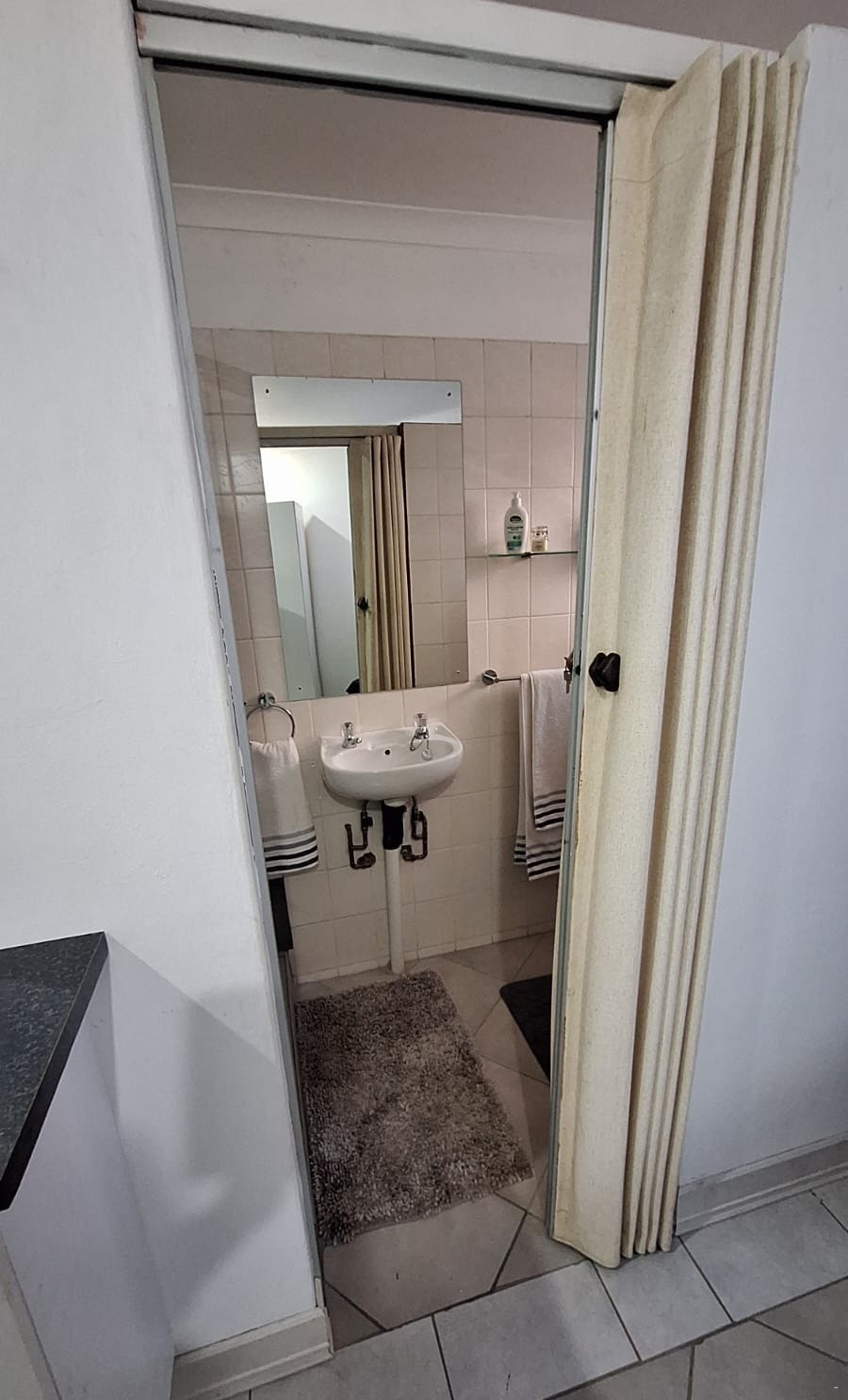 The communal kitchen is fully equipped for self-catering and contains a microwave, air fryer, fridge, toaster, kettle, and tea- and coffee-making facilities. The living area includes a TV with access to streaming services and free Wi-Fi. Guests have access to a braai area, secure parking, and airport transfer services by prior arrangement. A solar system and generator are available to assist during power interruptions, and security features include CCTV cameras, security beams, and armed response.
