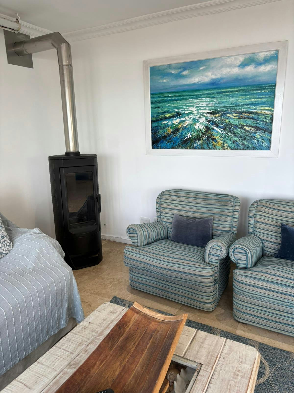 Die huis bestaan uit 'n oopplan-kombuis, -sitkamer en -eetarea. Binnebraai en houtkaggels is beskikbaar vir daardie winderige en koue dae. Die kombuis is toegerus vir selfsorg met 'n yskas/vrieskas, kisvrieskas, 'n elektriese oond, 'n gasstoof, 'n mikrogolfoond en 'n wasmasjien, asook tee- en koffiemaakgeriewe. In die sitkamer is daar 'n kaggel en 'n TV met 'n volledige verskeidenheid DStv-kanale. WiFi is beskikbaar. Parkeerplek is beskikbaar vir 1 groot voertuig of twee klein voertuie en 'n boot.