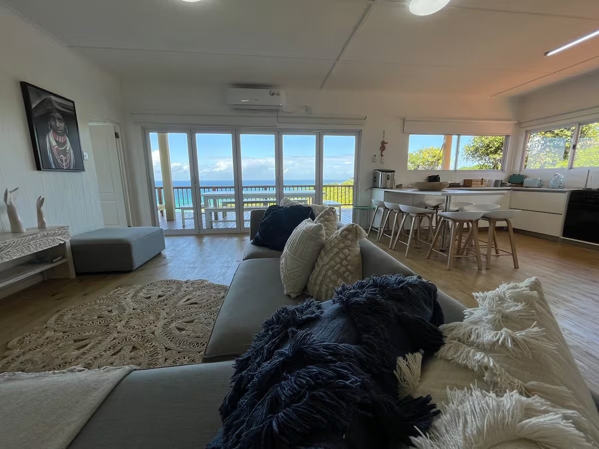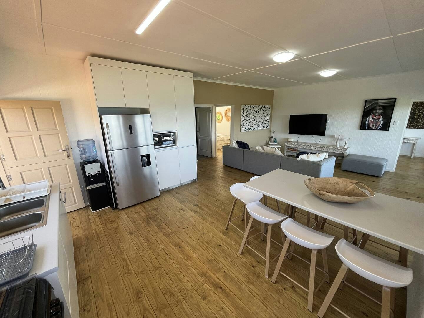 Die oopplan-leefarea sluit 'n volledig toegeruste kombuis met 'n eiland, 'n leefarea met lugversorging en toegang tot die buite-vermaakruimtes in. Die voordek het 'n groot eetkamertafel, terwyl die sydek 'n plonspoel en 'n gasbraai bied vir ontspanning buite.