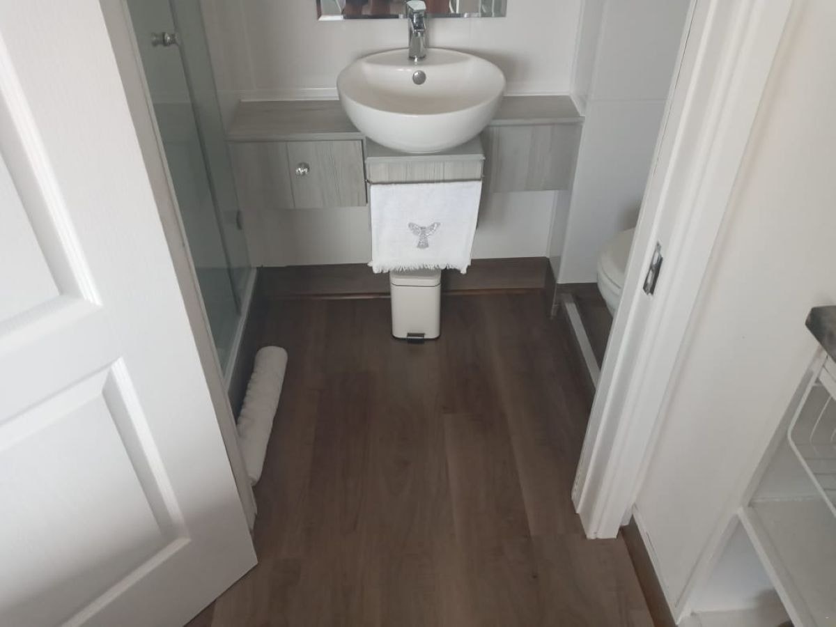 The kitchen is well equipped with a gas stove, fridge-freezer, dishwasher, as well as cutlery and crockery. The open-plan living area features a dining table and comfortable seating, offering a welcoming space to unwind. A delicious breakfast is included for added comfort.