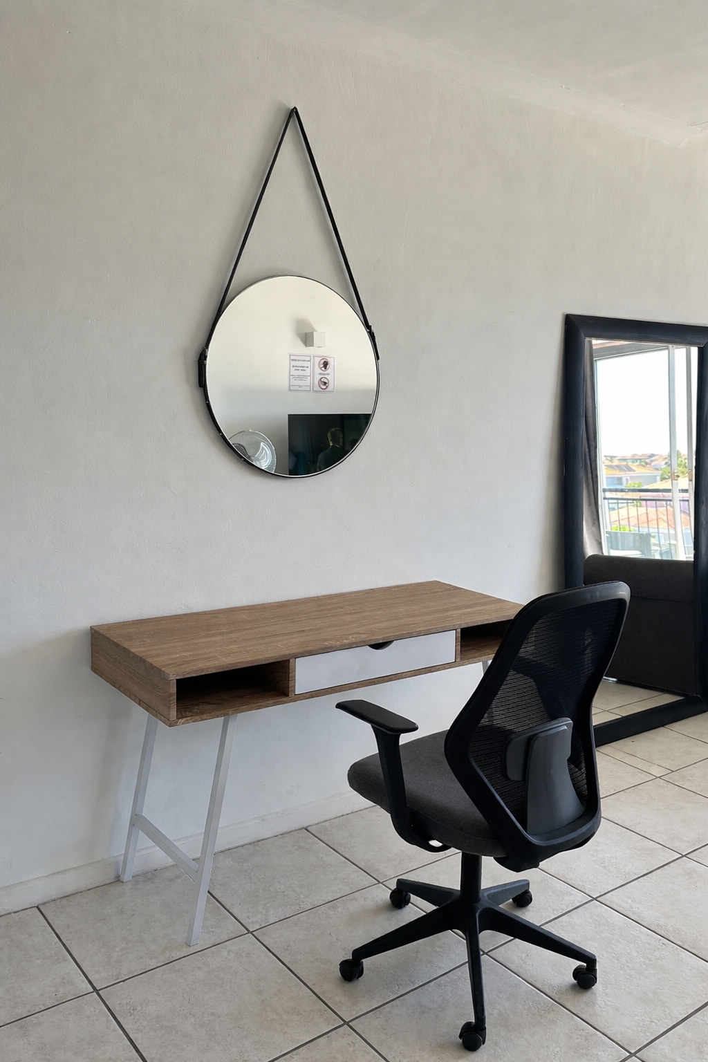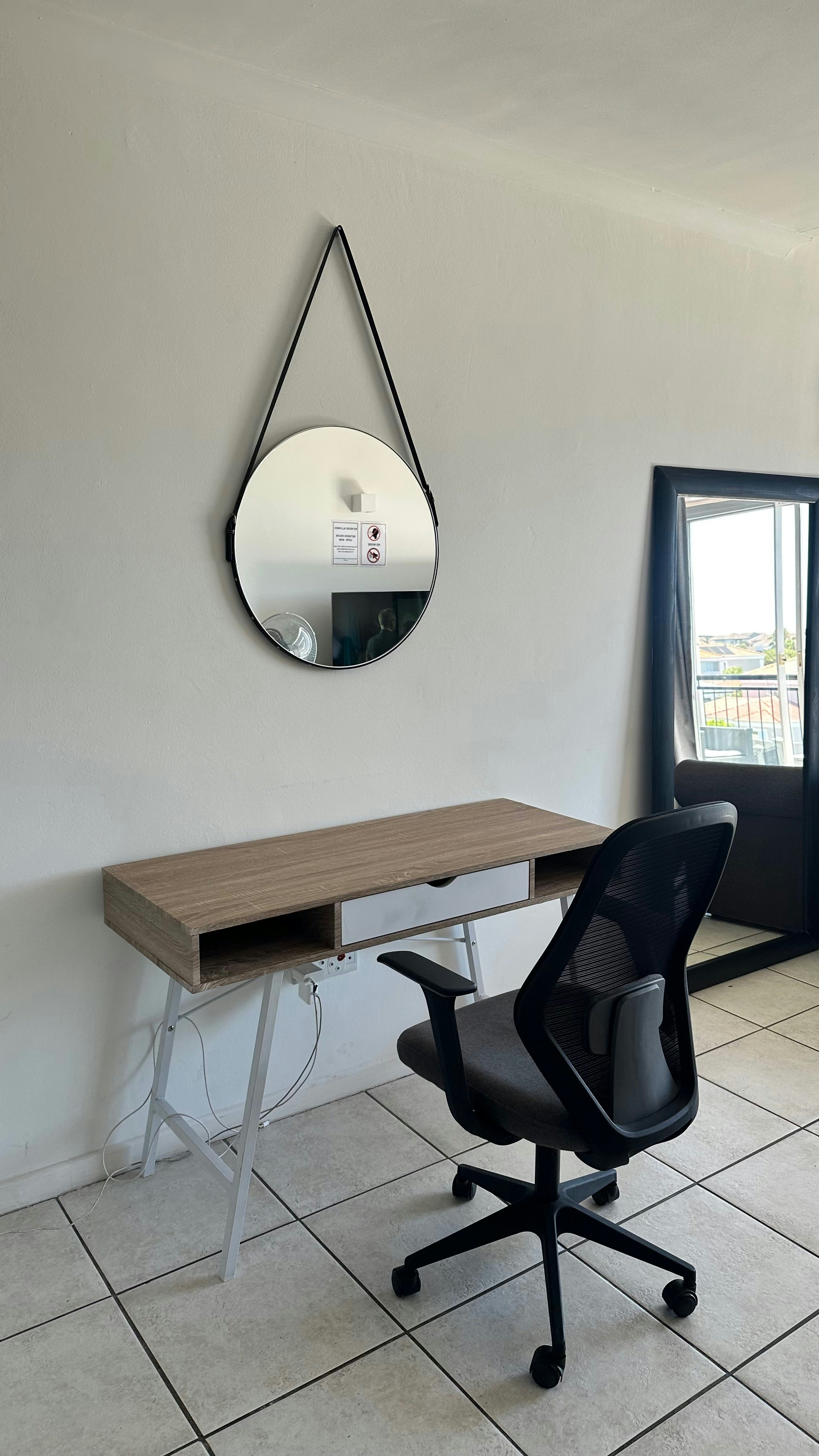 This living area opens onto a balcony which boasts stunning views of the surrounding area and the iconic Table Mountain. Guests have full access to the communal swimming pool and braai facilities. Guests are afforded secure parking in the complex.
