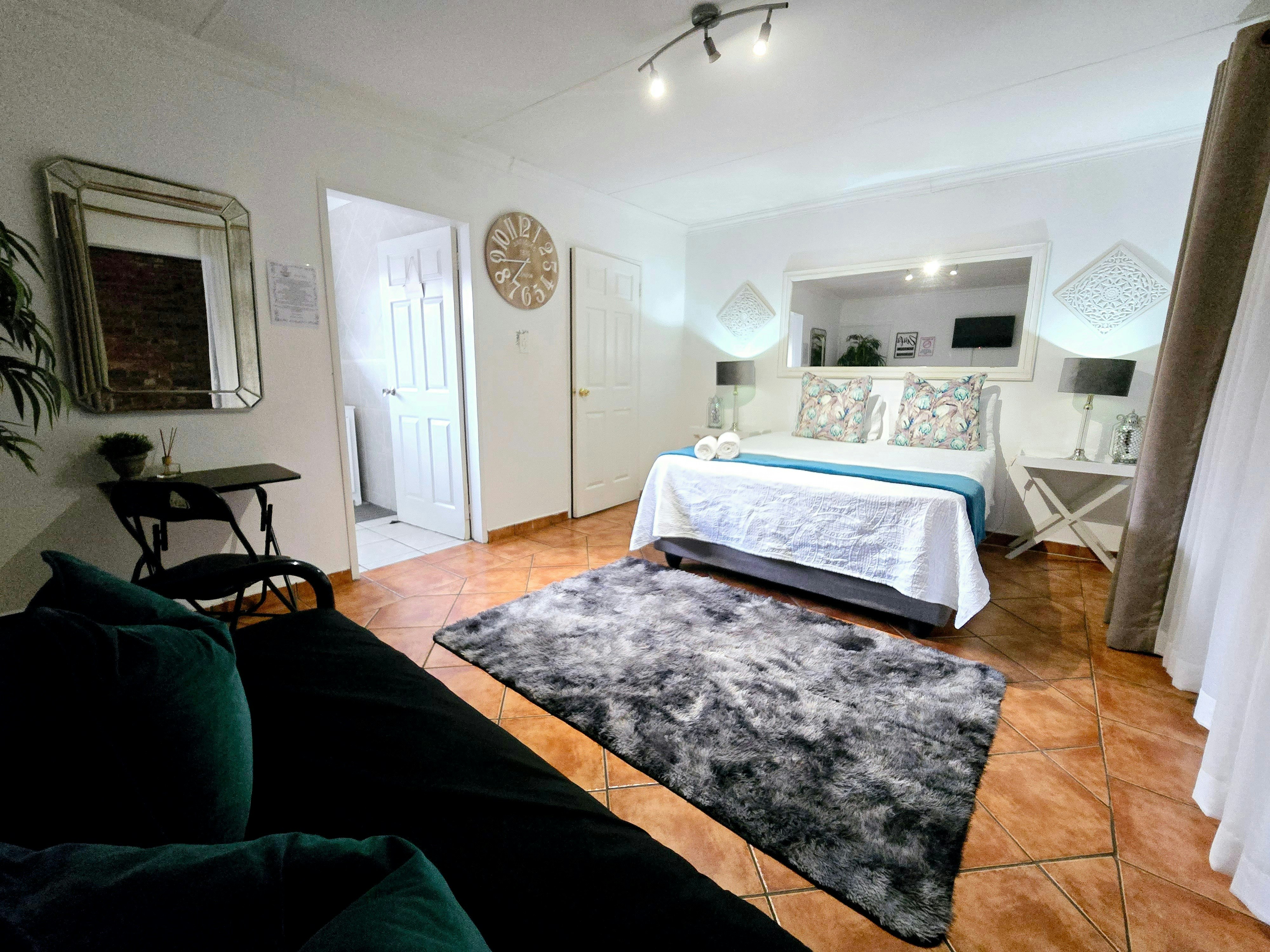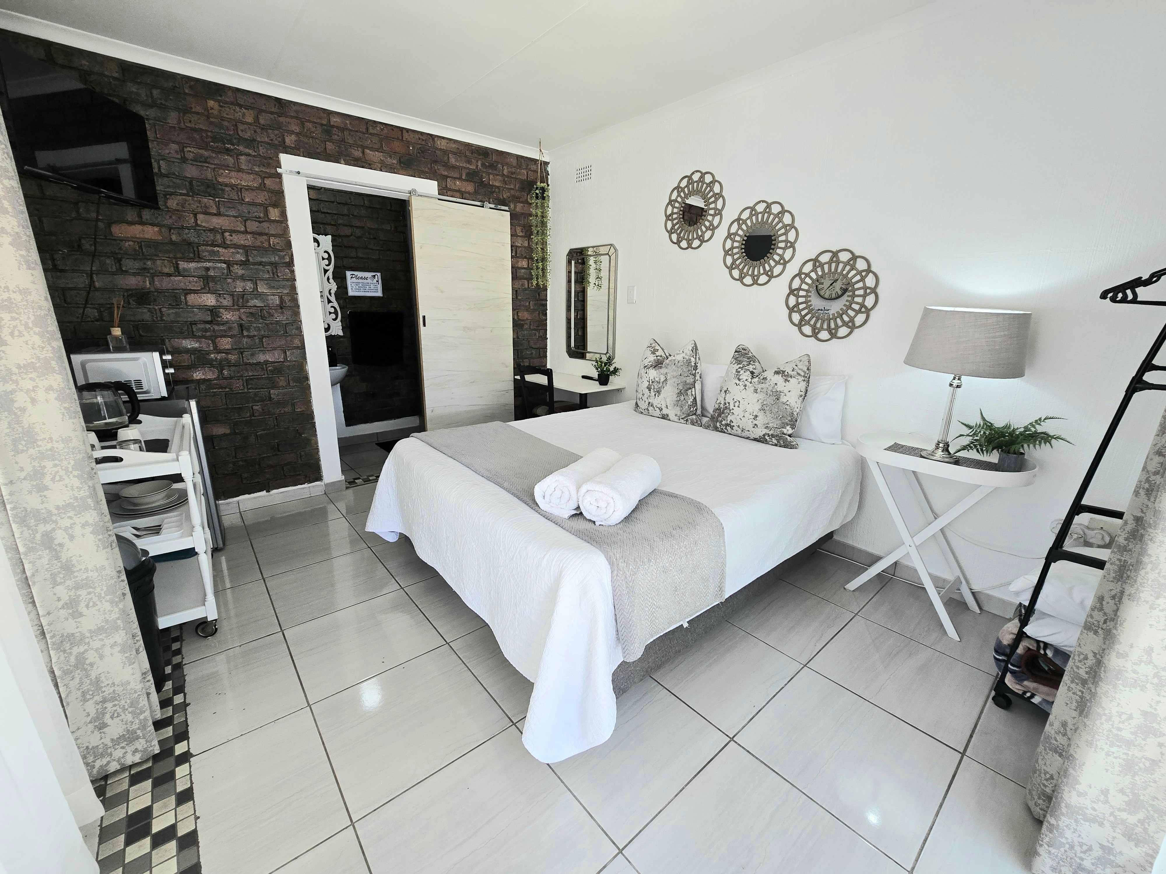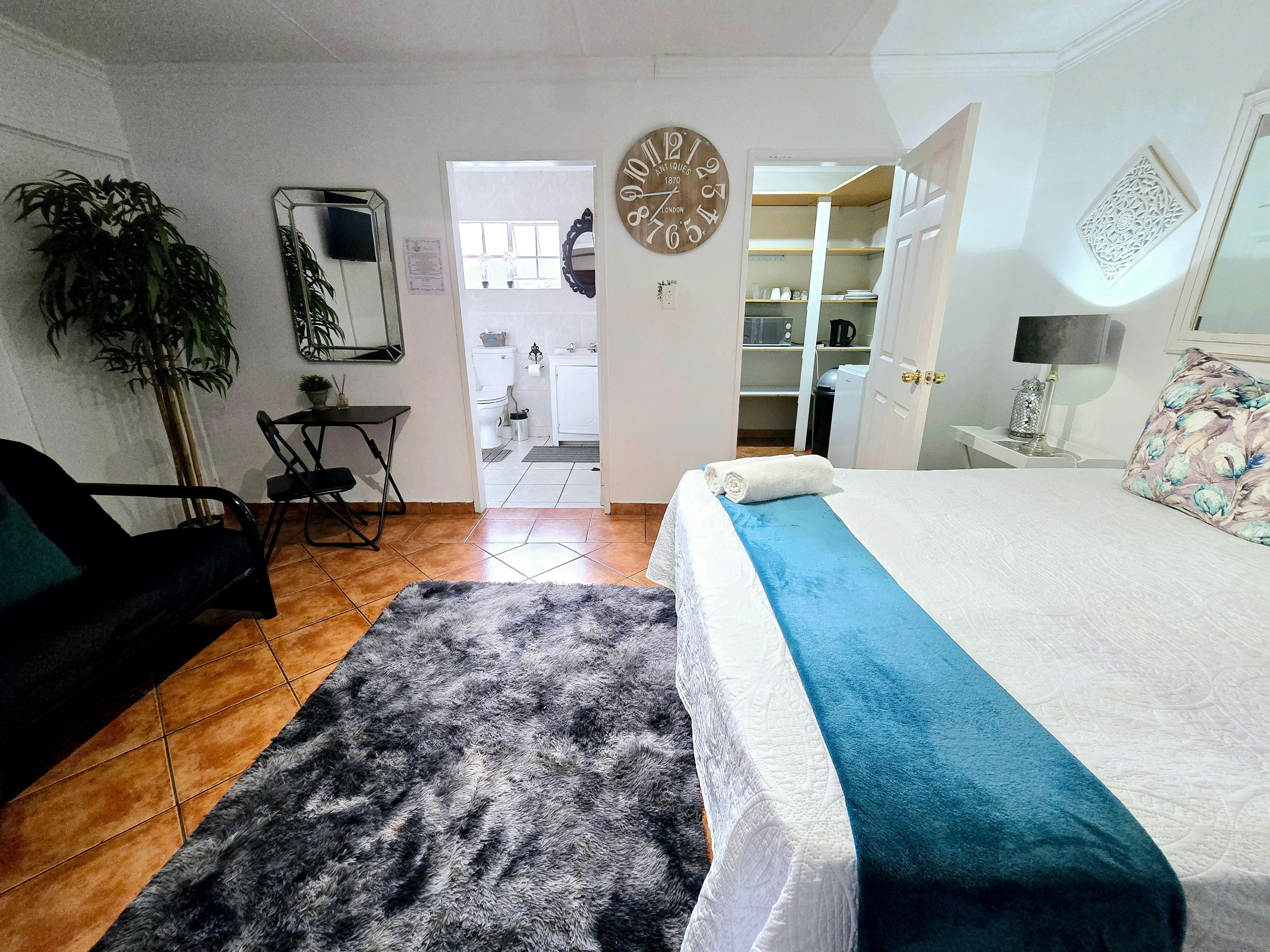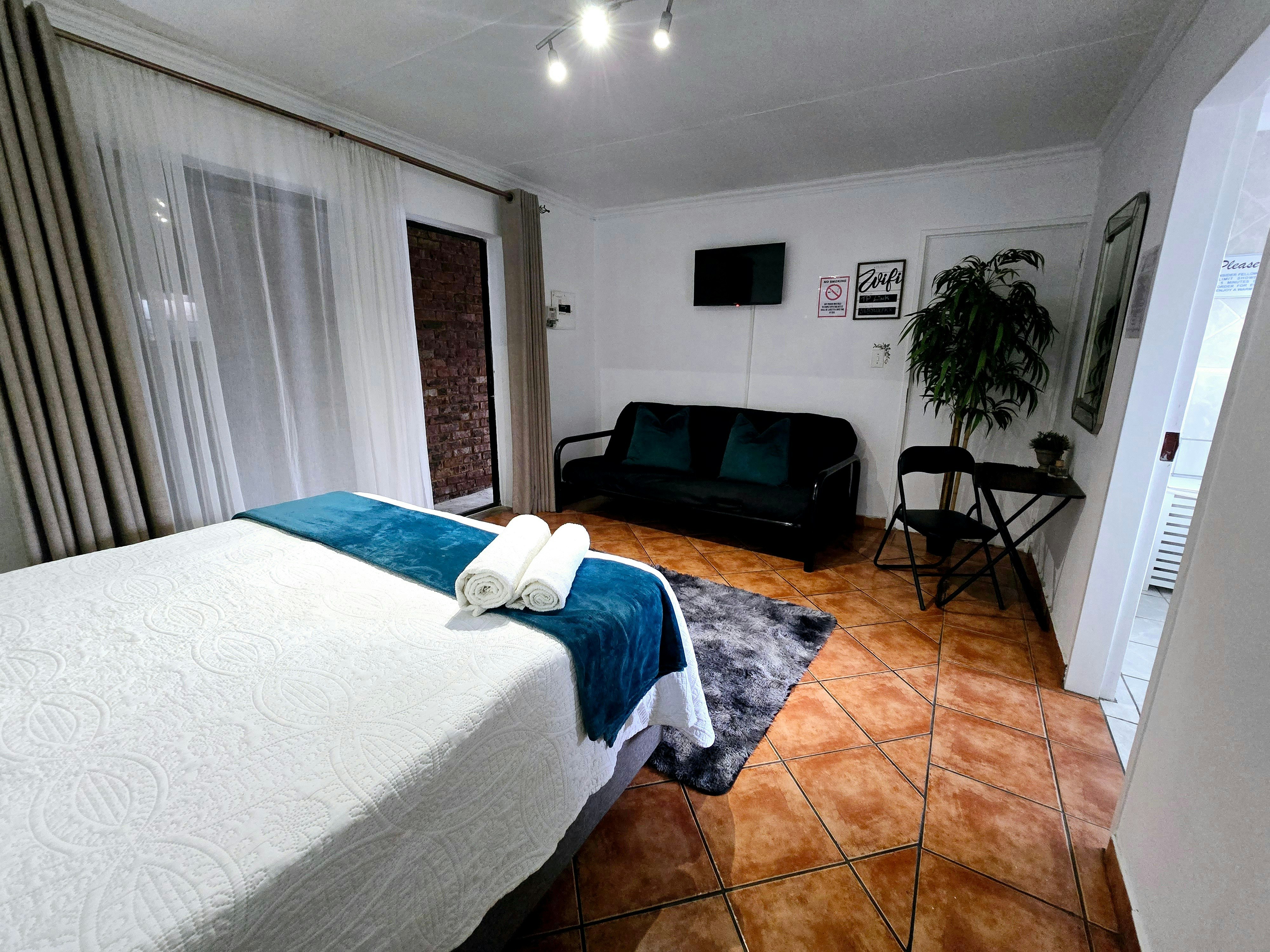 Accommodation is offered in 4 units. Units 1, 3 and 4 are furnished with a queen-size bed and an en-suite bathroom with a shower, toilet and washbasin. The apartment is equipped with a flat-screen TV with Netflix and a selection of DStv channels, free Wi-Fi internet access, and tea- and coffee-making facilities. Sliding doors open to a covered patio with a table and 2 chairs. Parking for 1 vehicle is provided.