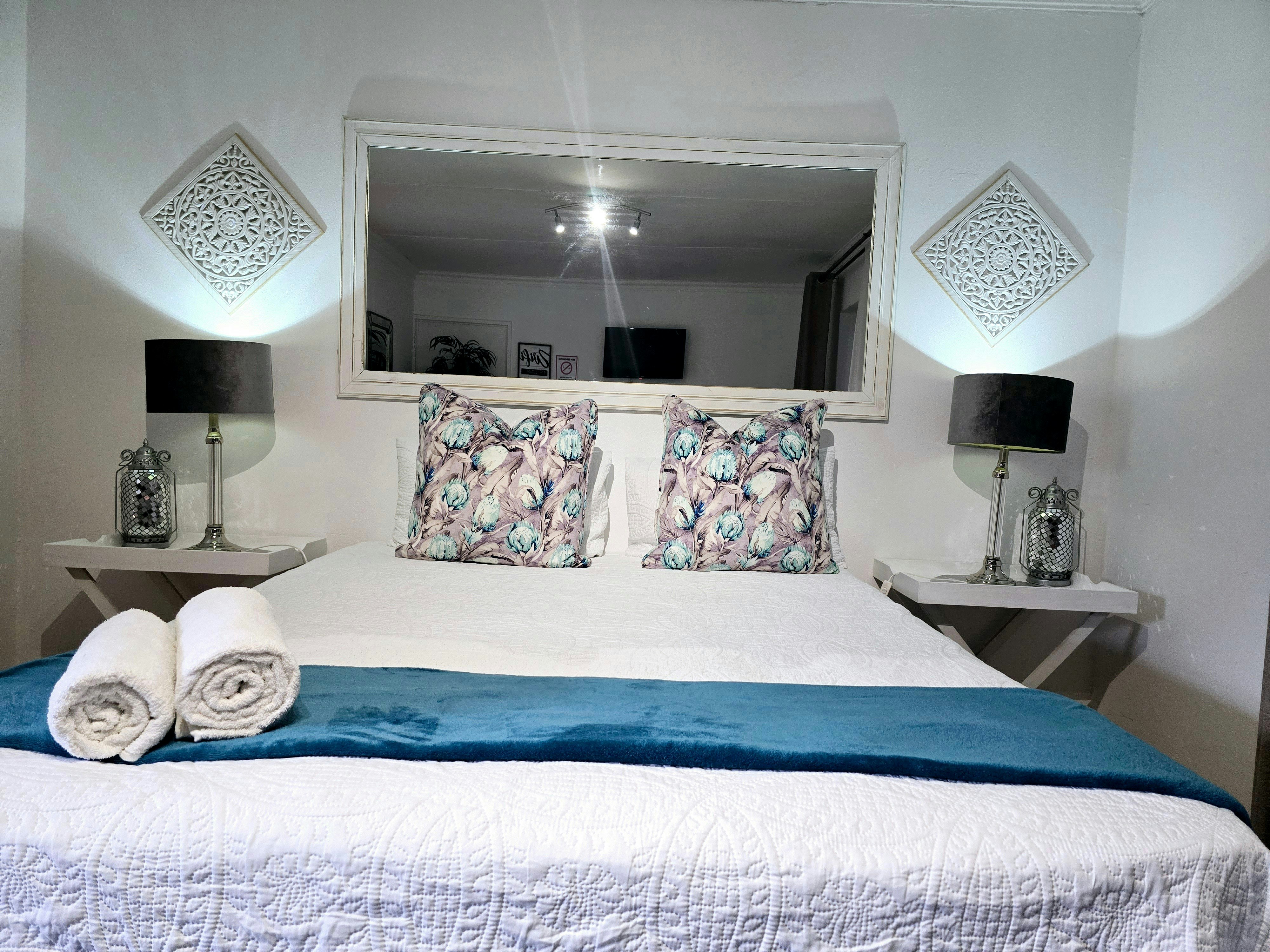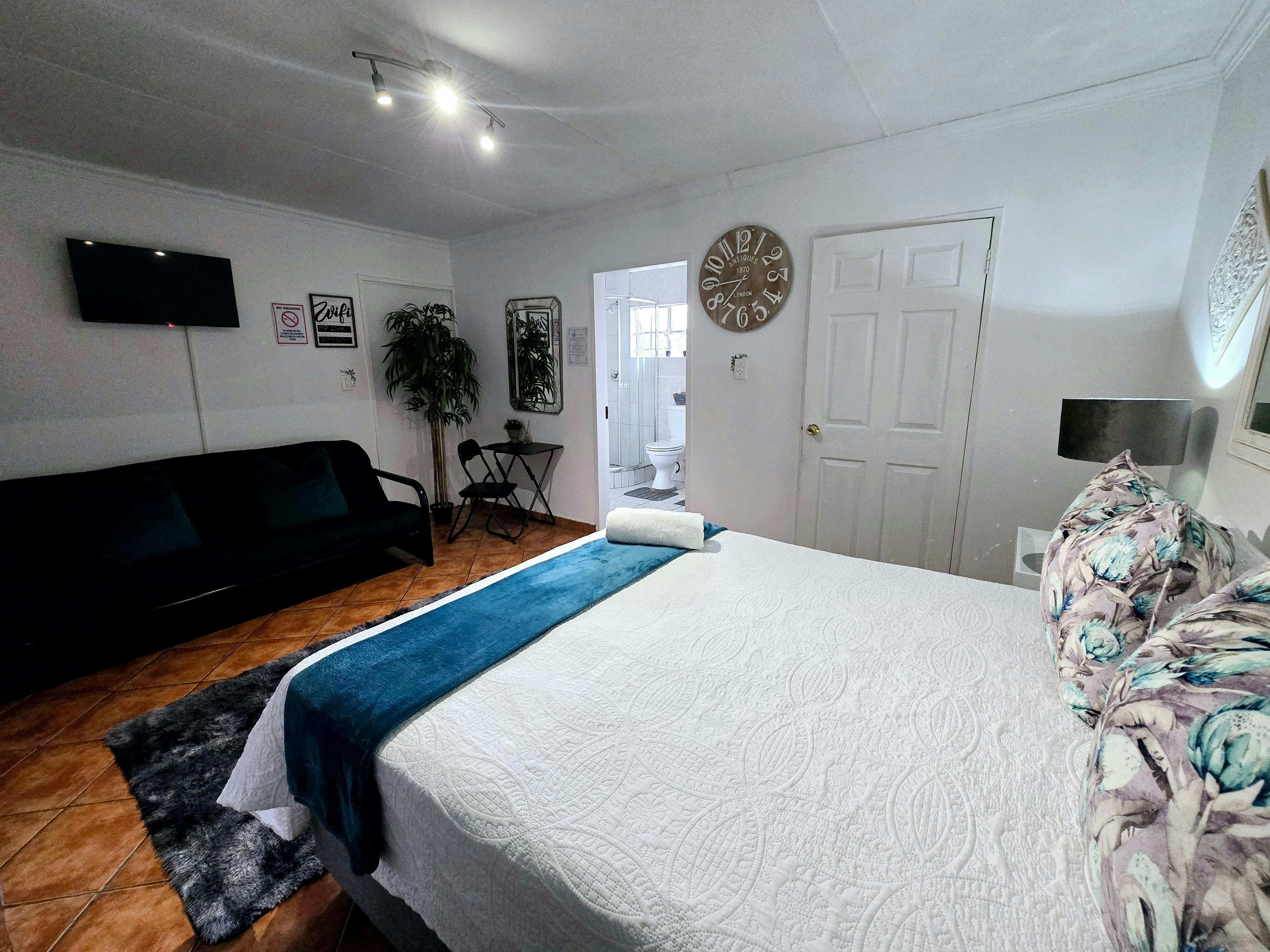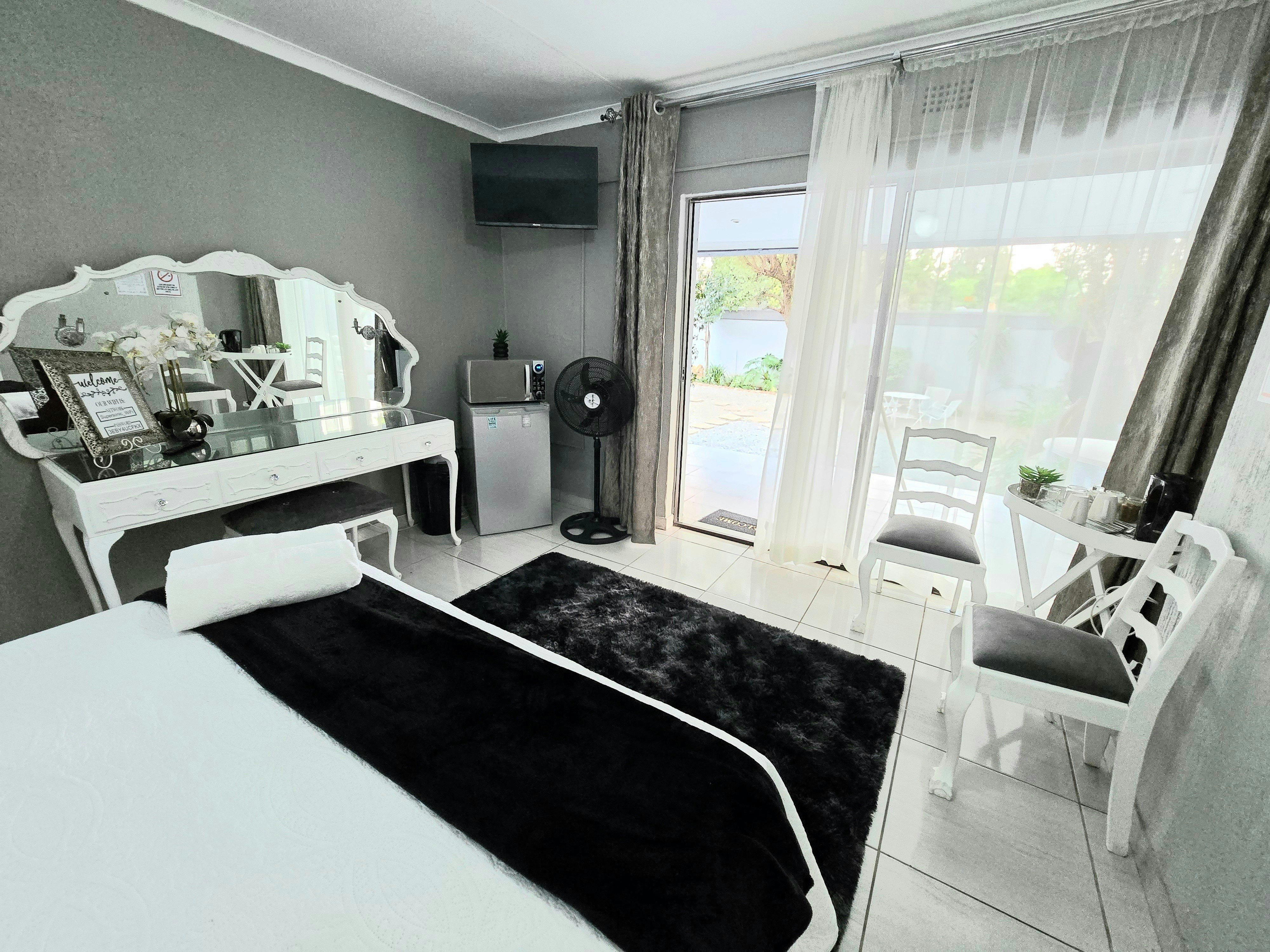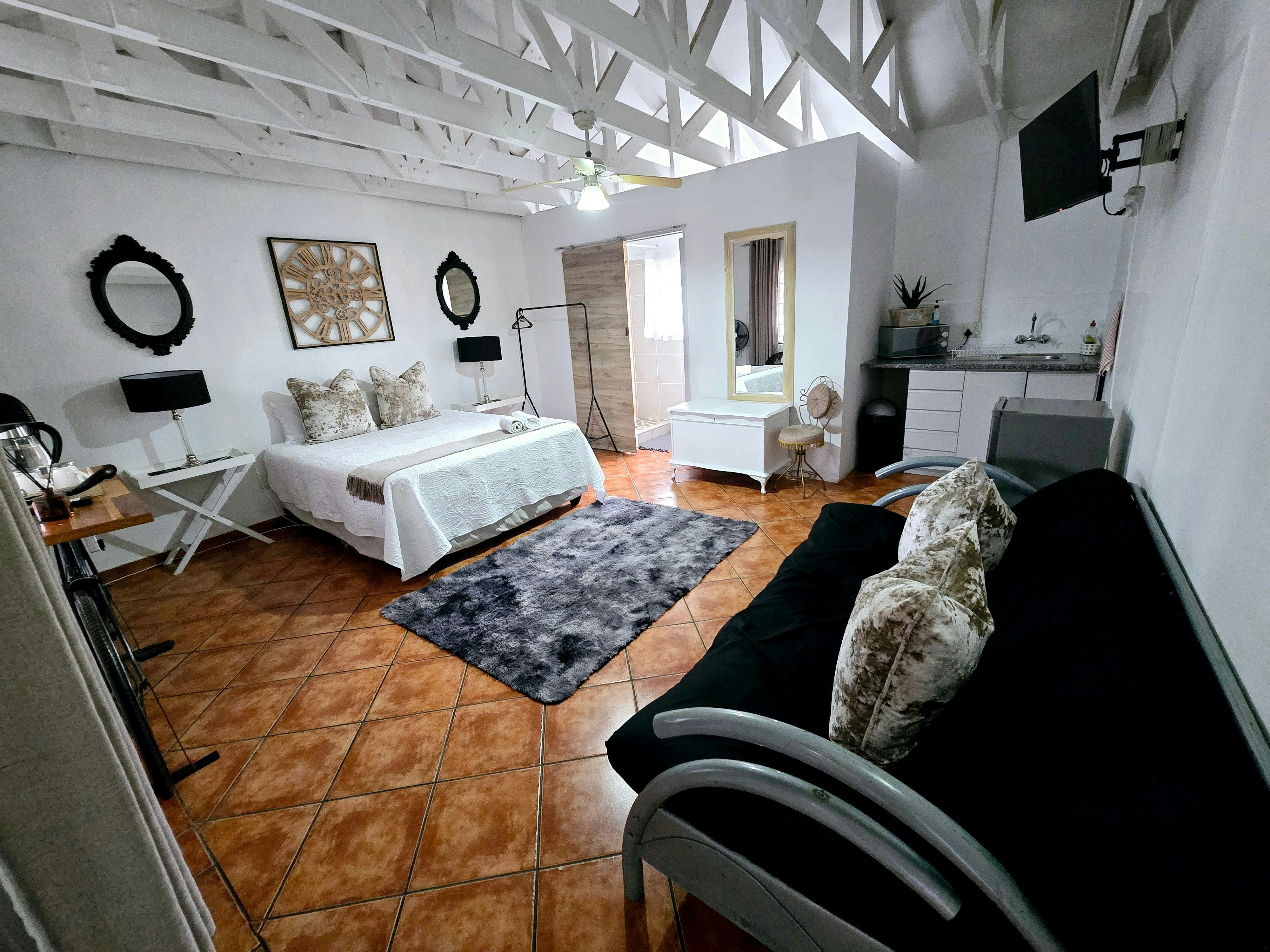 Accommodation is offered in 4 units. Units 1, 3 and 4 are furnished with a queen-size bed and an en-suite bathroom with a shower, toilet and washbasin. The apartment is equipped with a flat-screen TV with Netflix and a selection of DStv channels, free Wi-Fi internet access, and tea- and coffee-making facilities. Sliding doors open to a covered patio with a table and 2 chairs. Parking for 1 vehicle is provided.