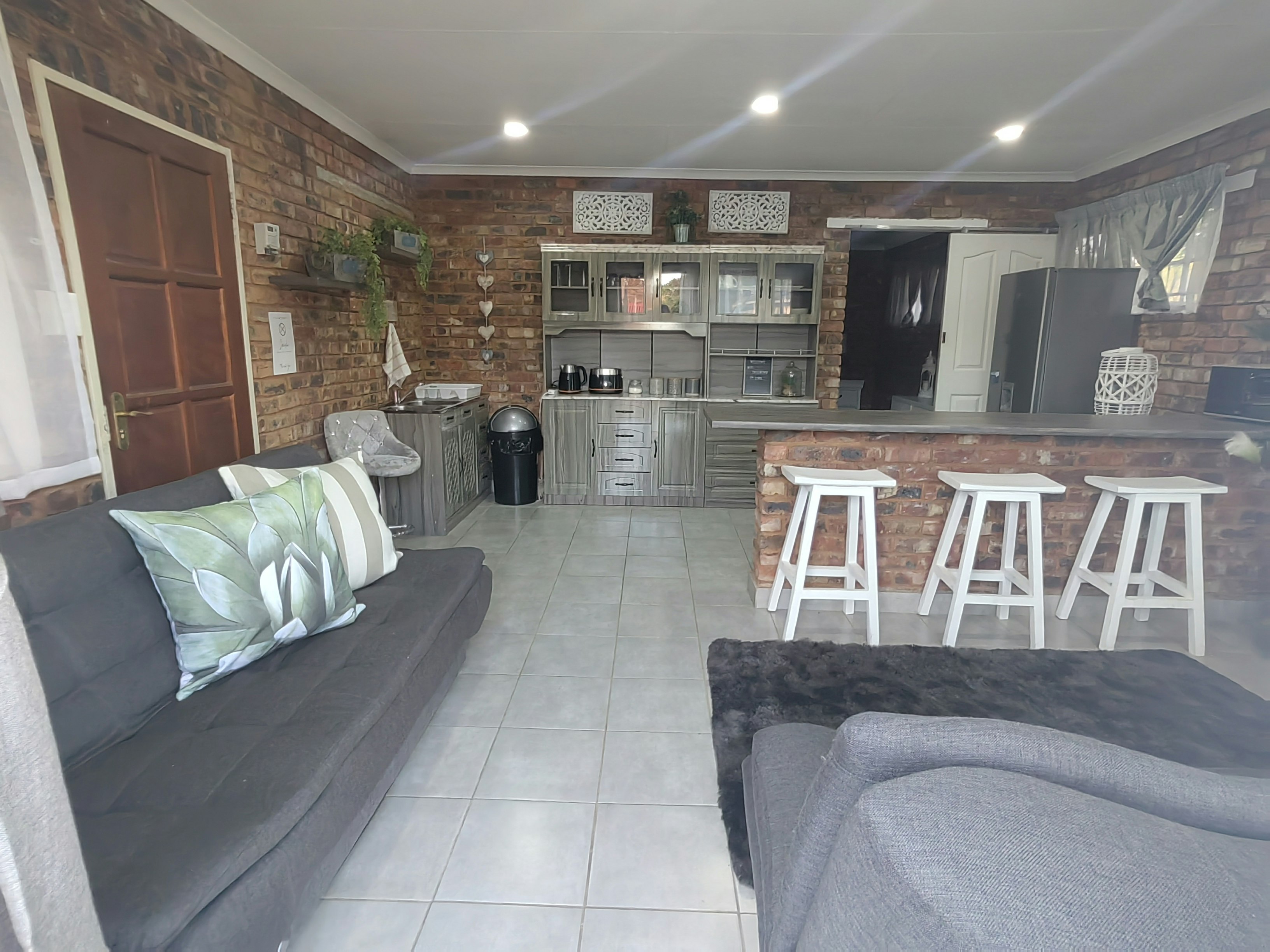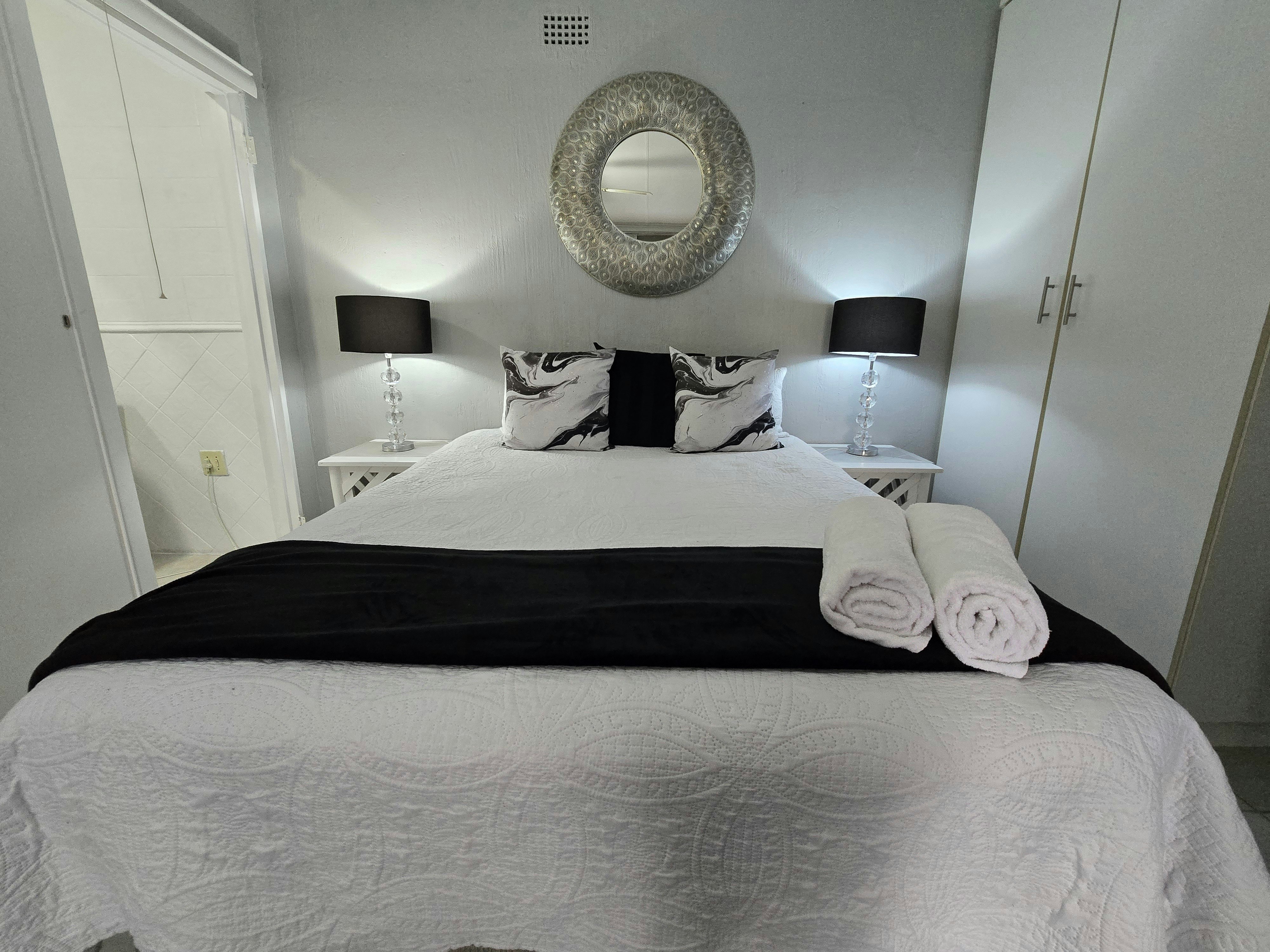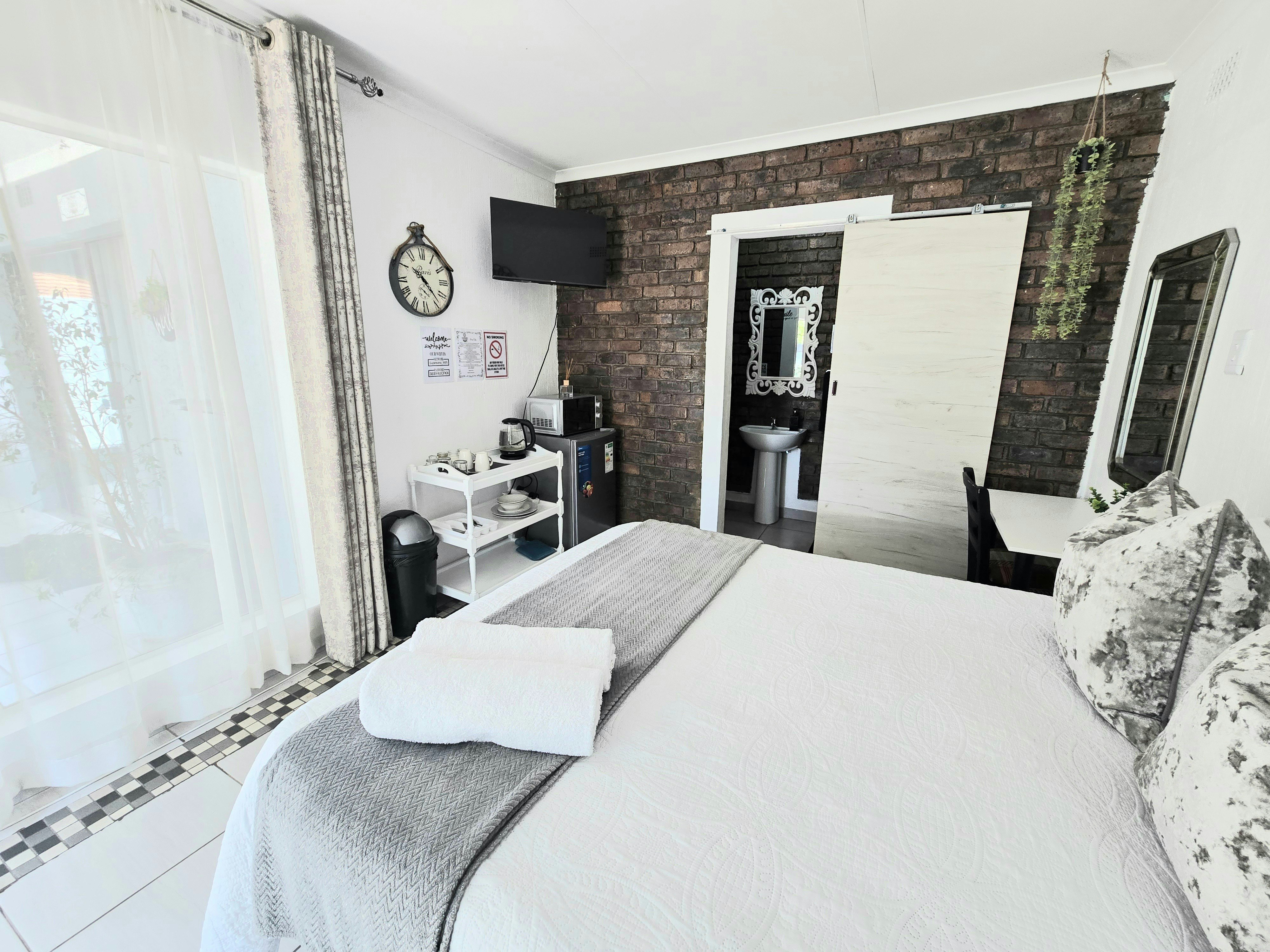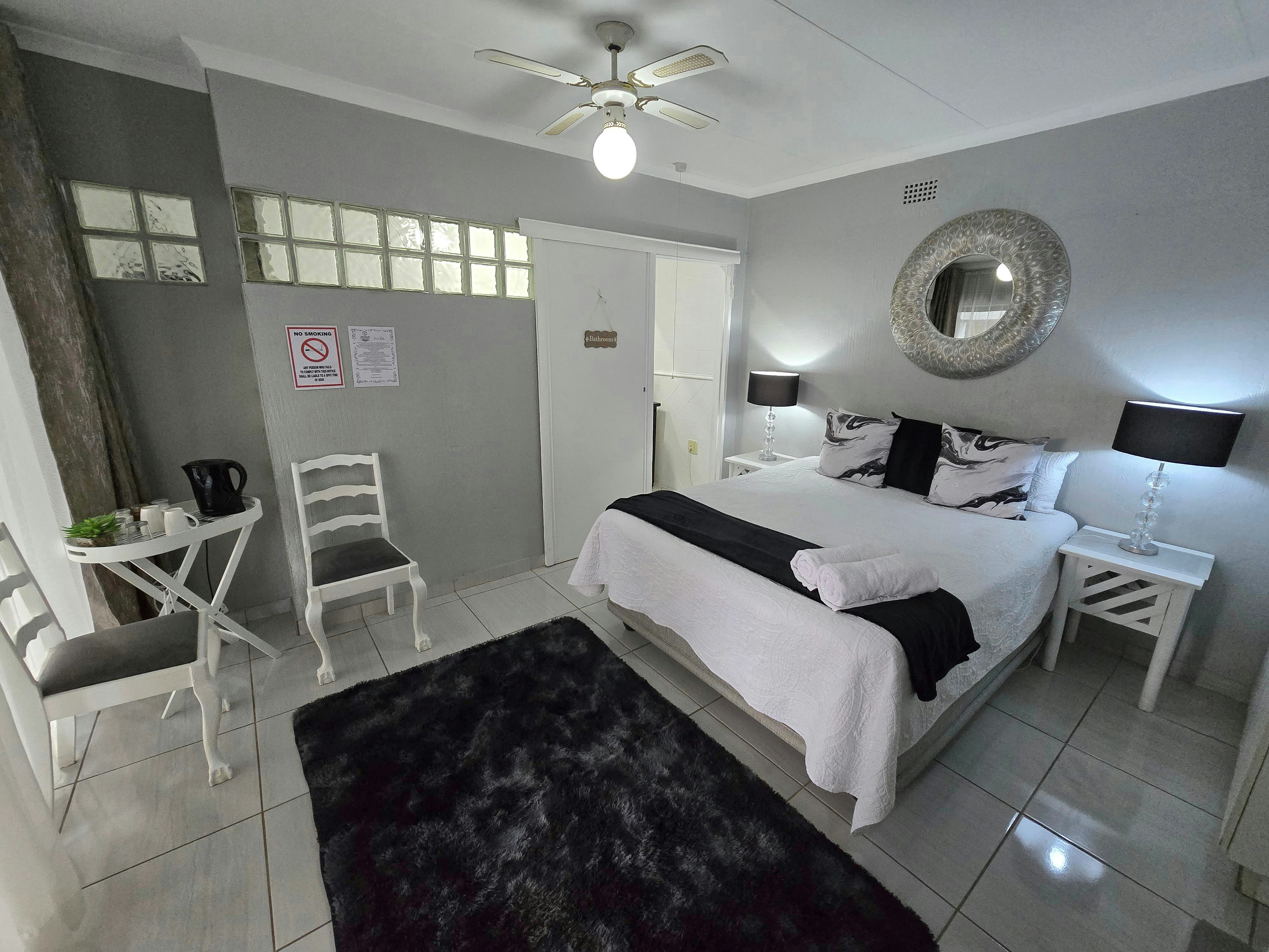 Accommodation is offered in 4 units. Units 1, 3 and 4 are furnished with a queen-size bed and an en-suite bathroom with a shower, toilet and washbasin. The apartment is equipped with a flat-screen TV with Netflix and a selection of DStv channels, free Wi-Fi internet access, and tea- and coffee-making facilities. Sliding doors open to a covered patio with a table and 2 chairs. Parking for 1 vehicle is provided.