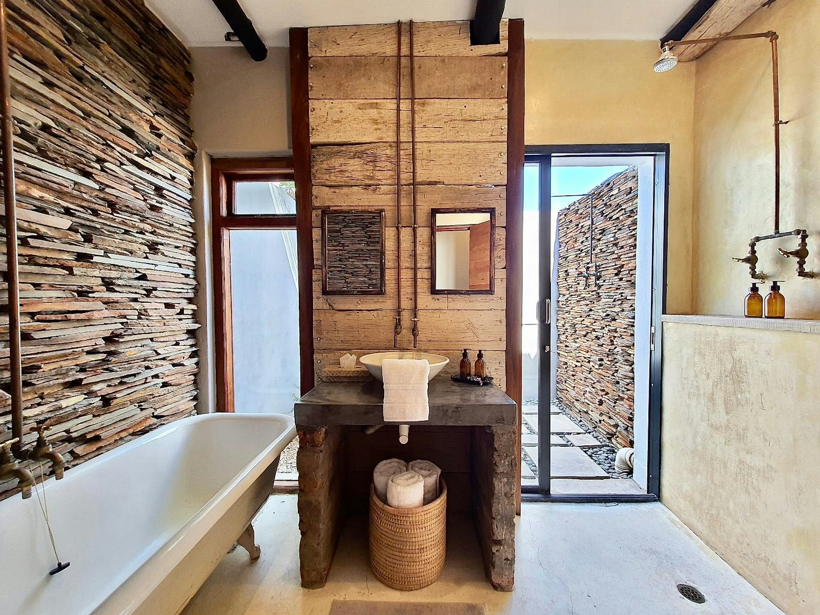 The property consists of 2 separate self-catering cottages, each accommodating either 4 or 6 guests. Both cottages feature comfortable beds and bathrooms equipped with either a bath or shower, as well as outdoor showers.
