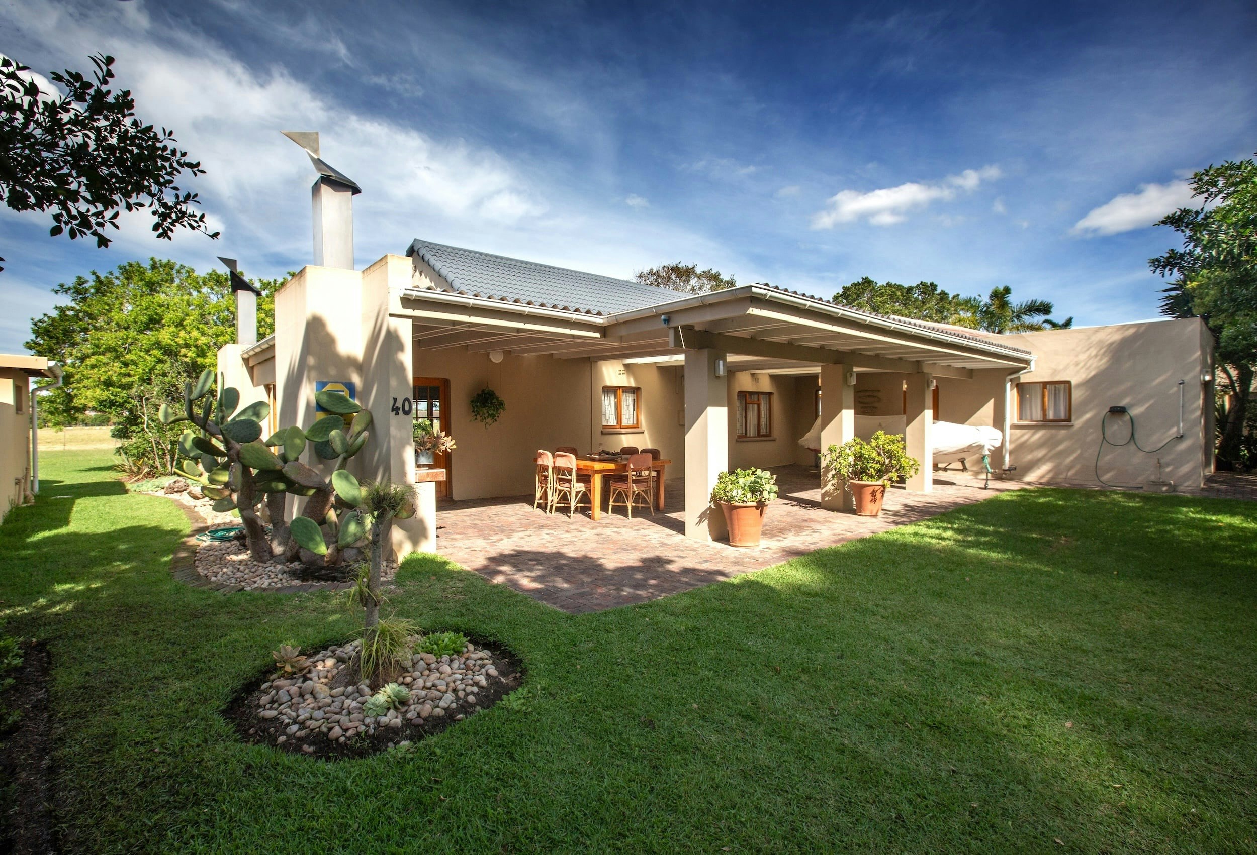 Chalet 40 is a fully-equipped house set in Silver Ranch amid 17 hectares of privately owned secure estate constructed around a fenced game encampment and just 400 m from a sandy beach.