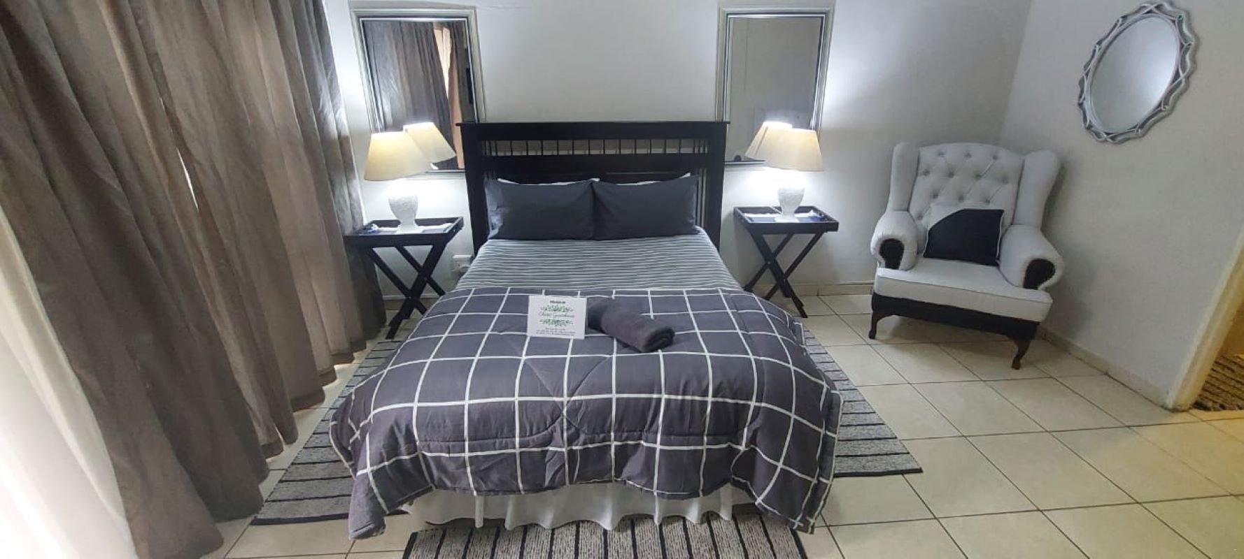 Accommodation is offered in 9 comfortable en-suite rooms, each room with private veranda entrance. Each room features a TV, bar fridge, microwave, air-conditioning, tea- and coffee-making facilities.