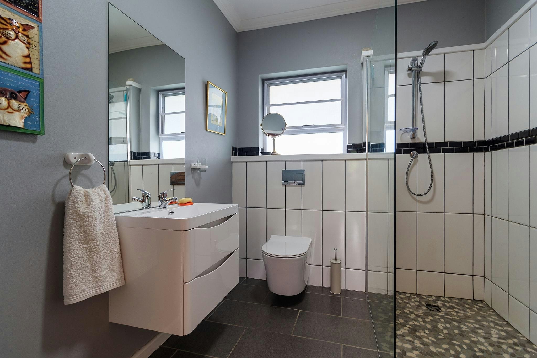 Die oopplan-leefarea het 'n kombuis wat met 'n gasstoof, elektriese oond, mikrogolfoond, yskas-vrieskas, eetgerei, breekware en 'n skottelgoedwasser toegerus is. 'n Wasmasjien is ook beskikbaar. Daar is 'n etenstafel met 6 stoele en 'n sitarea met gemaklike sitplek en 'n TV met DStv. Komplimentêre, onbeperkte WiFi is beskikbaar.
