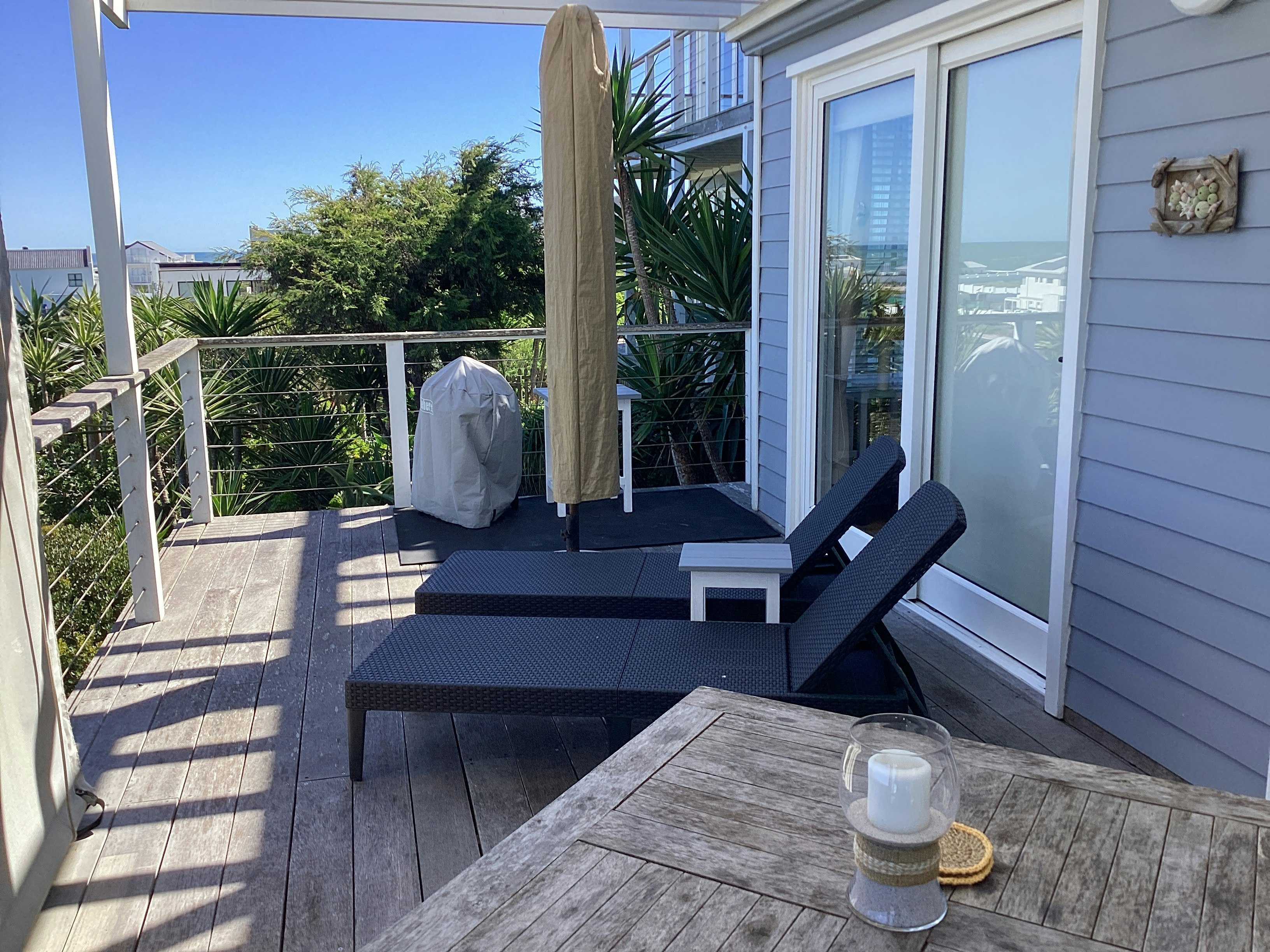 Its location close to the beach makes the apartment ideal to enjoy beachcombing, and whale and dolphin watching. Bring along your bicycle or go for a long walk along Yzerfontein's streets, on the beach or even on the boardwalk along the beachfront. For the very energetic, there are hiking trails to explore and all kinds of watersport to be enjoyed. Watch an abundance of birds frolicking in the garden pond while you have that first cup of coffee on the deck in the morning. If you are here to relax and soak up some sun, the sun loungers on the deck invite you to do just that, while Dassen Island and Table Mountain beckon in the distance and the waves break on the beach and nearby rocks. A late afternoon braai enjoyed with a glass of wine accompanied by a stunning sunset slowly ends an absolutely perfect day.