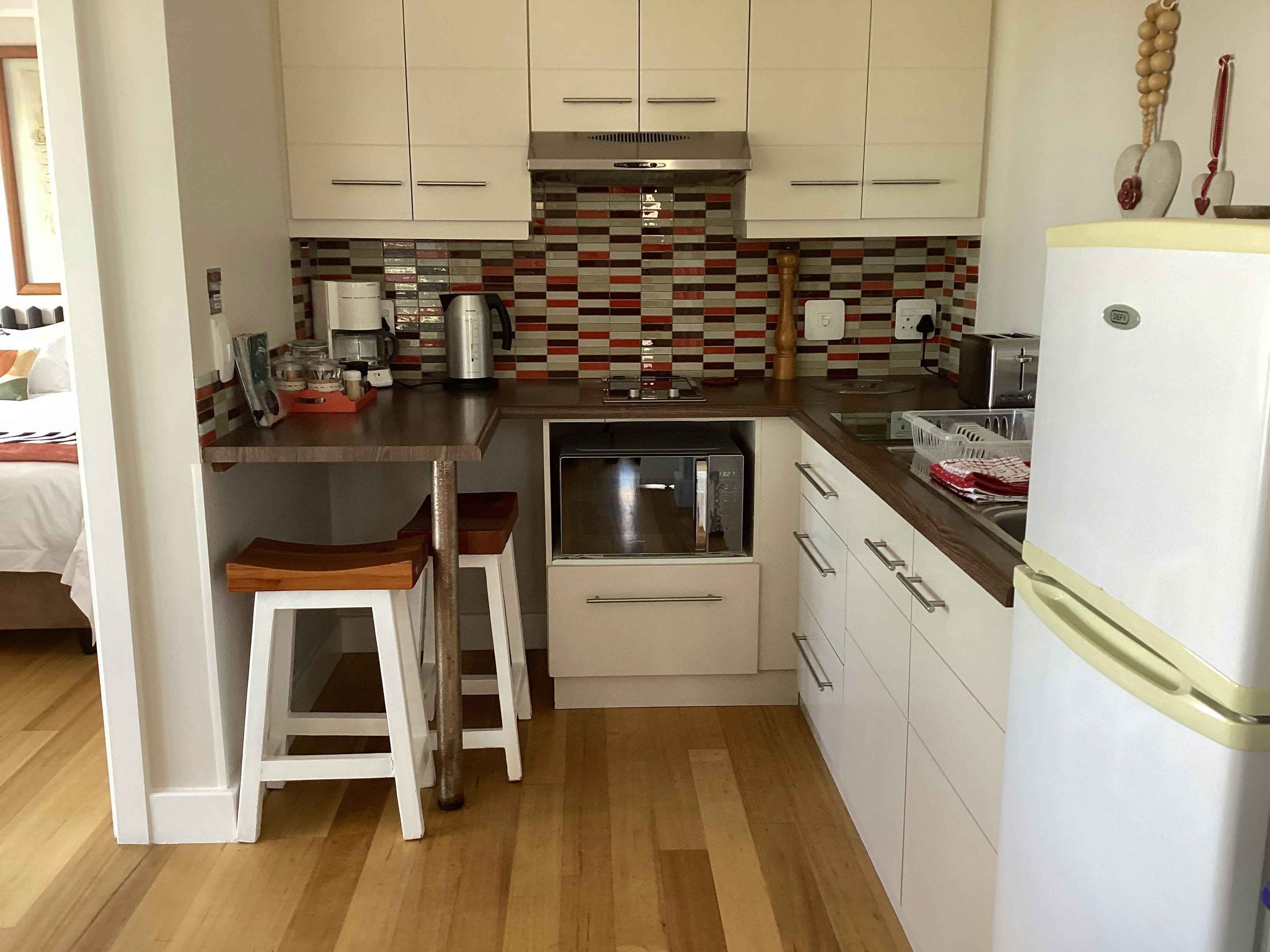 The apartment features a lounge, separate bedroom with en-suite shower, all with beautiful sea views. The kitchen is fully equipped with everything that is required for that lazy weekend getaway or relaxing long holiday. A flat screen TV with full DStv, games and a range of English and German books entertain on cloudy days. The apartment attached to our main house has its own private entrance with secure on-site parking.