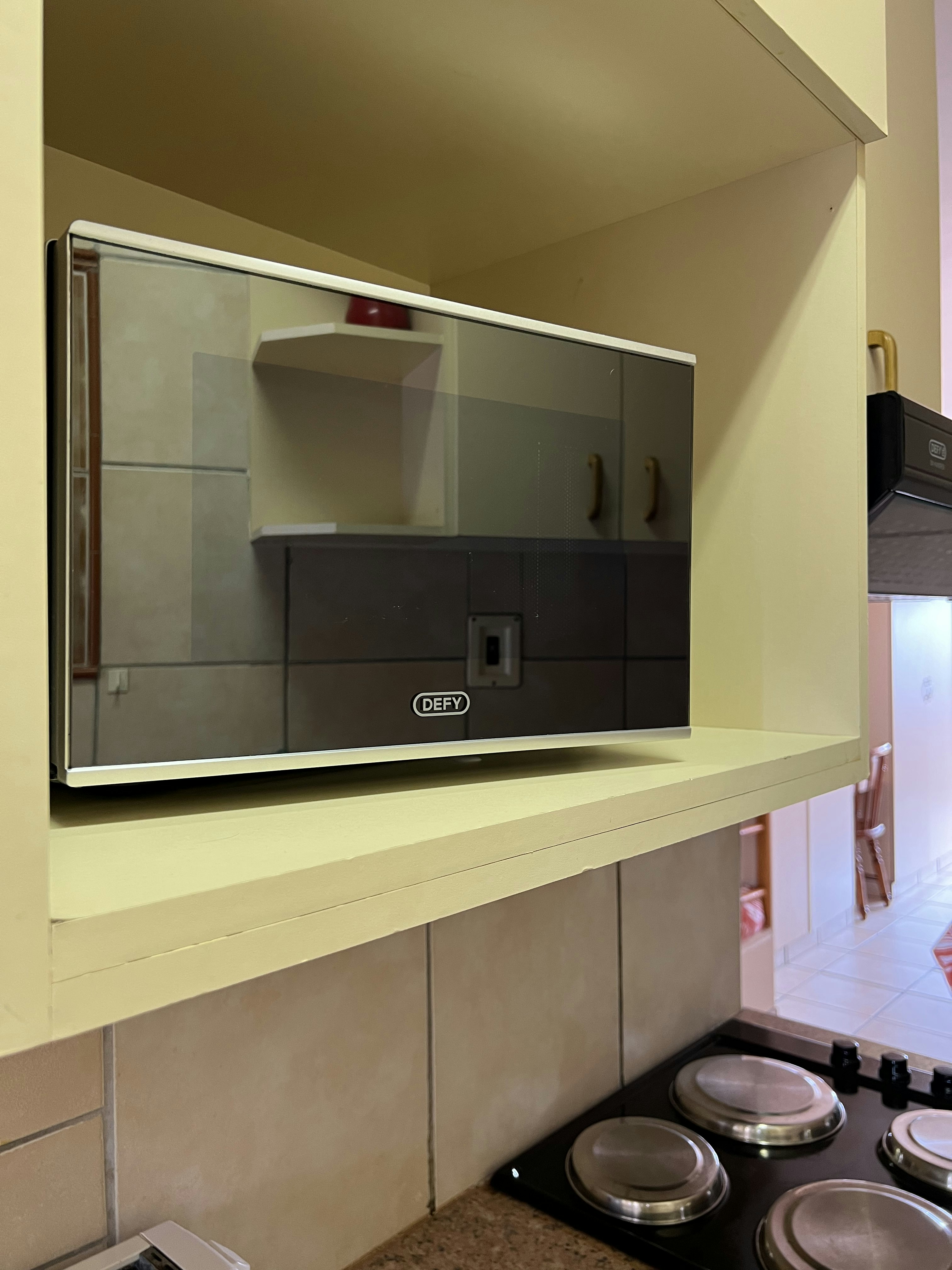 Daar is 'n sitkamerstel in die sitarea. Die kombuisie is goed toegerus vir selfsorg en sluit 'n stoof, wasmasjien, tuimeldroër, mikrogolfoond, yskas, broodrooster, ketel, toebroodjierooster en 'n elektriese braaipan in. Daar is ook 'n toonbank met 4 kroegstoele.