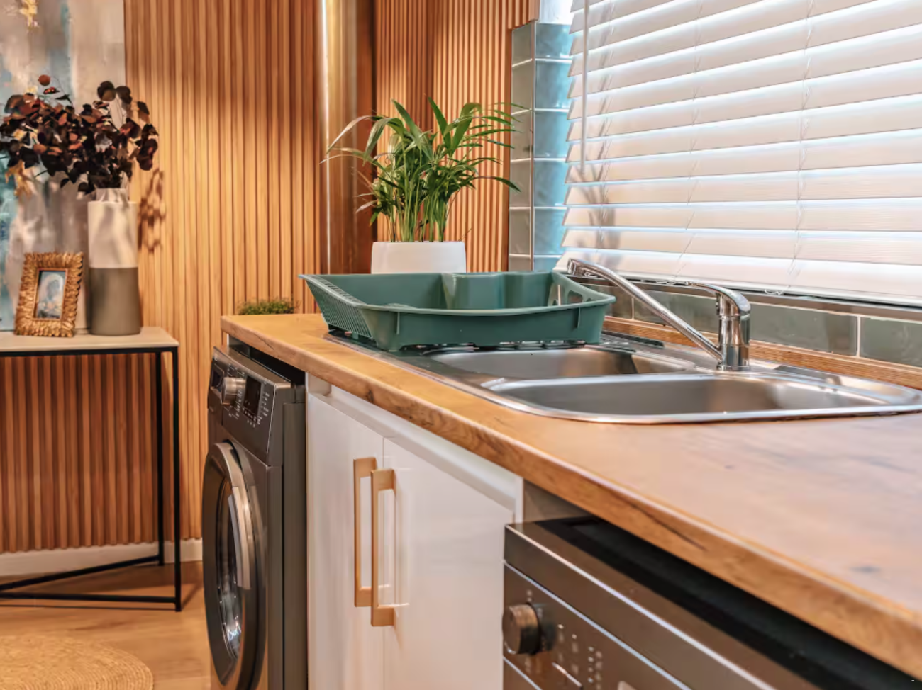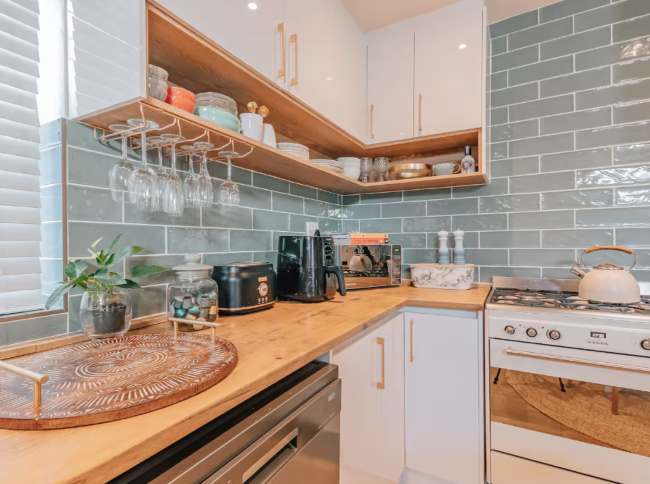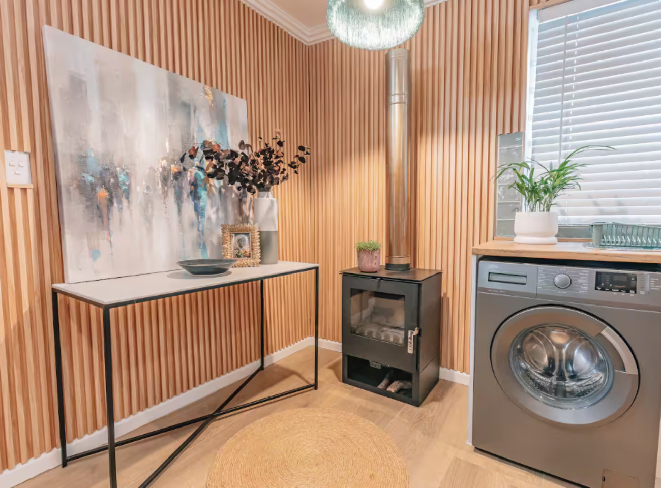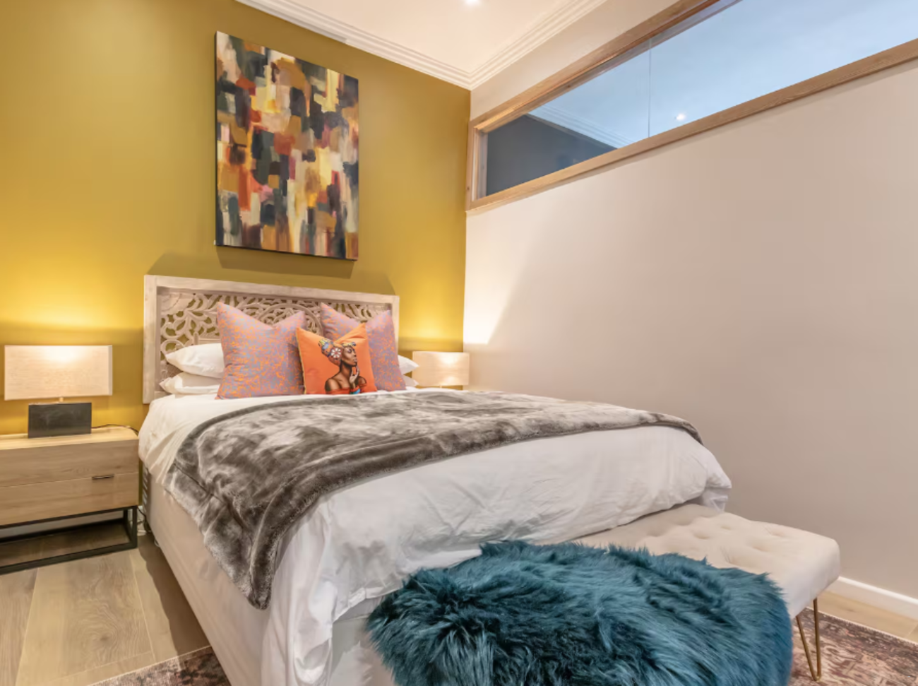 The living area features a fully equipped kitchen, including a stove, oven, microwave, air fryer, fridge-freezer, cutlery, and crockery. For added convenience, a dishwasher and washing machine are also available. A 4-seater dining table in the kitchen is perfect for meals. The lounge area is furnished with comfortable seating and a smart TV with YouTube and Netflix, along with free Wi-Fi. The property is fitted with an inverter to ensure uninterrupted power during load shedding.