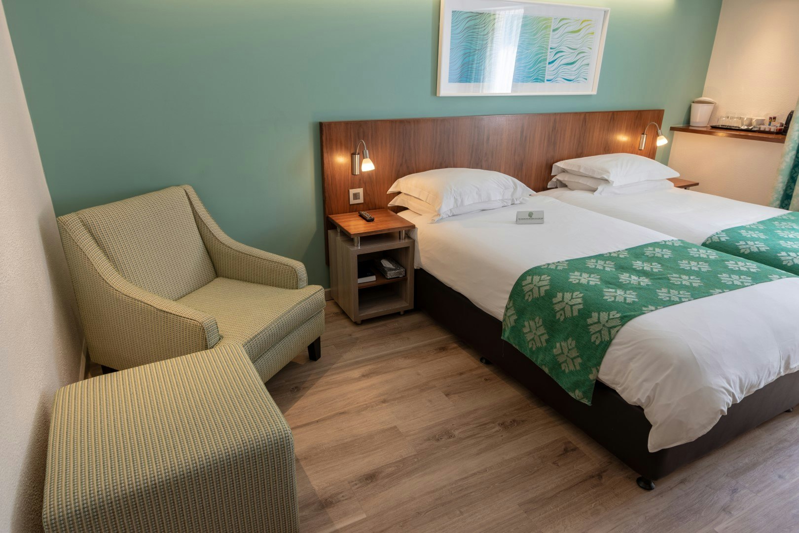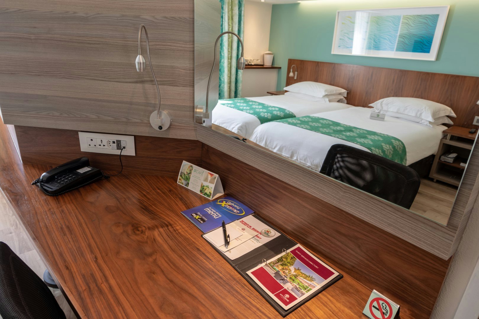 The 160-room hotel offers several spacious air-conditioned rooms which contain either a queen-size or twin beds, along with an en-suite bathroom fitted with a shower, or a shower and a separate bath. Interleading family rooms are also available. In-room amenities include a TV with selected DStv channels and radio stations, tea- and coffee-making facilities, an electronic safe large enough to accommodate a laptop, and a desk with lighting and plugs for easy connectivity. Complimentary Wi-Fi access is also provided. Selected rooms have been designed for the physically disabled.