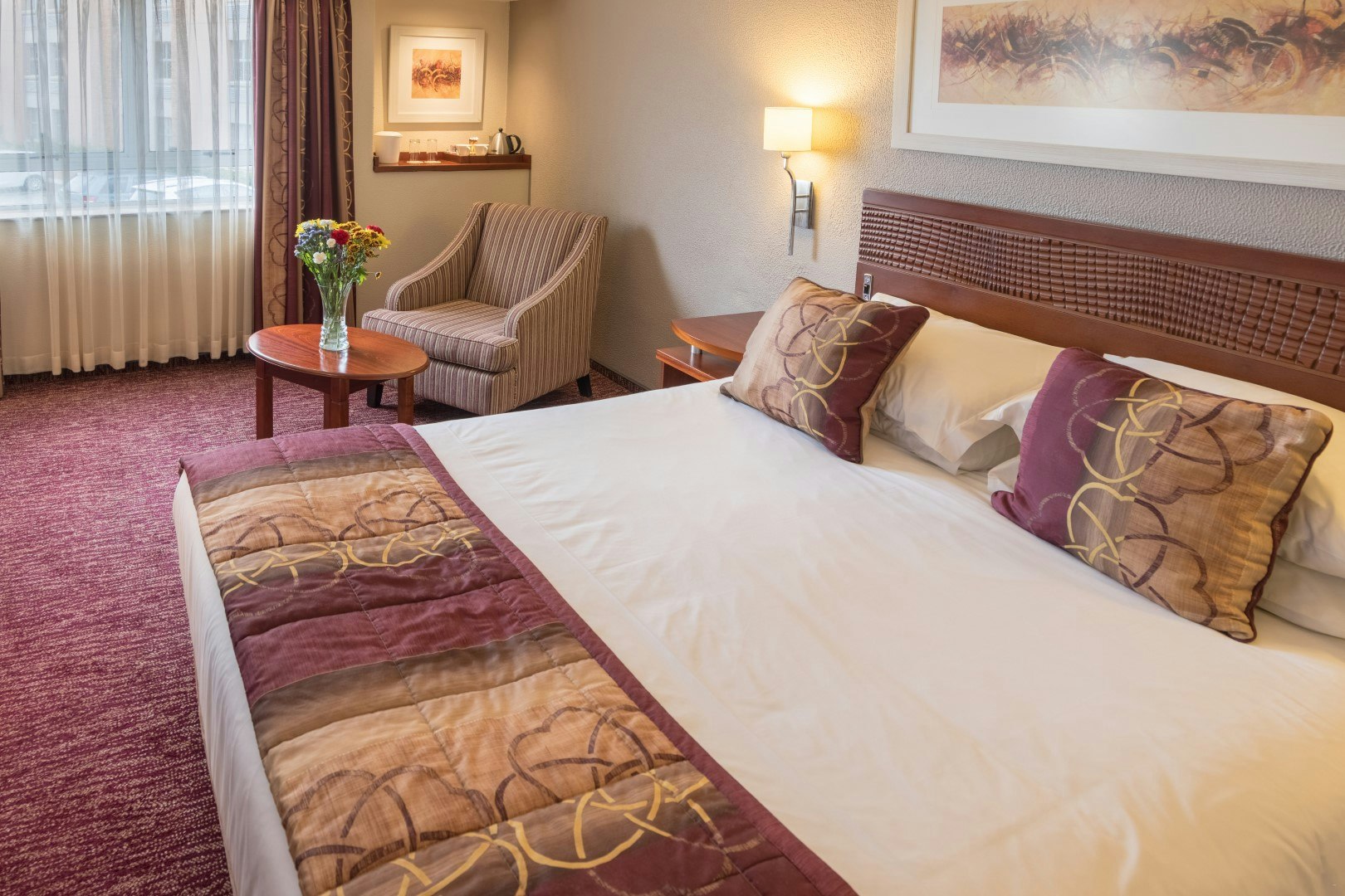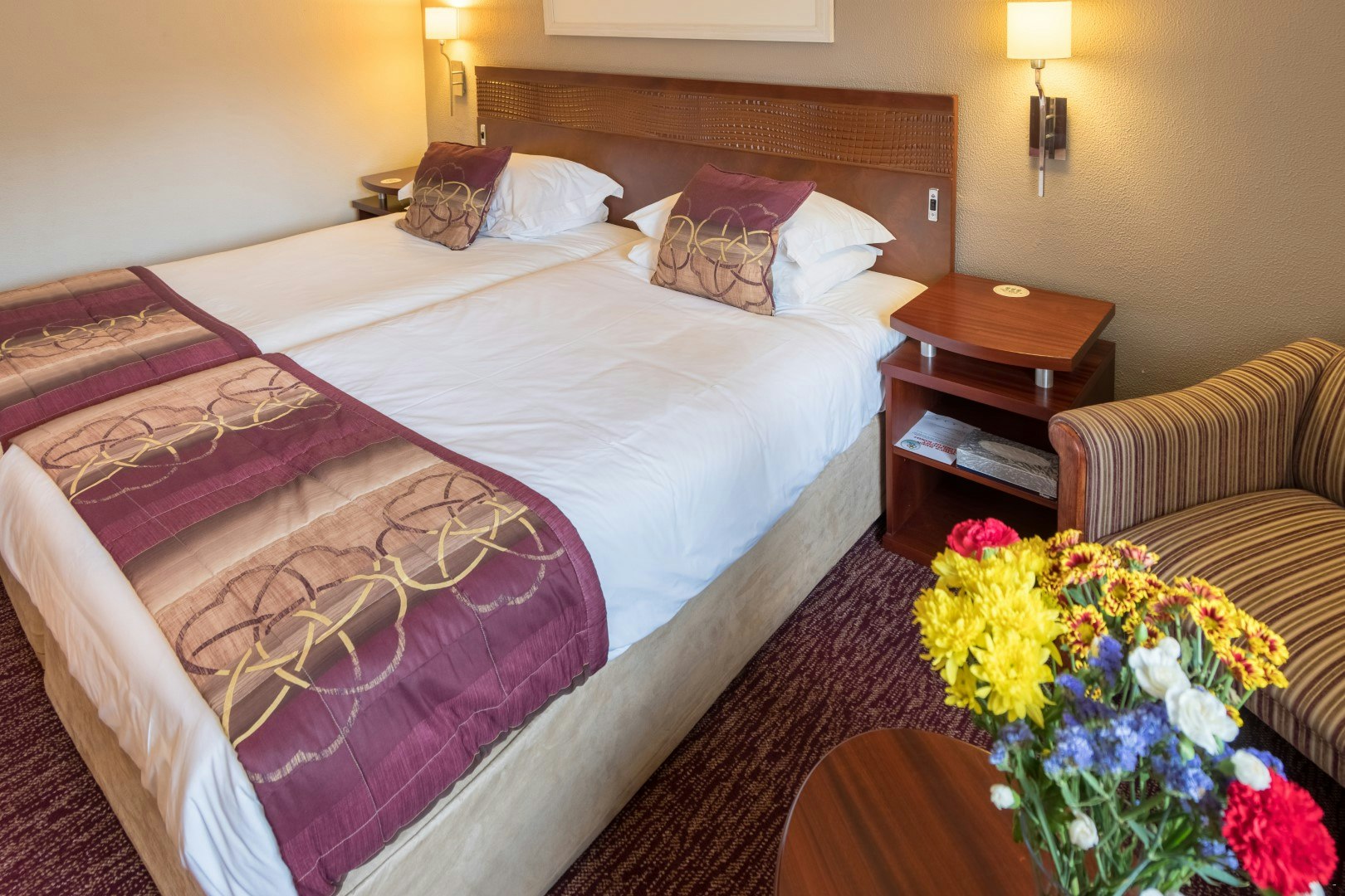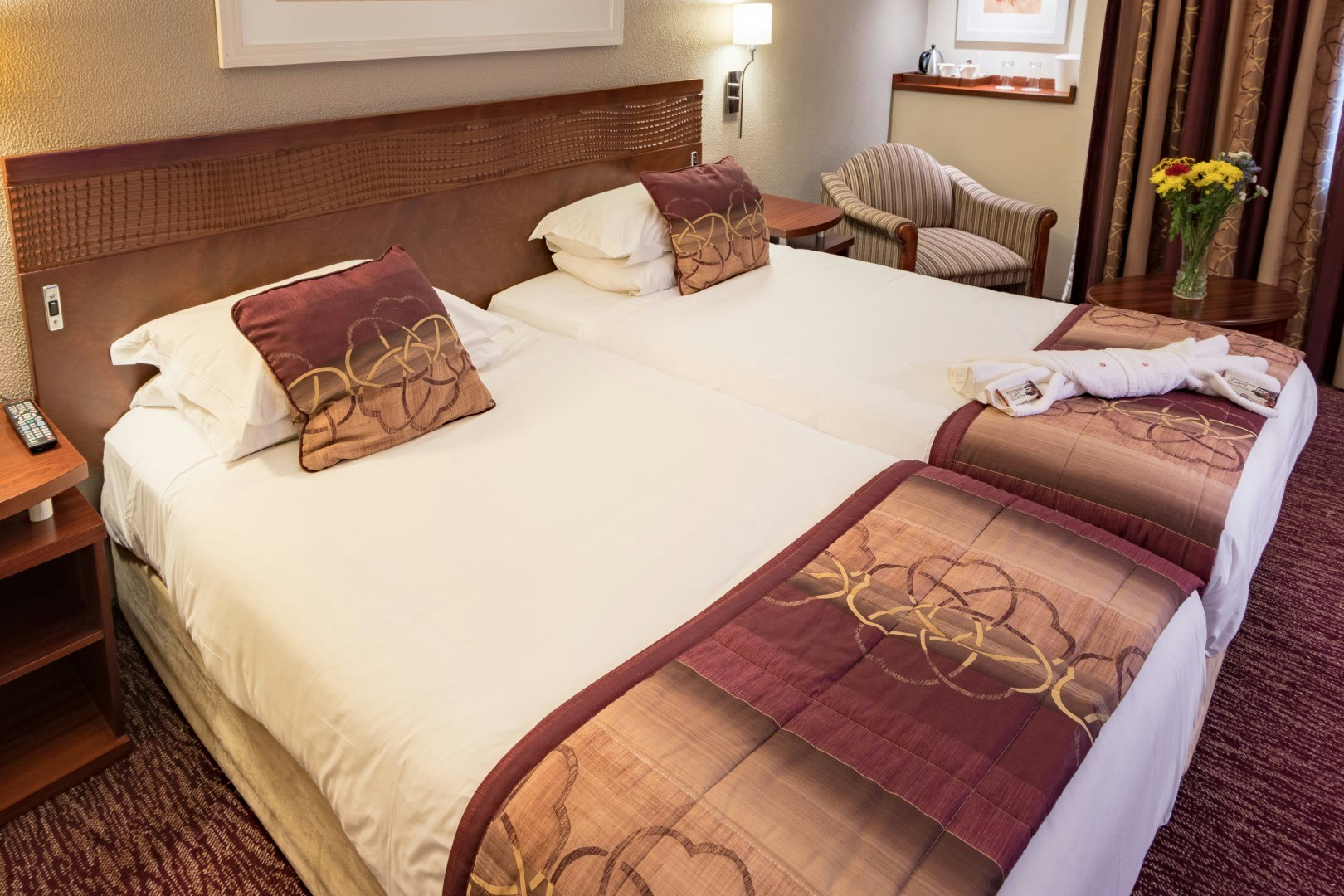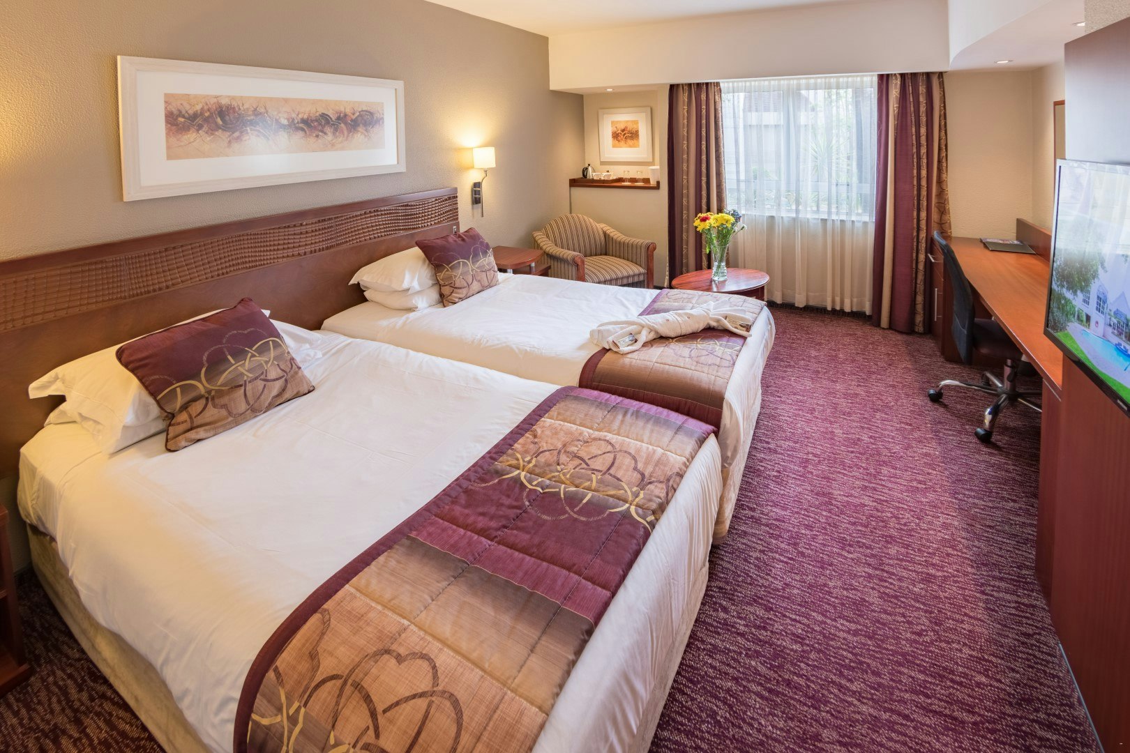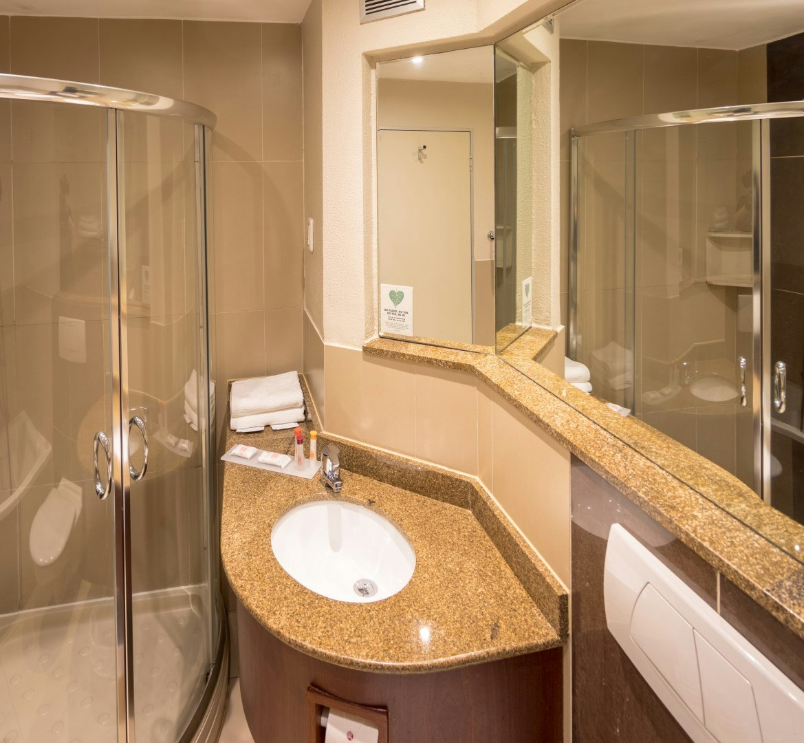The 147-room hotel offers a number of spacious air-conditioned rooms with either a queen-size or twin beds, along with an en-suite bathroom fitted with a bath and separate shower. Selected rooms have a shower only. Rooms with sleeper-sofa beds are available on request. In-room amenities include a TV with selected DStv channels and radio stations, tea- and coffee-making facilities, an electronic safe large enough to accommodate a laptop, and a desk with lighting and plugs for easy connectivity. Free Wi-Fi access is also provided. Selected rooms have been designed for the physically disabled.