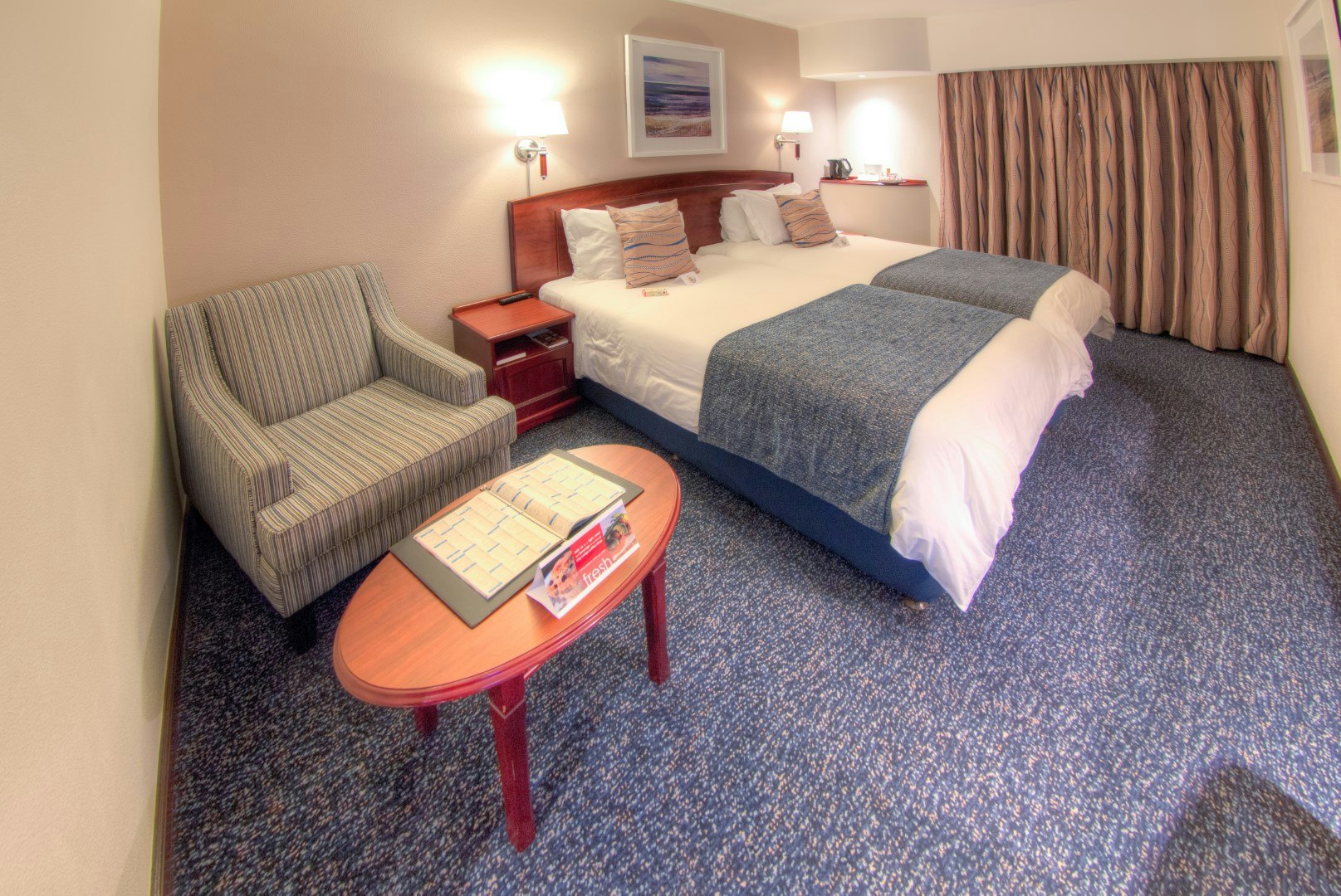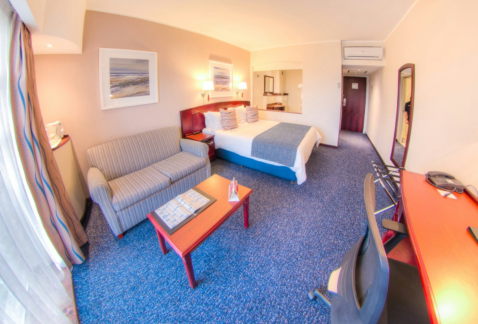 The 207-room hotel offers a number of spacious air-conditioned rooms with either a queen-size or twin beds, along with an en-suite bathroom fitted with a bath and separate shower. Rooms with sleeper-sofa beds are available on request. In-room amenities include a TV with selected DStv channels and radio stations, tea- and coffee-making facilities, an electronic safe large enough to accommodate a laptop, and a desk with lighting and plugs for easy connectivity. Free Wi-Fi access is also provided. Selected rooms have been designed for the physically disabled.