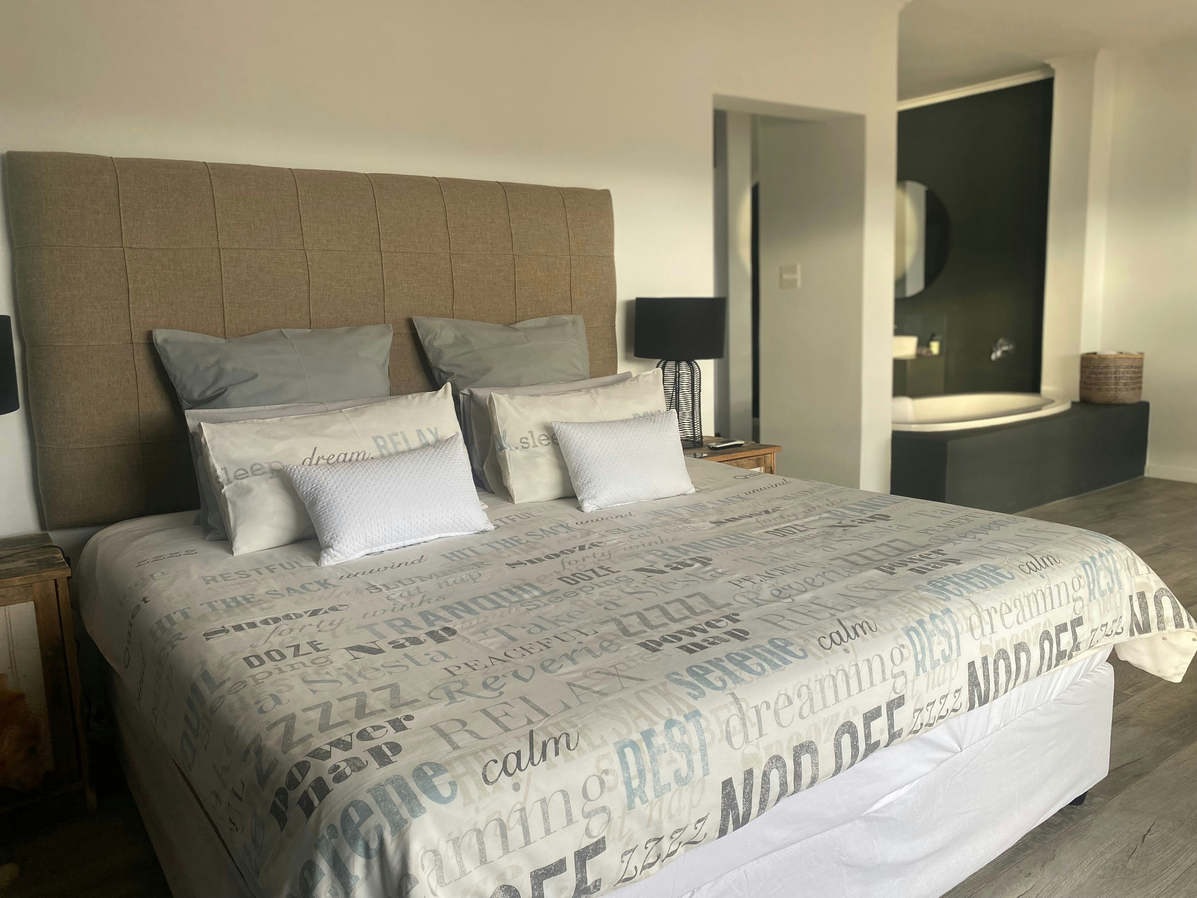 The air-conditioned open-plan living area features a kitchen fully equipped with a stove, oven, microwave, fridge-freezer, dishwasher, cutlery and crockery as well as a breakfast bar with stools. Leading from the kitchen is a cosy lounge with comfy seating and a TV with DStv. For additional entertainment, board games are also available. Adjacent to the lounge, there is a dining area with ample seating where guests can enjoy their meals together.