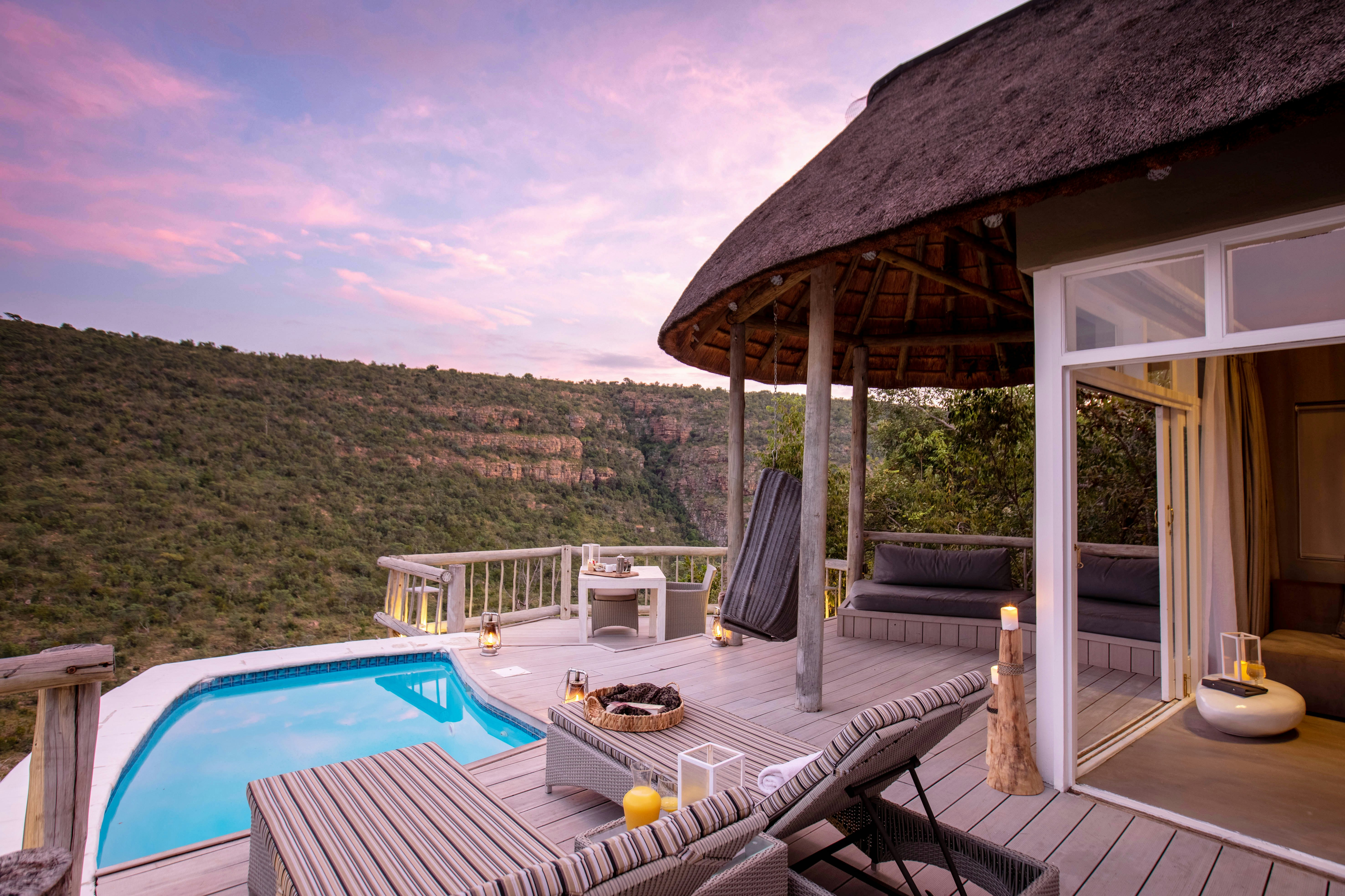 Accommodation at the lodge comprises 8 luxury suites. Each of the luxury guest suites is perched on the edge of a dramatic cliff in the Waterberg Mountains. From the private plunge pool decks, guests can enjoy views across the pristine landscapes of the Welgevonden Private Game Reserve, and down into the Sterkstroom Valley.