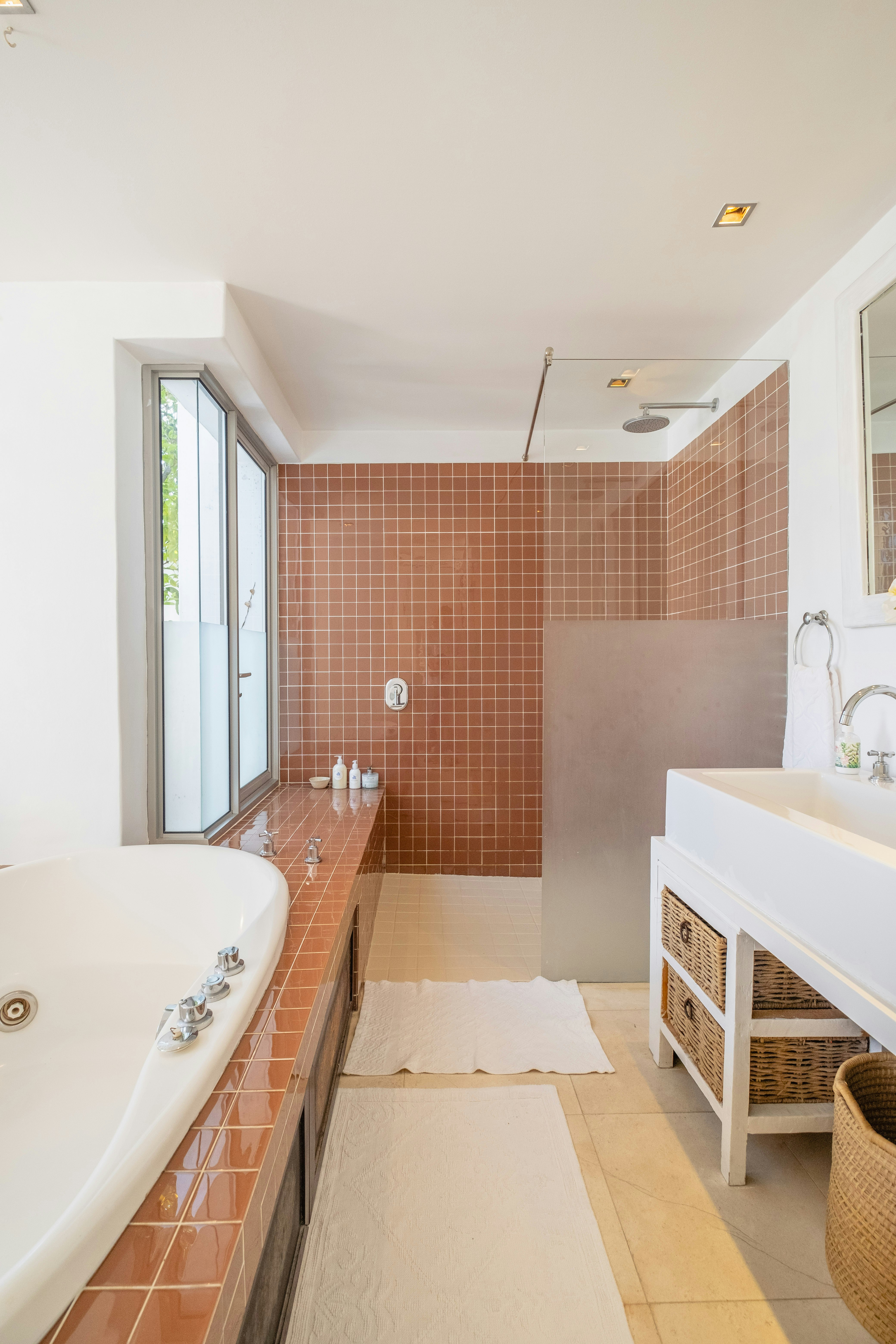 The spacious can accommodate 8 guests, comprising 4 bedrooms and 3 bathrooms. The main bedroom is a king-size bed and an en-suite bathroom with a shower. The second room is furnished with a king-size bed, while the third room is furnished with single beds. Additionally, the fourth room is furnished with a queen-size bed and an en-suite bathroom fitted with both a bath and shower. A shared bathroom equipped with a shower, toilet, and basin is also available.