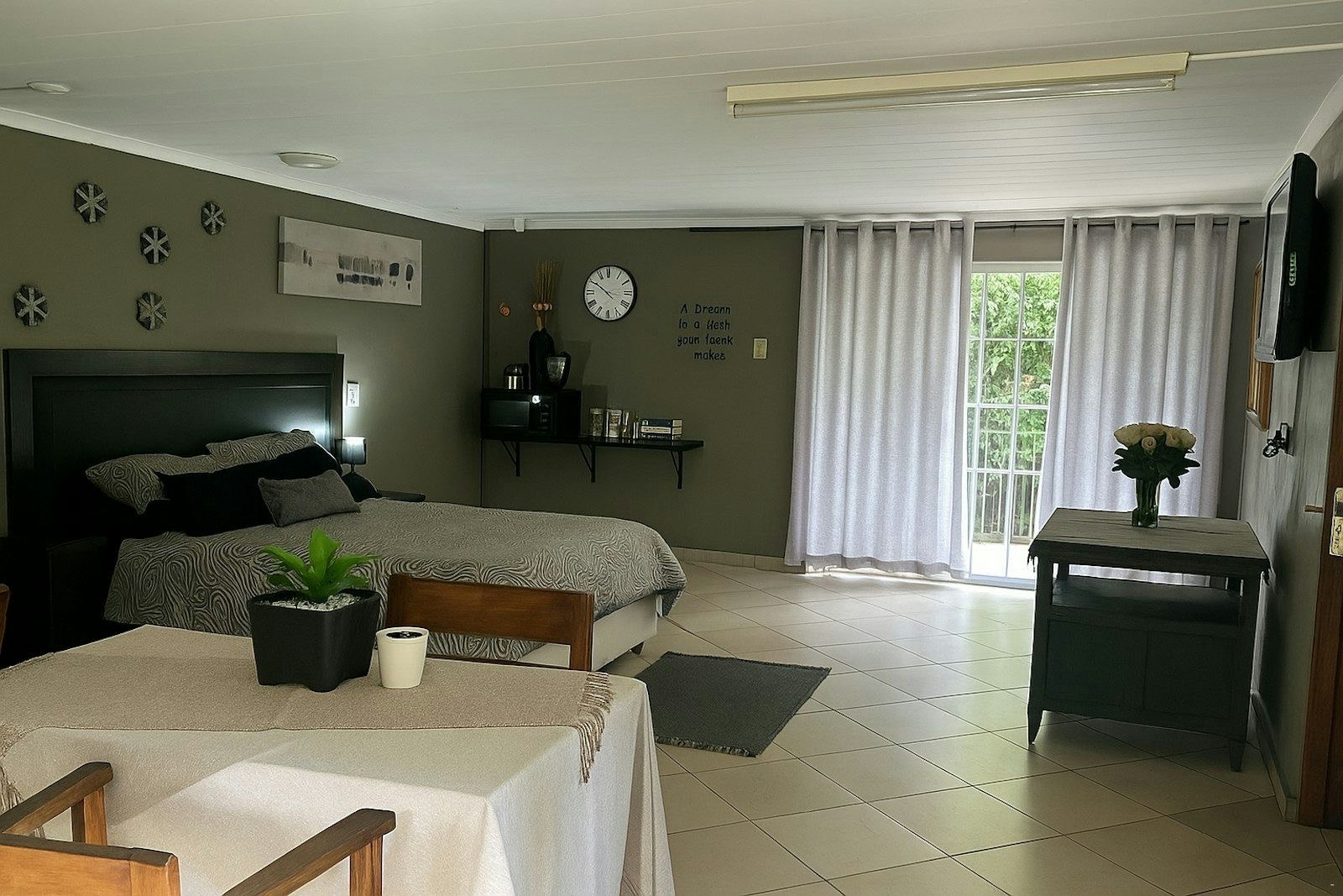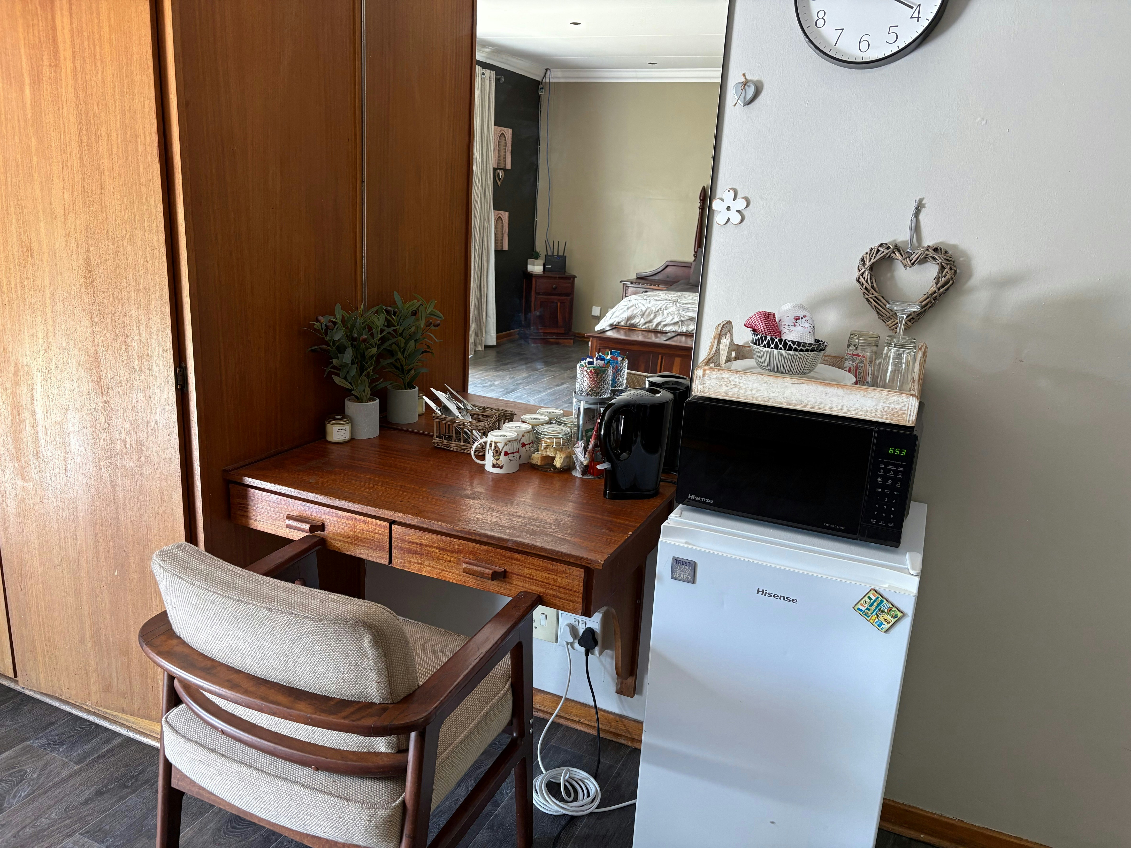 The room provides streaming services, a work desk, and access to a pool with a view. Additional amenities include a fridge, microwave, and electric kettle. Guests can relax in the garden or on the terrace, enjoying the garden and pool views. The terrace features a dining table and braai facilities.