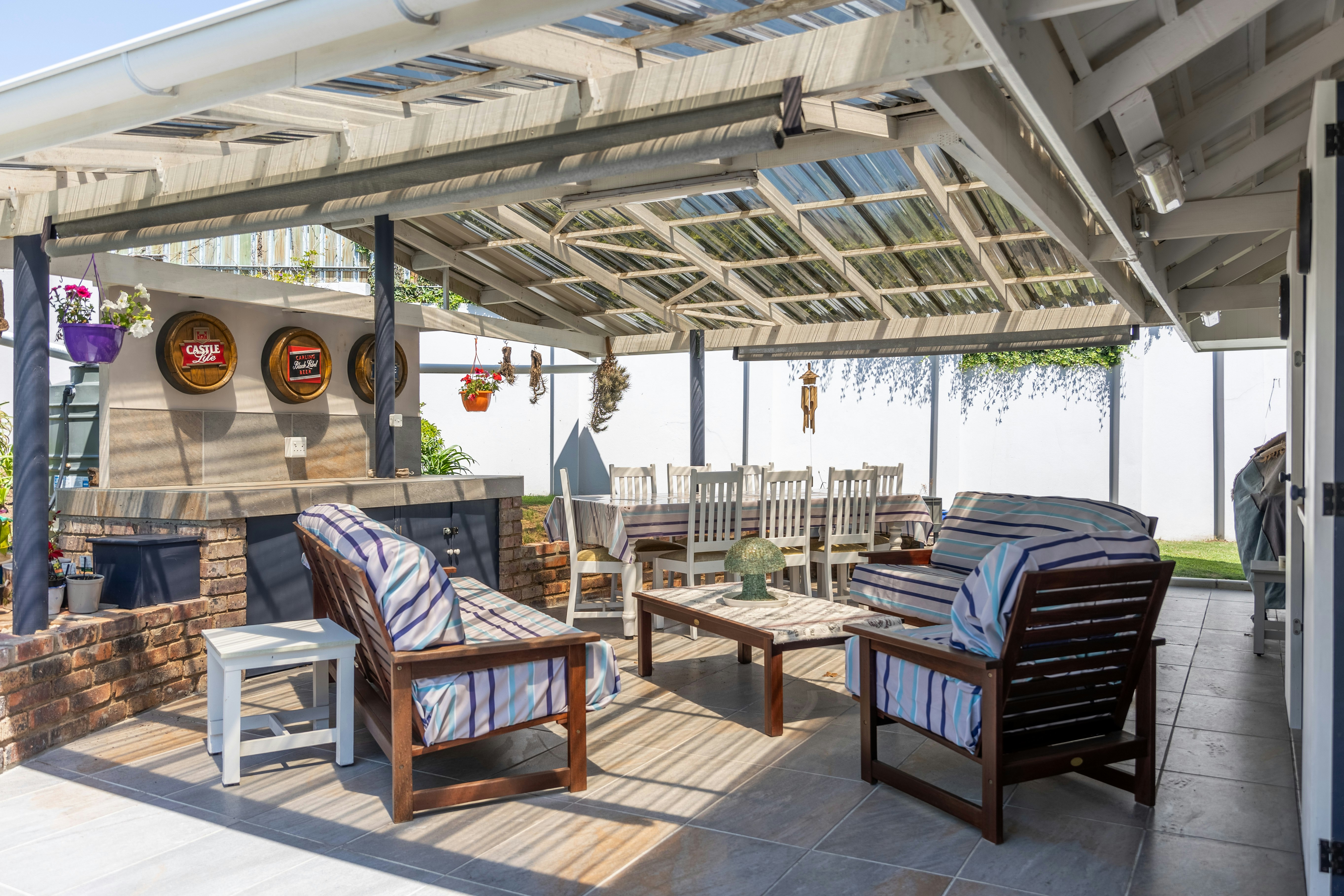 Die leefarea lei na die voorste deel van die huis wat 'n onderdakstoep en 'n etenstafel met sitplek vir 12 het. Daar is nog sitplek waar gaste kan sonbaai. Die sitarea en kombuis bied toegang tot nog 'n onderdakstoep agter die huis wat ook sitplek en 'n braai-area het.