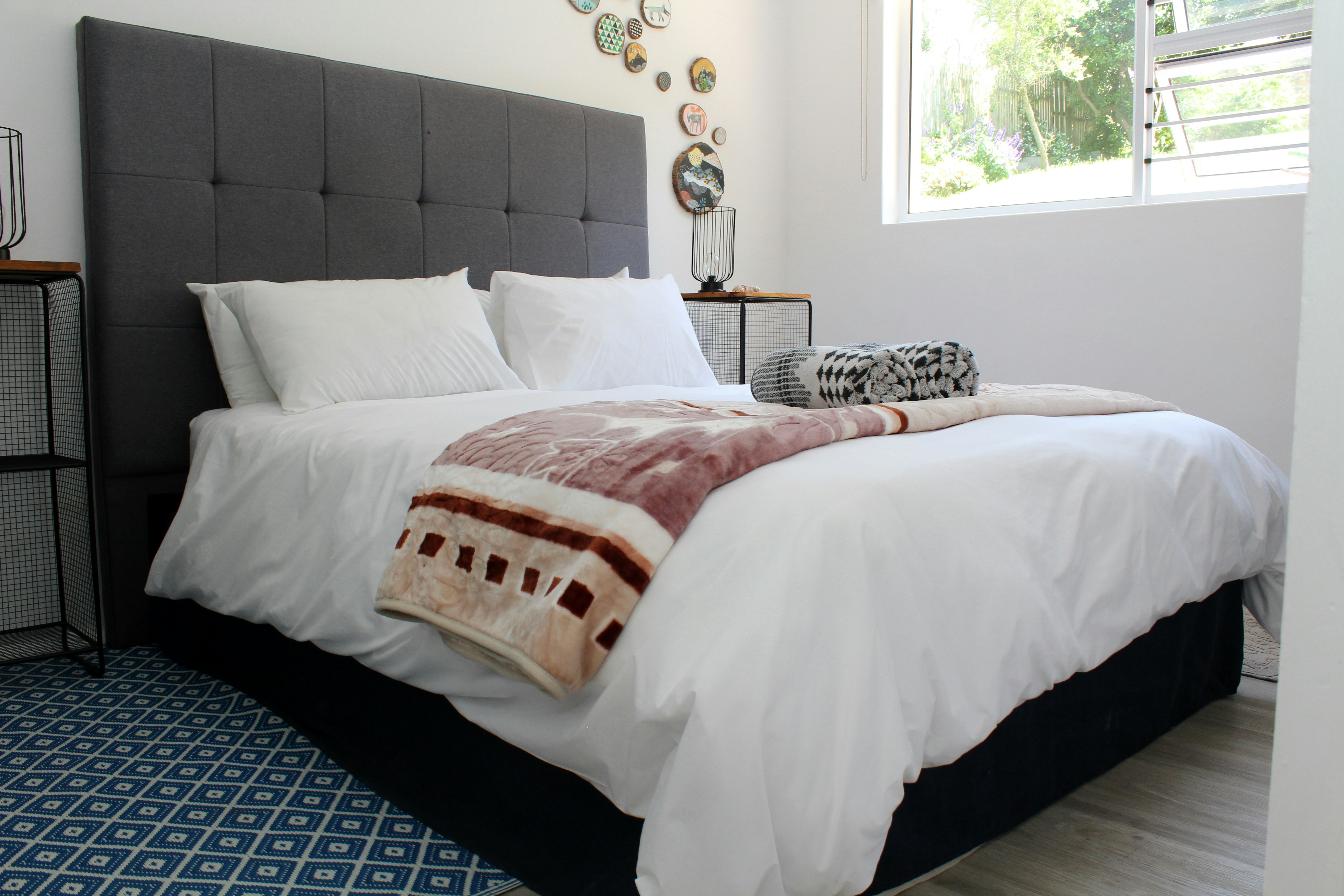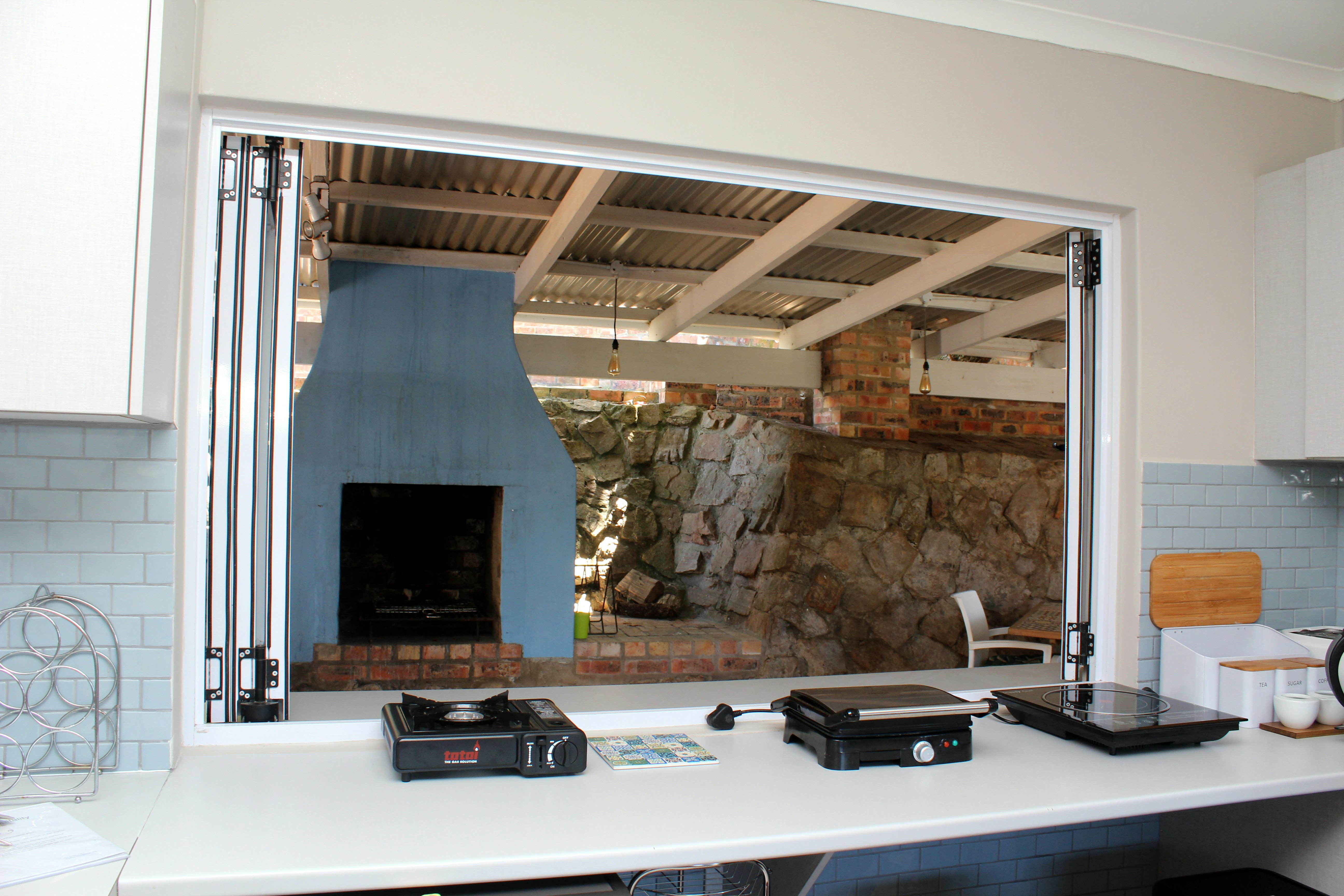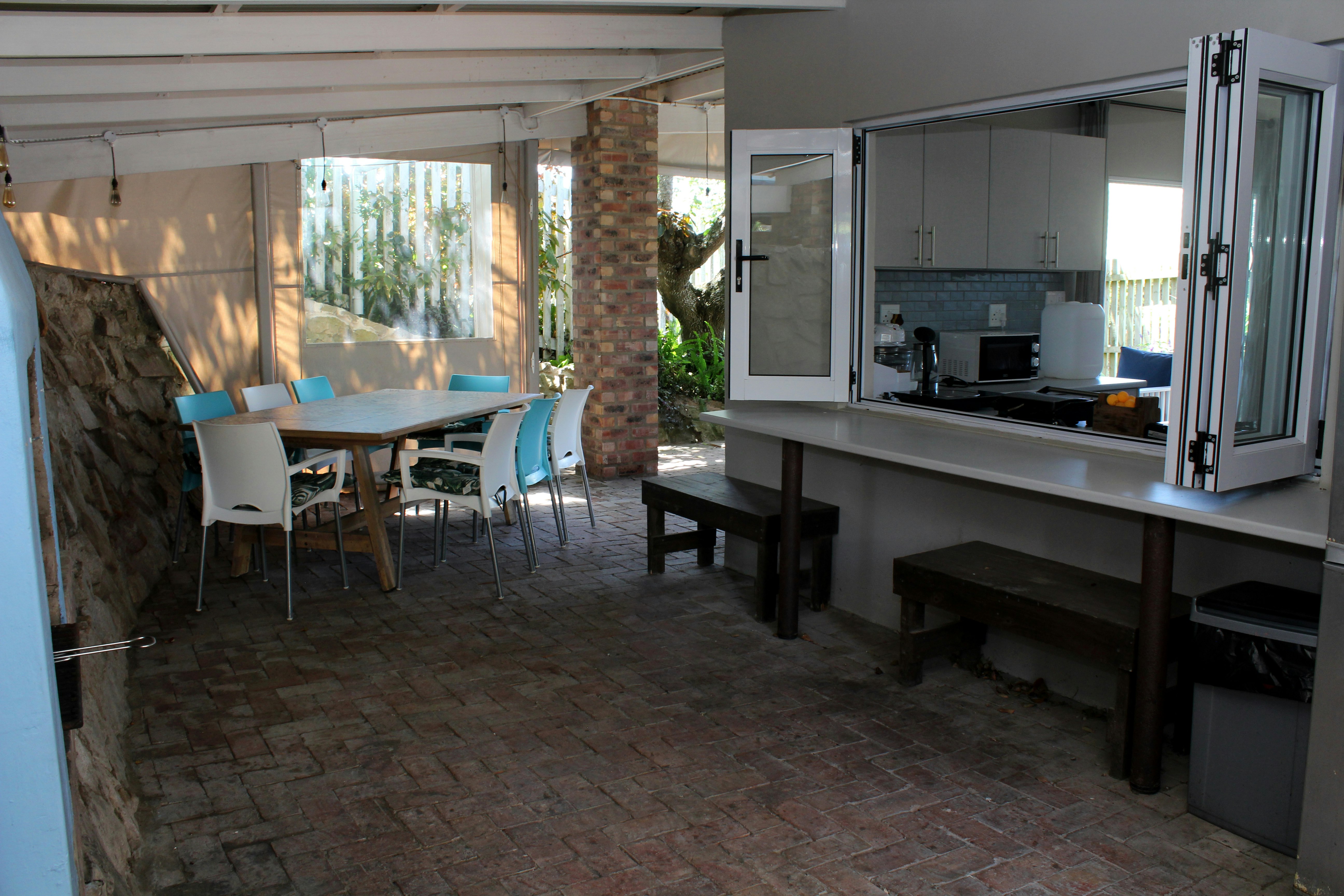 The living area opens onto a covered patio with outdoor seating and a built-in braai. Additionally, there's a fire pit in the garden for guests to enjoy. Secure on-site parking is provided, and guests will find themselves close to restaurants, shops, and schools.