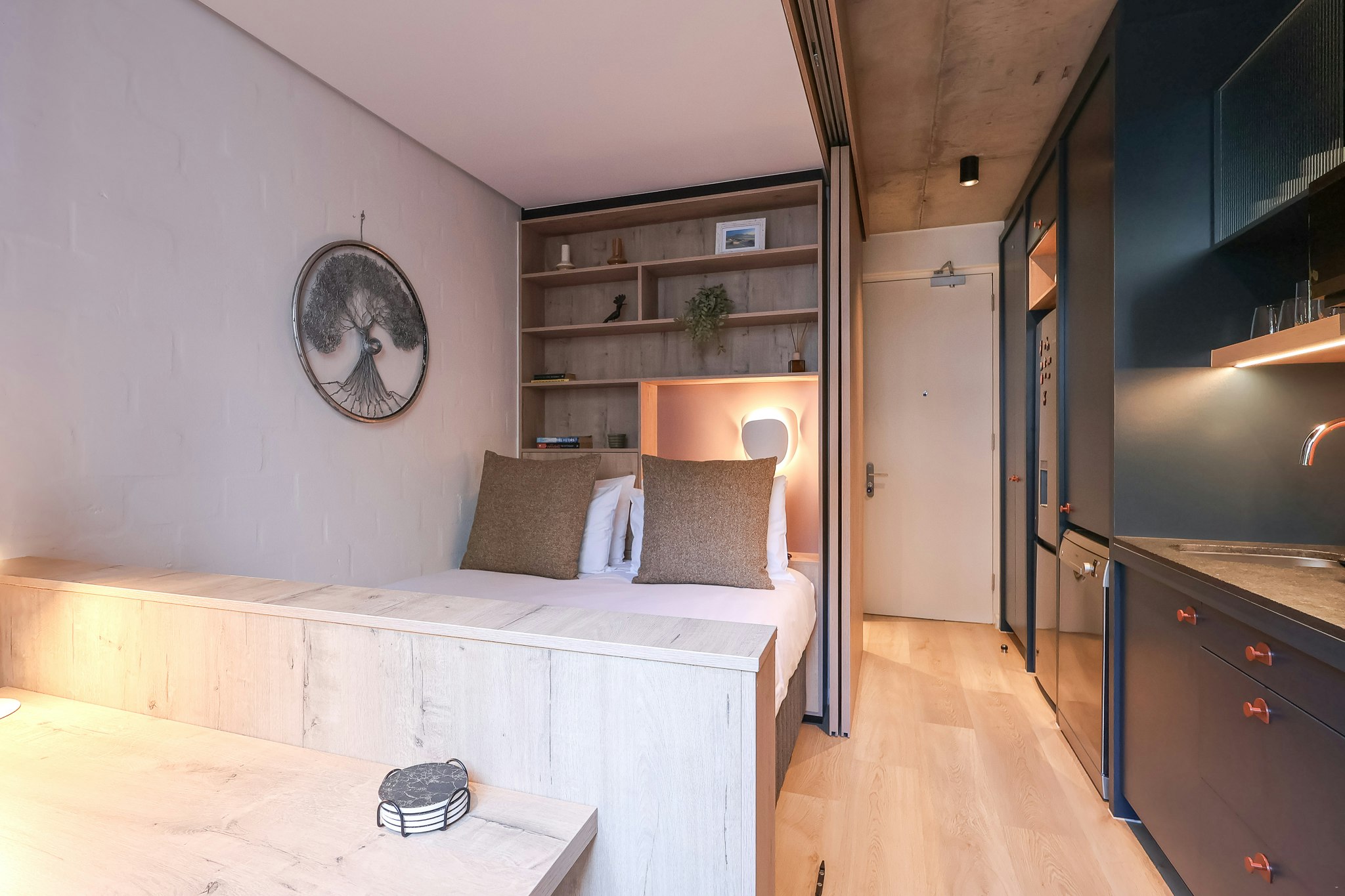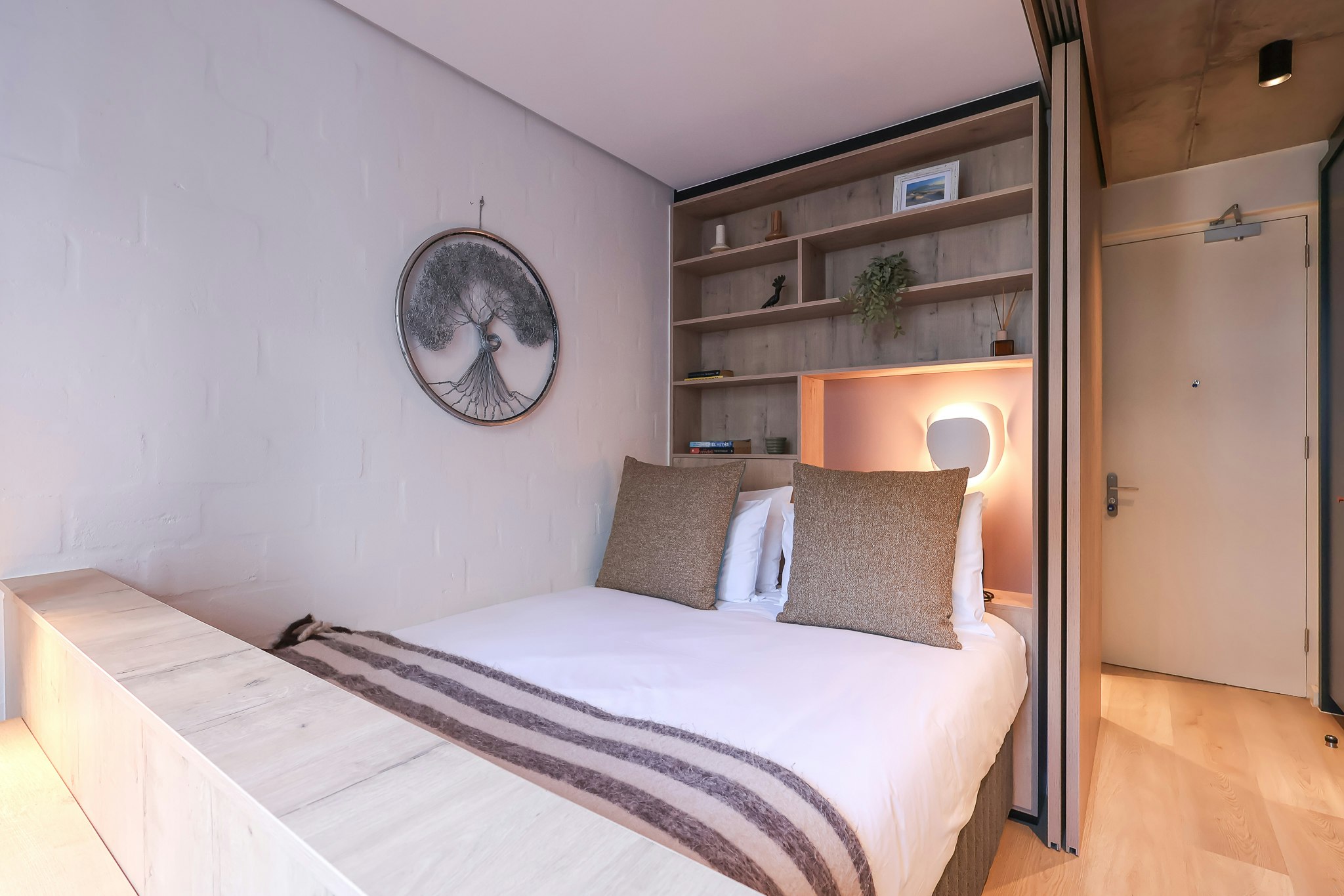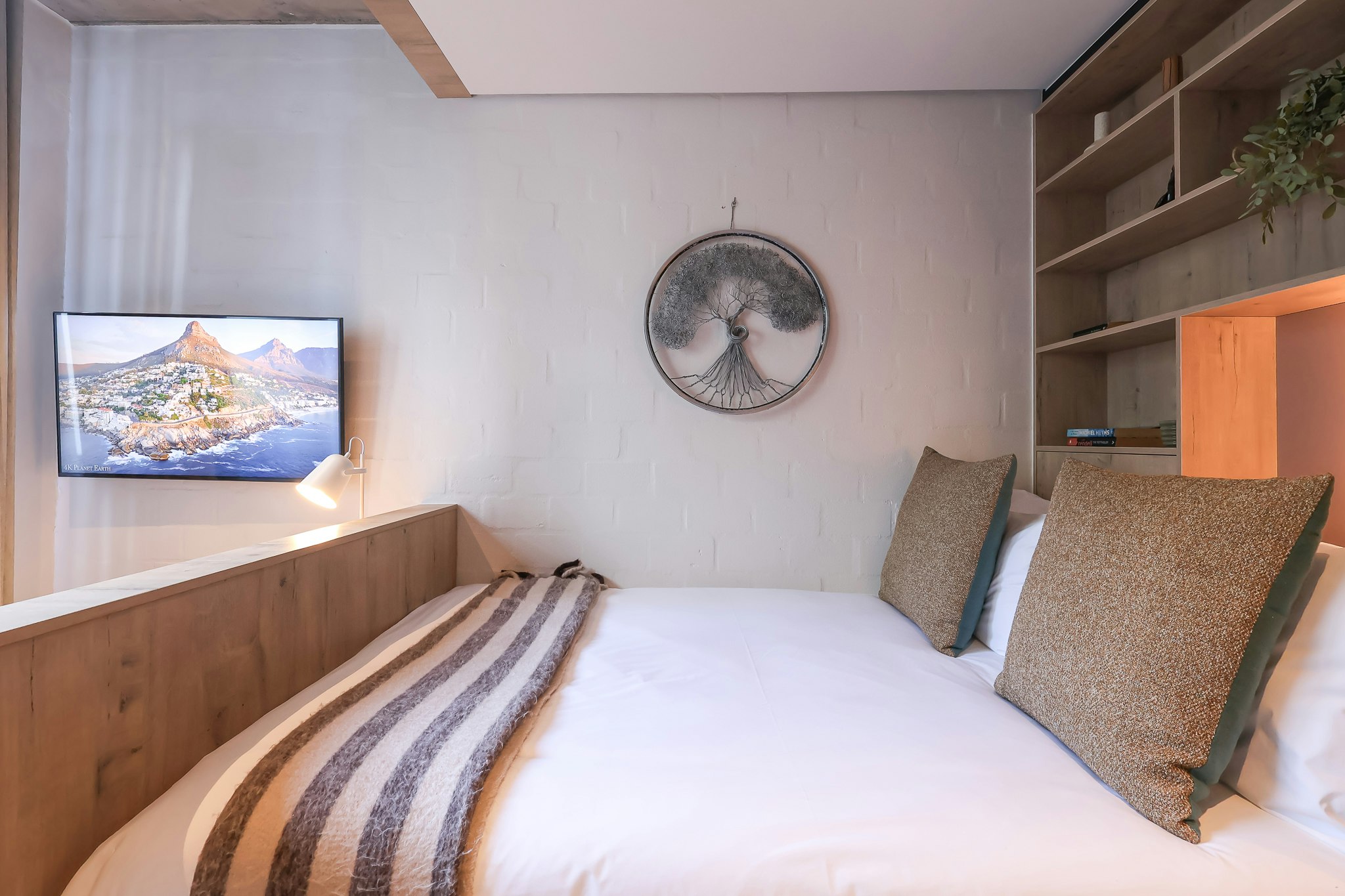 The building offers multiple spaces where guests can enjoy fresh air and stunning views, including a communal rooftop swimming pool and outdoor seating areas. There is also a concierge team, 24-hour security, meeting rooms and a communal laundry room. The apartment also provides easy access to central Cape Town, including the V&A Waterfront, Long Street, and public transport options.